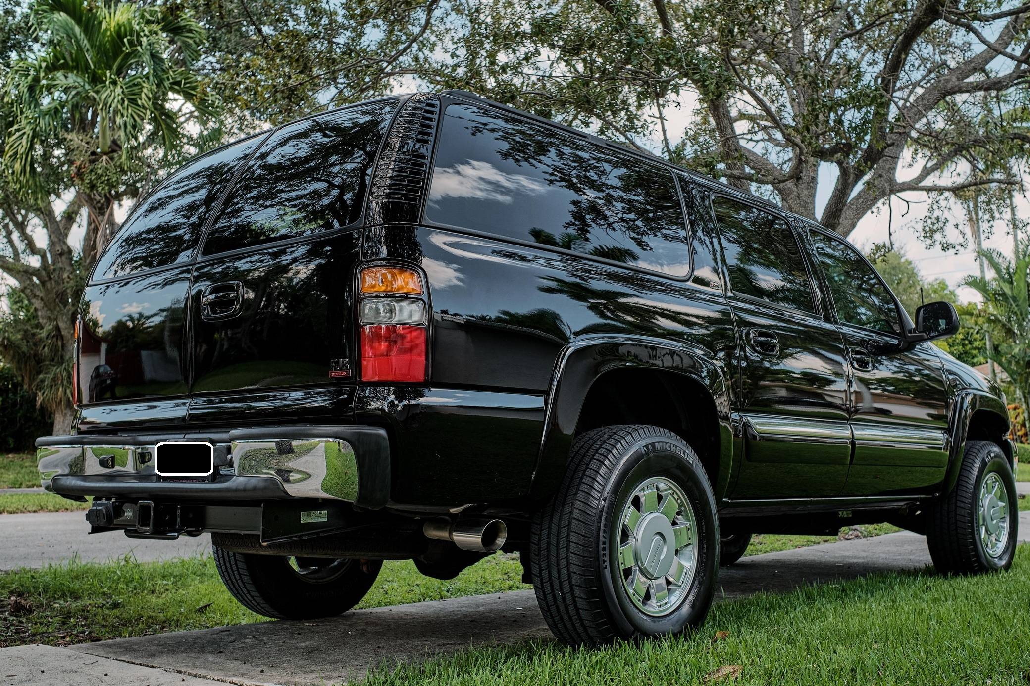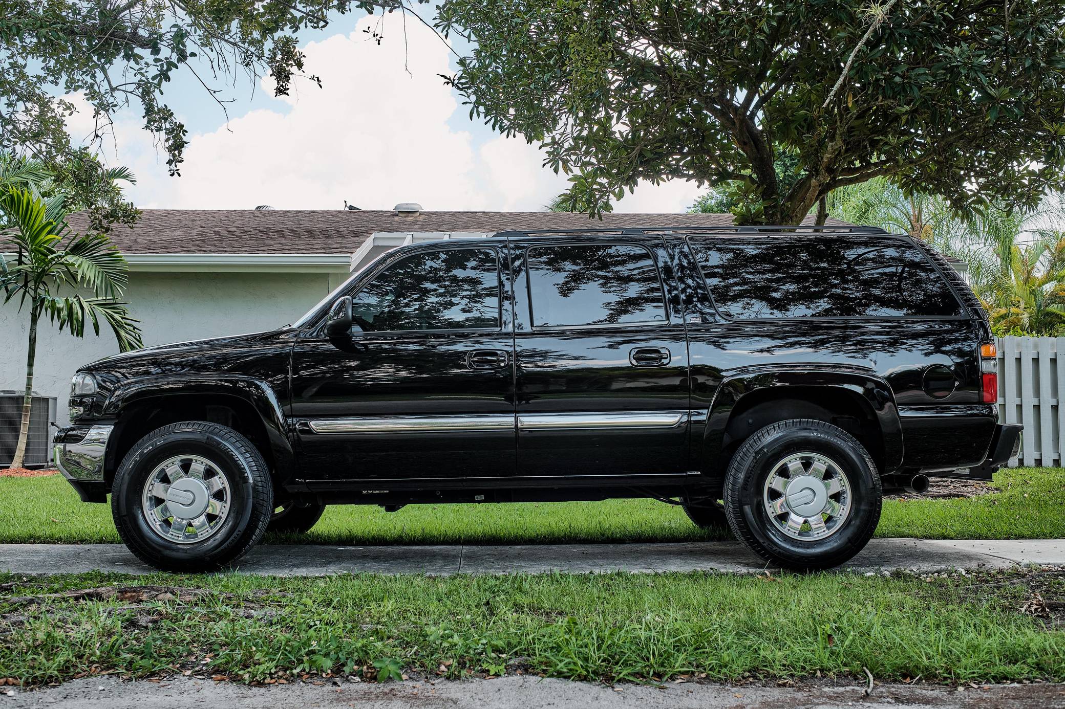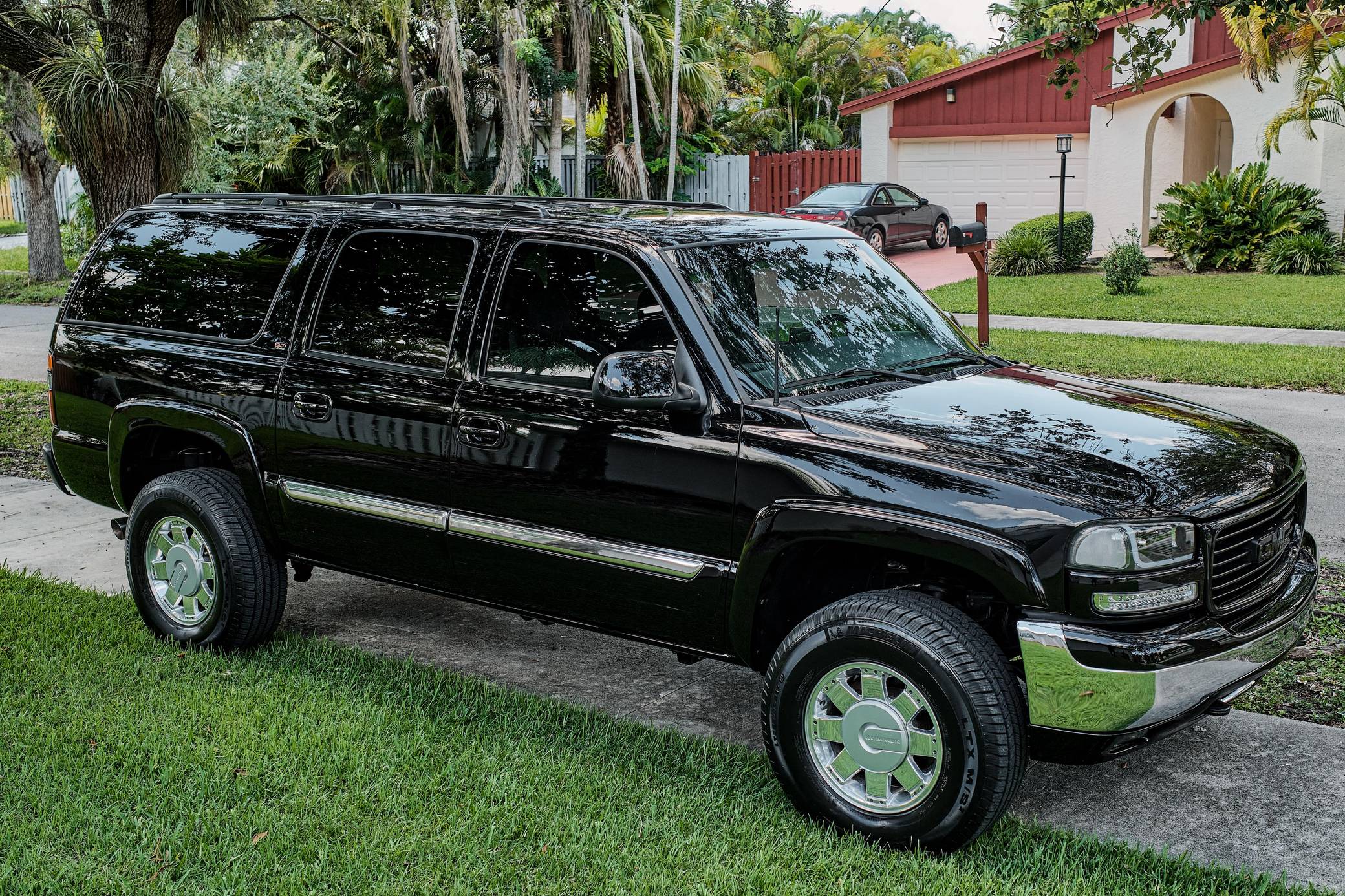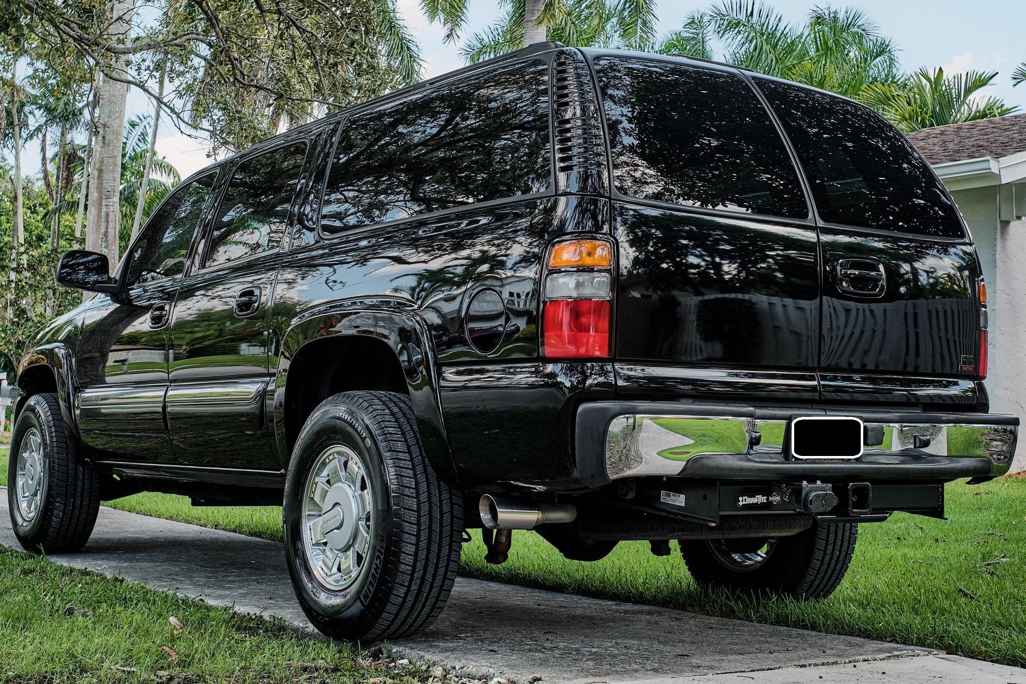 THIS. . . is a 2004 GMC Yukon XL 2500 SLT, finished in black with a gray interior. The odometer on this Yukon indicates about 38,500 miles. Factory equipment includes leather 3-row seating, second-row captain's chairs, rear entertainment and climate control, swing-out cargo doors, and a Bose audio system. Numerous modifications have been performed to this Yukon, and the full list is detailed below. include a Borla exhaust system, Hummer H2 wheels, LED lighting, a Sony infotainment system with Apple CarPlay, a Kicker amplifier, and a backup camera. Closely related to the Chevrolet Suburban, the "GMT800"-based GMC Yukon XL symbolically made its debut for the 2000 model year with a more rounded exterior design, a smoother ride, and even more interior space than its cavernous predecessor. Most buyers took home the 1500 model, but those looking for a more capable SUV could select the 2500, which was classified as a three-quarter-ton truck. Power comes from a 6. 0-liter V8, rated at 320 horsepower and 360 lb-ft of torque. Output is sent to the rear wheels via a 4-speed automatic transmission.