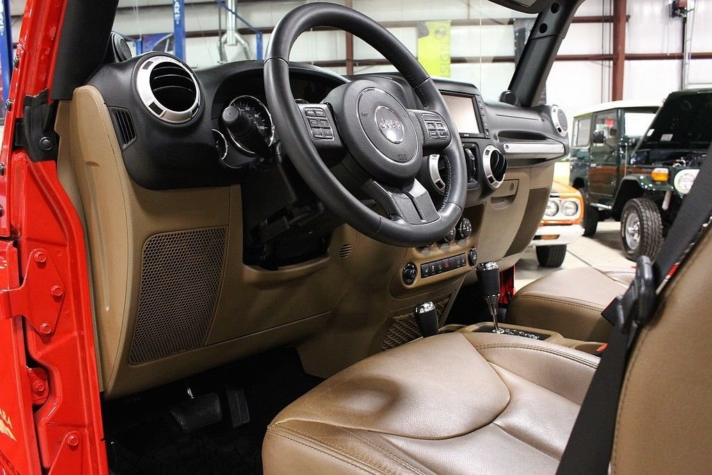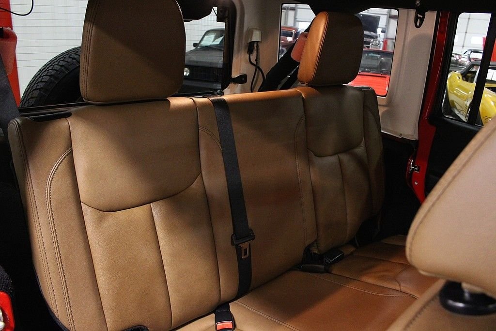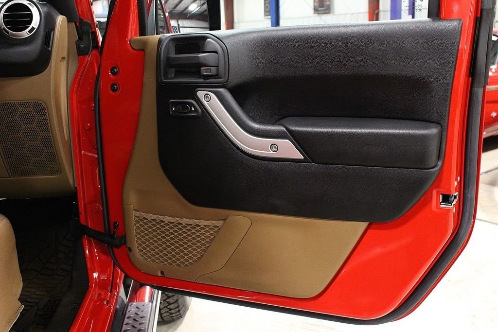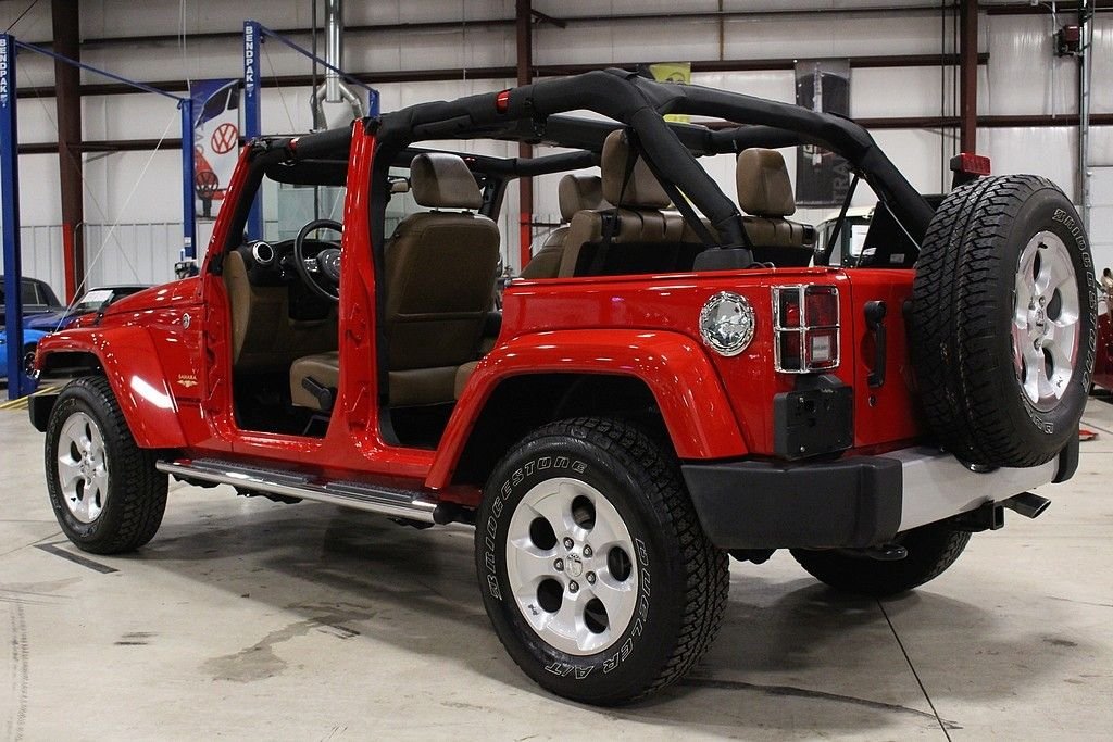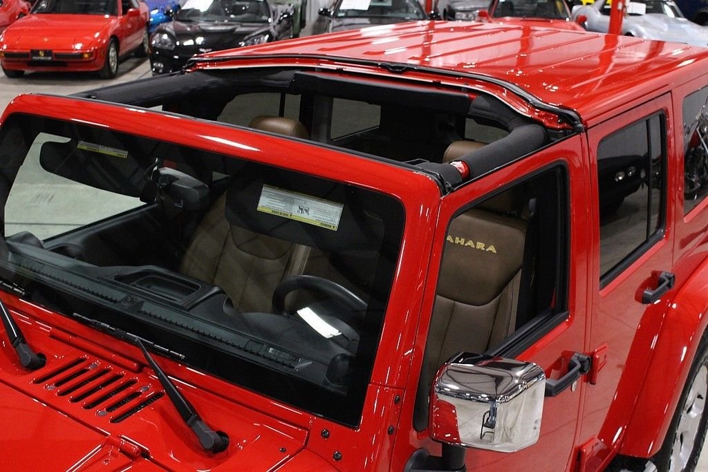 Pleased to offer this very stylish Jeep Wrangler Unlimited Sahara for your consideration. This 4dr version has been a very hot seller for Jeep and with the updated 3.6L engine with 285HP this mean machine will get you anywhere you want to travel or explore. The Sahara model is quite impressive with the standard creature comforts and this particular one is heavily optioned with factory features. Full power windows, power locks, mirrors, keyless entry and remote starter are just a few that are standard. Auto climate control and the 18in alloy wheels are impressive features along with the standard traction control and DANA front axles and solid rear axle that will get you out of any situation. This gorgeous Flame Red Wrangler is extremely nice with a very strong list of options from the factory. Paint looks as new and the interior is free from any signs of abuse. The Sahara model gives you some great features but this one comes with the following factory installed features; Leather trimmed seats, heated front seats, Bluetooth phone setup, Navigation system, tire pressure monitor, on-board computer, Chrome Edition Package which gives you chrome exhaust tip, chrome front grill, chrome side mirrors, chrome rear tail light covers, chrome side step bars, and chrome fuel filler door. This Sahara also comes with the expensive option of the Freedom color coded hard top which gives you the ability to pop out the front two panels for an open air feel without taking off the full top. Tow package and rear window wiper and defrost complete the top. Vehicle also comes with a class II tow package and 3.73 rear axle. Further options include the front side airbags, Slush mats by Mopar, 5-speed automatic transmission with hill decent control, Trac-Lok differential rear axle, and rounding out with the XM radio setup with remote USB port and full soft top. This is not your standard or basic Wrangler, MSRP was over $45k and these may be the best resale value vehicles on the market for any new vehicle. Car has been pampered and driven with care. The cool contrasting Saddle leather gives the Jeep a great look and stands out from the traditional black interiors. This car stands out from the rest and we highly encourage you to take a closer look at this very cool and fun Wrangler.