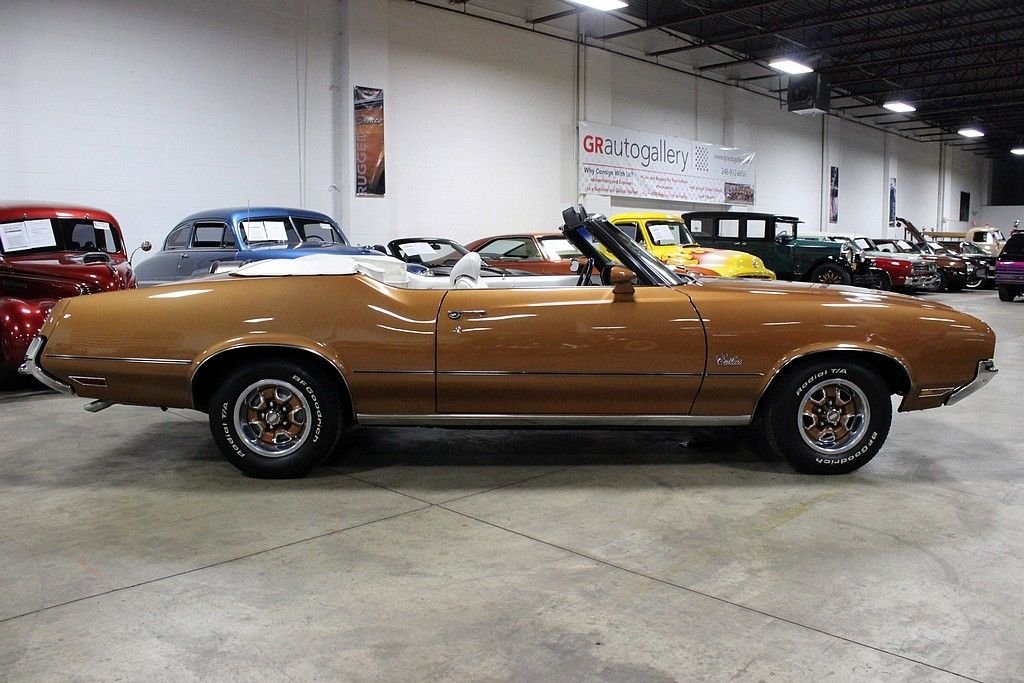 The GM A-body cars of this generation are some of the most highly sought after muscle collector cars of all time. The Cutlass shared the famous platform with the Chevelle, Buick GS, 442, and Pontiac GTO . With the major remodel taking place for the 1968 model year, these new designs went on to become a fan favorite and still stand as such in today's market. With the convertible as an option for this generation the enjoyment only grew when added and really makes this classic a cool cruiser ready for some drop-top rides. With its clean and sharp exterior featuring a unique Saddle Bronze color, painted to match wheels, fully functioning and clean vinyl top and a white interior to set it off even further, this cool cruiser is built to catch attention and is sure to bring smiles to its next lucky owner! With what is told as the original 350 V8 engine mated to an upgraded 4-speed automatic transmission, the drivability is fully intact and even comes with the original transmission and carburetor if requested! Also included with this classic is the original owner's manual, Protect-O-Plate,, car cover, extra paint and both sets of keys. Fully equipped with its power steering, power brakes, A/C which blows cold and its functioning stock AM/FM radio, this vehicle is complete and ready to be enjoyed this summer!