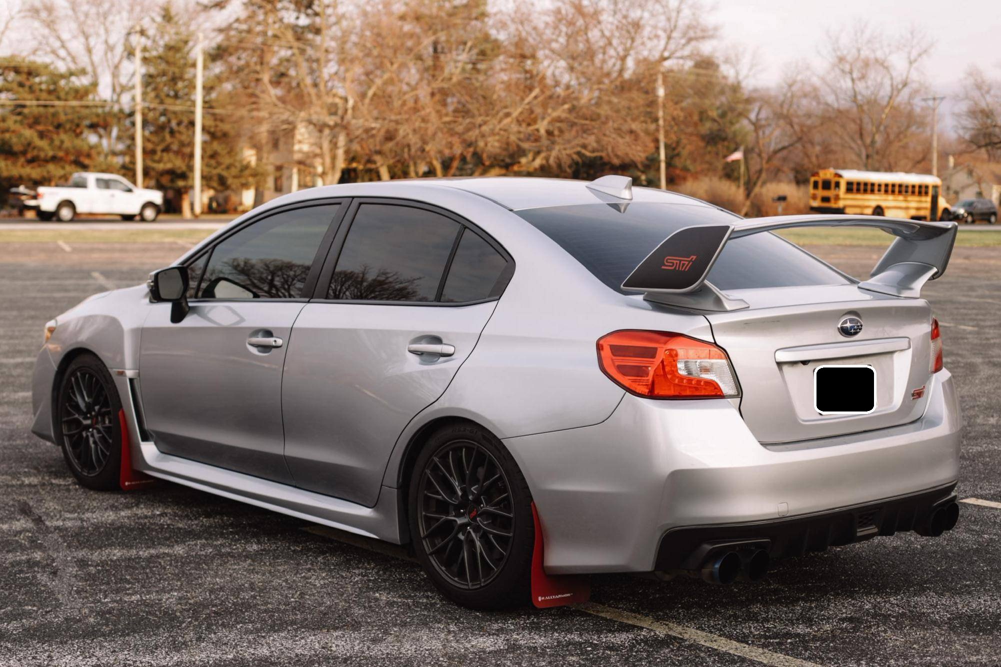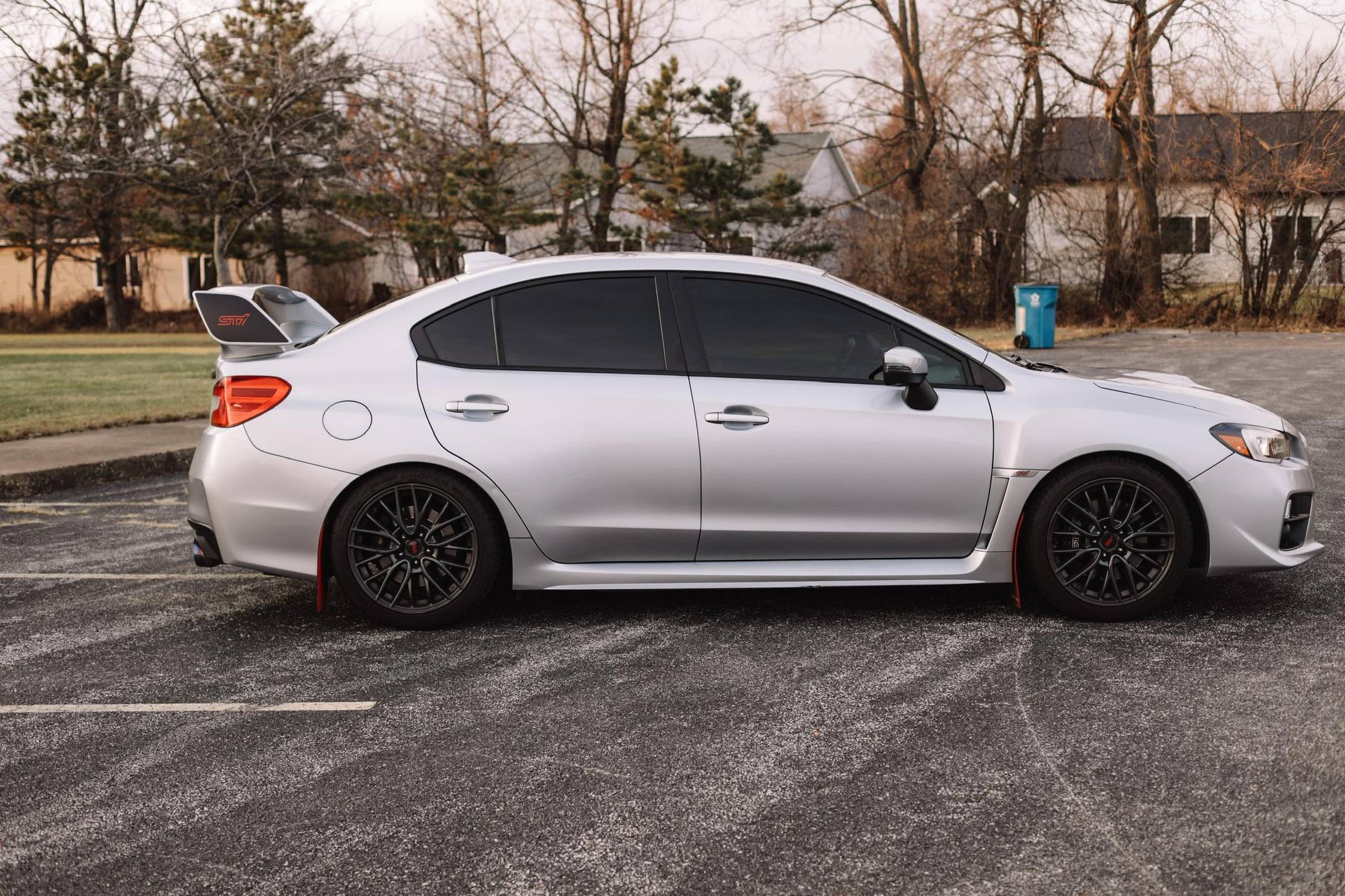 THIS… is a 2017 Subaru WRX STI, finished in Ice Silver Metallic with a Carbon Black and Red interior. Factory equipment includes 18-inch wheels, Driver Controlled Center Differential (DCCD), Brembo brakes, leather and Alcantara upholstery, heated front bucket seats, a navigation system, a Harman Kardon premium sound system, and more as listed below. Modifications reported by the seller include a cat-less Invidia R400 turbo back exhaust, a Cobb Tuning Accessport, a set of Rally Armor mud flaps, and tinted windows. Service documentation in the photo gallery indicates that this WRX STI had its engine rebuilt with a new short block, heads, cams, oil pump, and turbocharger, as well as a new transmission installed in September 2022 at 55,862 miles. Launched for 2015, the "VA"-generation WRX and WRX STI were split from the Impreza that they were based on. They became standalone models, not merely sporty evolutions of a compact car, and their new identity was accompanied by a more muscular-looking design plus the assortment of engine and chassis tweaks fans expected. Production ended in 2021, and Subaru confirmed the STI won't return. Power comes from a 2. 5-liter turbocharged flat-4, rated at 305 horsepower and 290 lb-ft of torque. Output is sent to all four wheels via a 6-speed manual transmission.