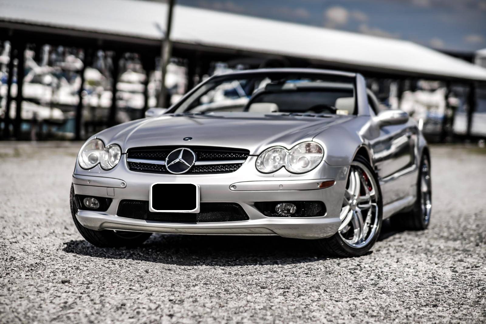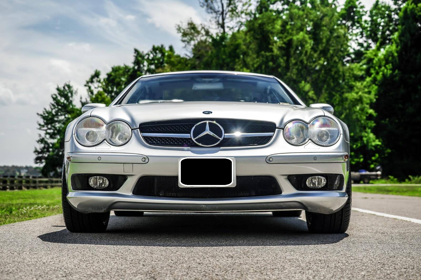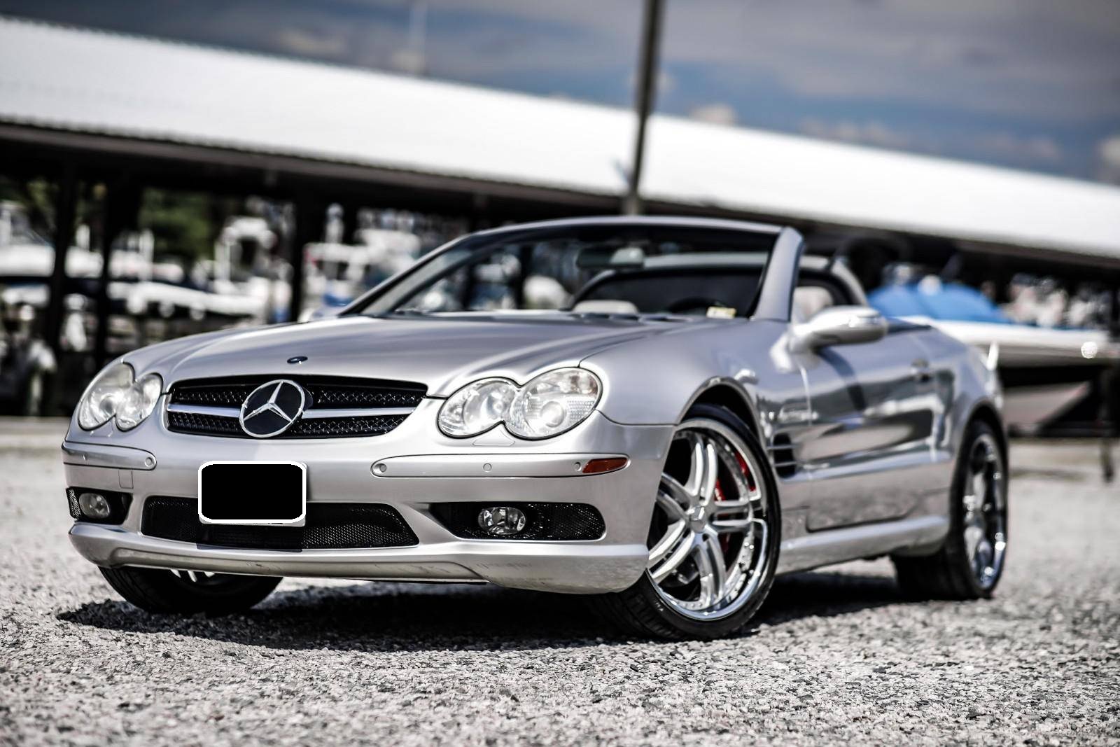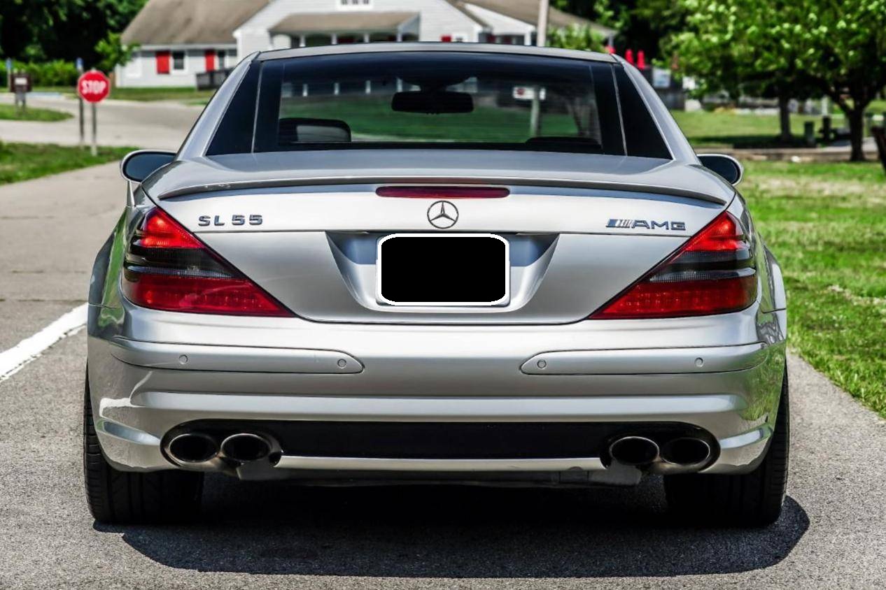 2004 Mercedes-Benz SL55 AMG, finished in Brilliant Silver Metallic with a gray interior. This convertible's odometer displays about 79,400 miles. Factory equipment includes the Active Body Control (ABC) suspension system, a power-operated hardtop, wood interior trim, leather upholstery, plus heated, ventilated, and power-adjustable multi-contour seats. This car's build sheet is pictured in the gallery. Modifications reported by the seller are limited to 20-inch wheels, red brake calipers, and a Sony touchscreen head unit. The factory 18-inch wheels are included in the sale. Called R230 internally, the first new SL of the 21st century made its debut for 2003 as a replacement for the venerable R129 model. It was appreciably quicker and far more advanced than its predecessor, it ditched the boxy lines for a sleeker and more rounded design that was aligned with the rest of the Mercedes-Benz range, and it came standard with a power-retractable hardtop. Production ended in 2011. Power comes from a 5. 4-liter supercharged V8, rated at 493 horsepower and 516 lb-ft of torque. Called "M113K" internally, it spins the rear wheels via a 5-speed automatic transmission.