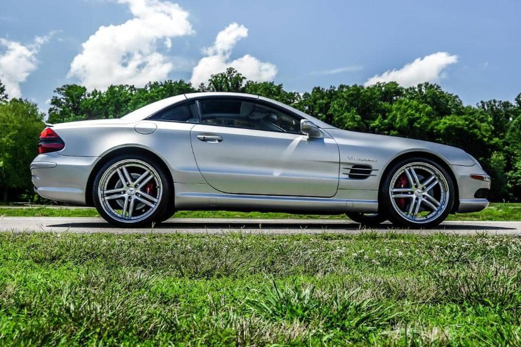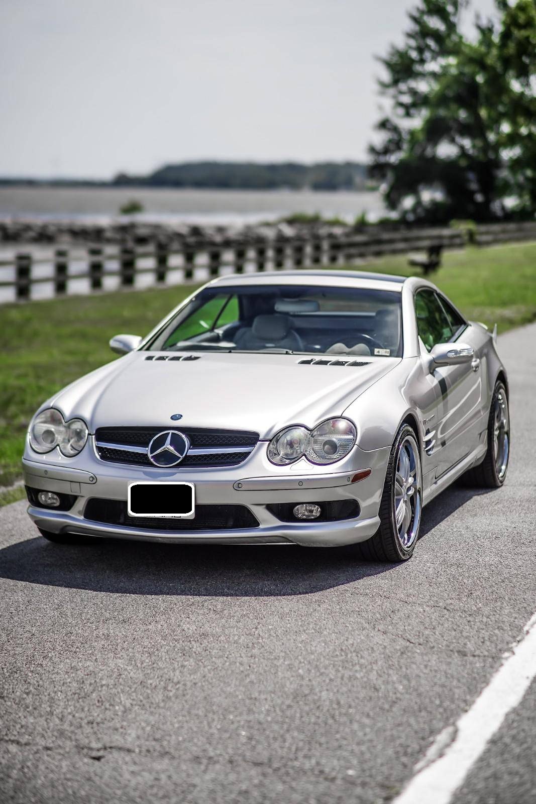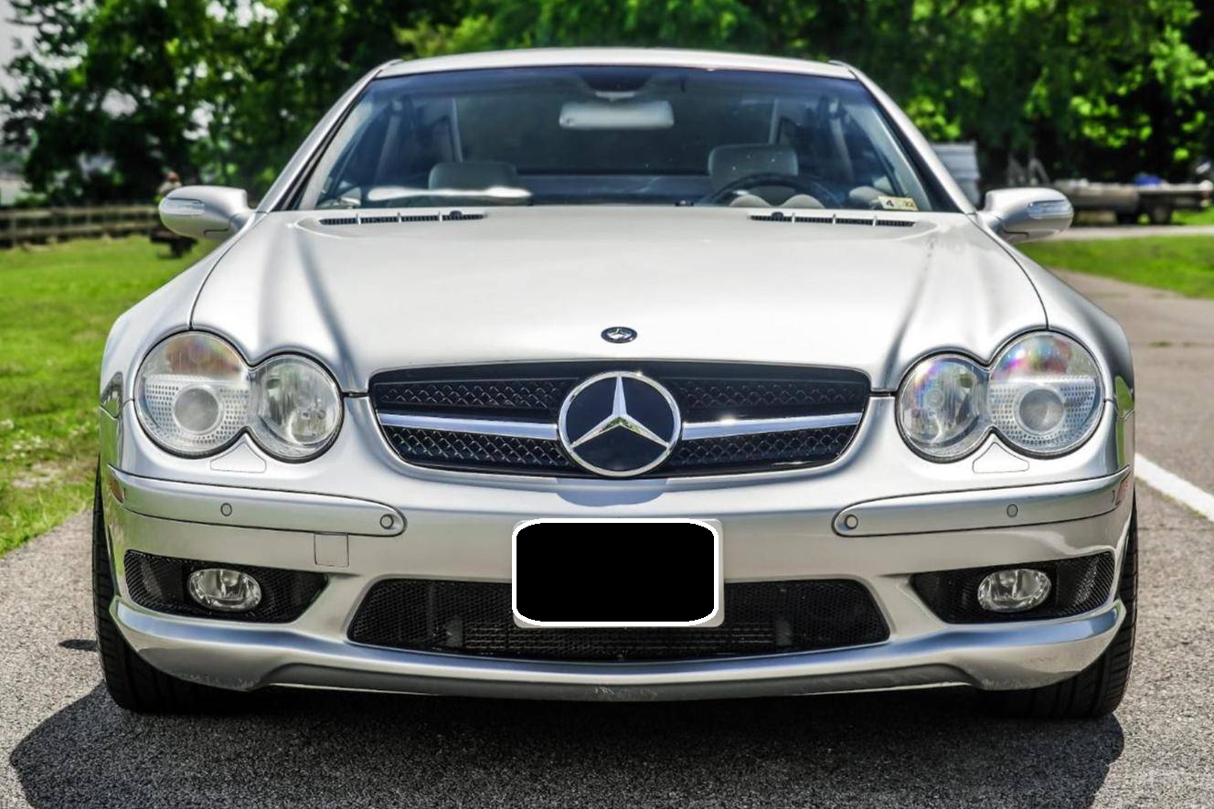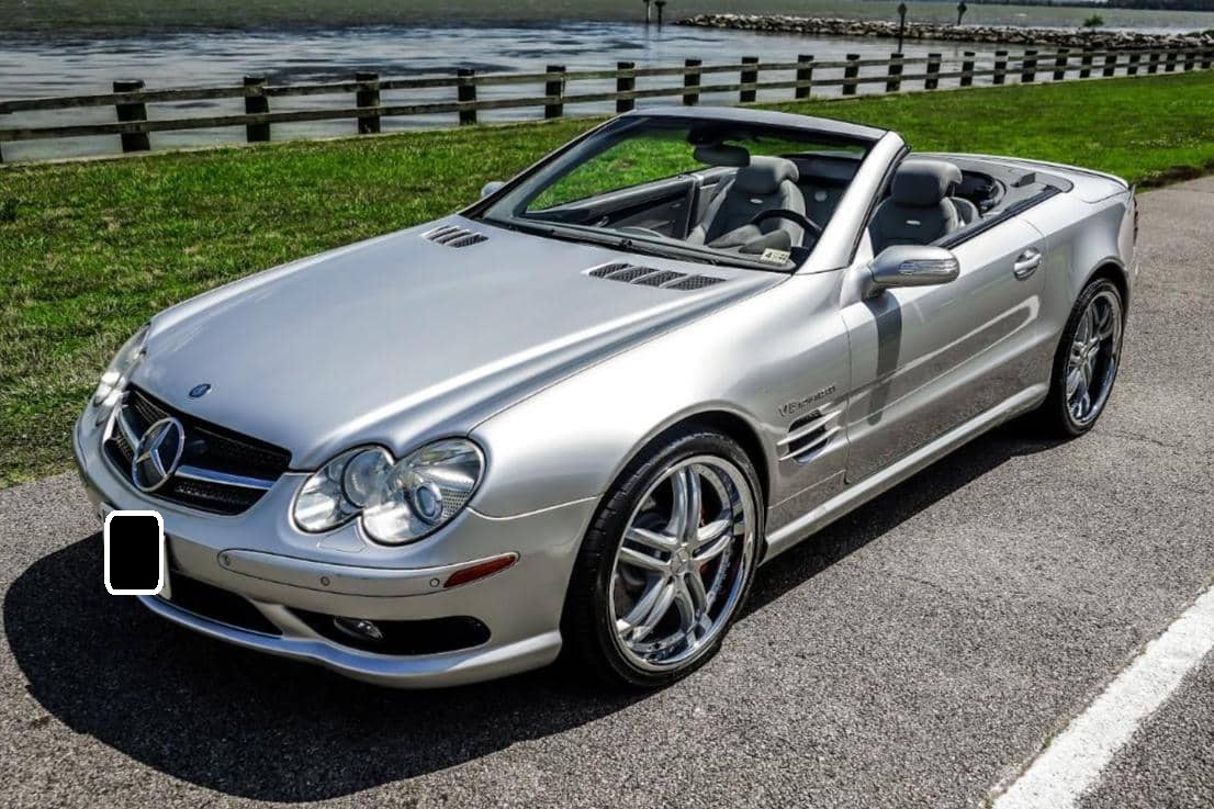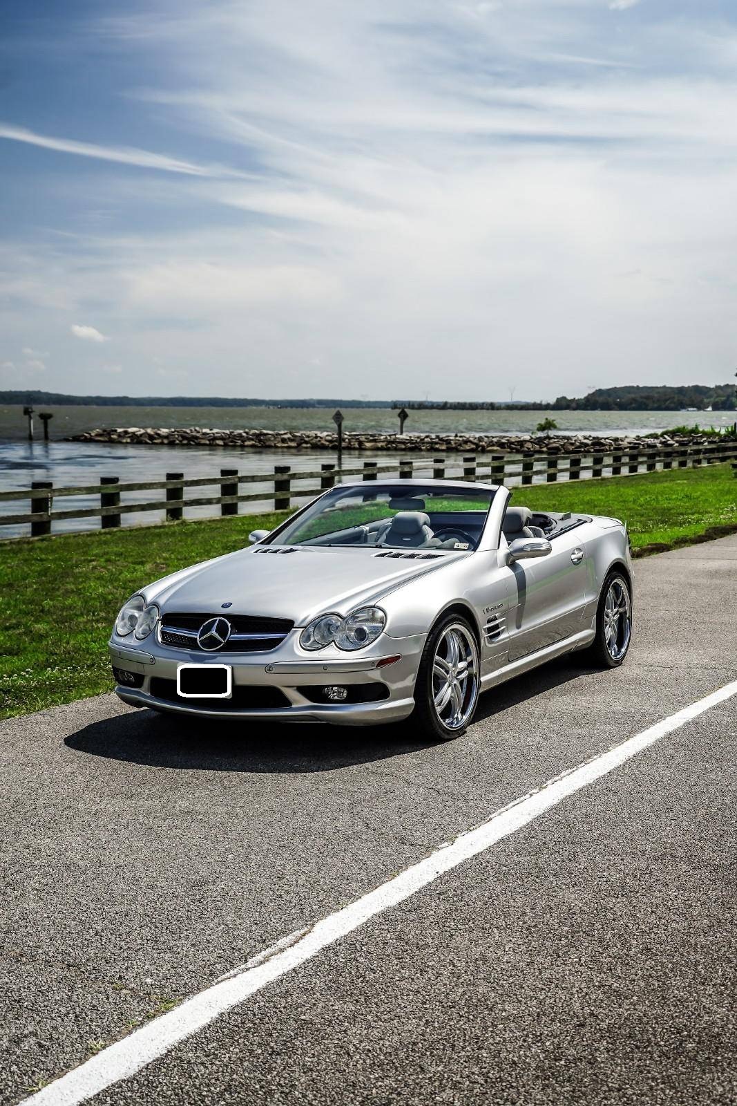 2004 Mercedes-Benz SL55 AMG, finished in Brilliant Silver Metallic with a gray interior. This convertible's odometer displays about 79,400 miles. Factory equipment includes the Active Body Control (ABC) suspension system, a power-operated hardtop, wood interior trim, leather upholstery, plus heated, ventilated, and power-adjustable multi-contour seats. This car's build sheet is pictured in the gallery. Modifications reported by the seller are limited to 20-inch wheels, red brake calipers, and a Sony touchscreen head unit. The factory 18-inch wheels are included in the sale. Called R230 internally, the first new SL of the 21st century made its debut for 2003 as a replacement for the venerable R129 model. It was appreciably quicker and far more advanced than its predecessor, it ditched the boxy lines for a sleeker and more rounded design that was aligned with the rest of the Mercedes-Benz range, and it came standard with a power-retractable hardtop. Production ended in 2011. Power comes from a 5. 4-liter supercharged V8, rated at 493 horsepower and 516 lb-ft of torque. Called "M113K" internally, it spins the rear wheels via a 5-speed automatic transmission.