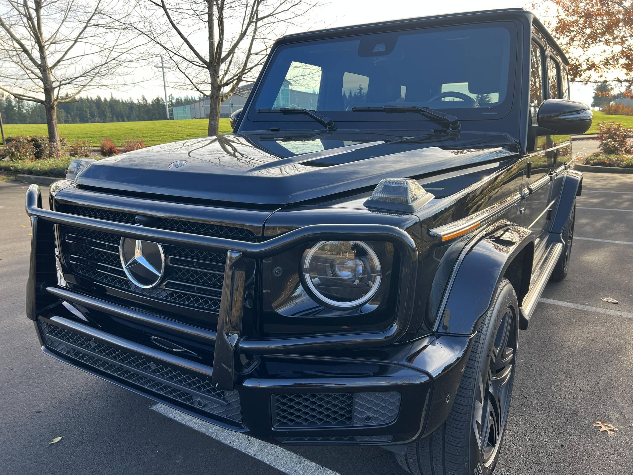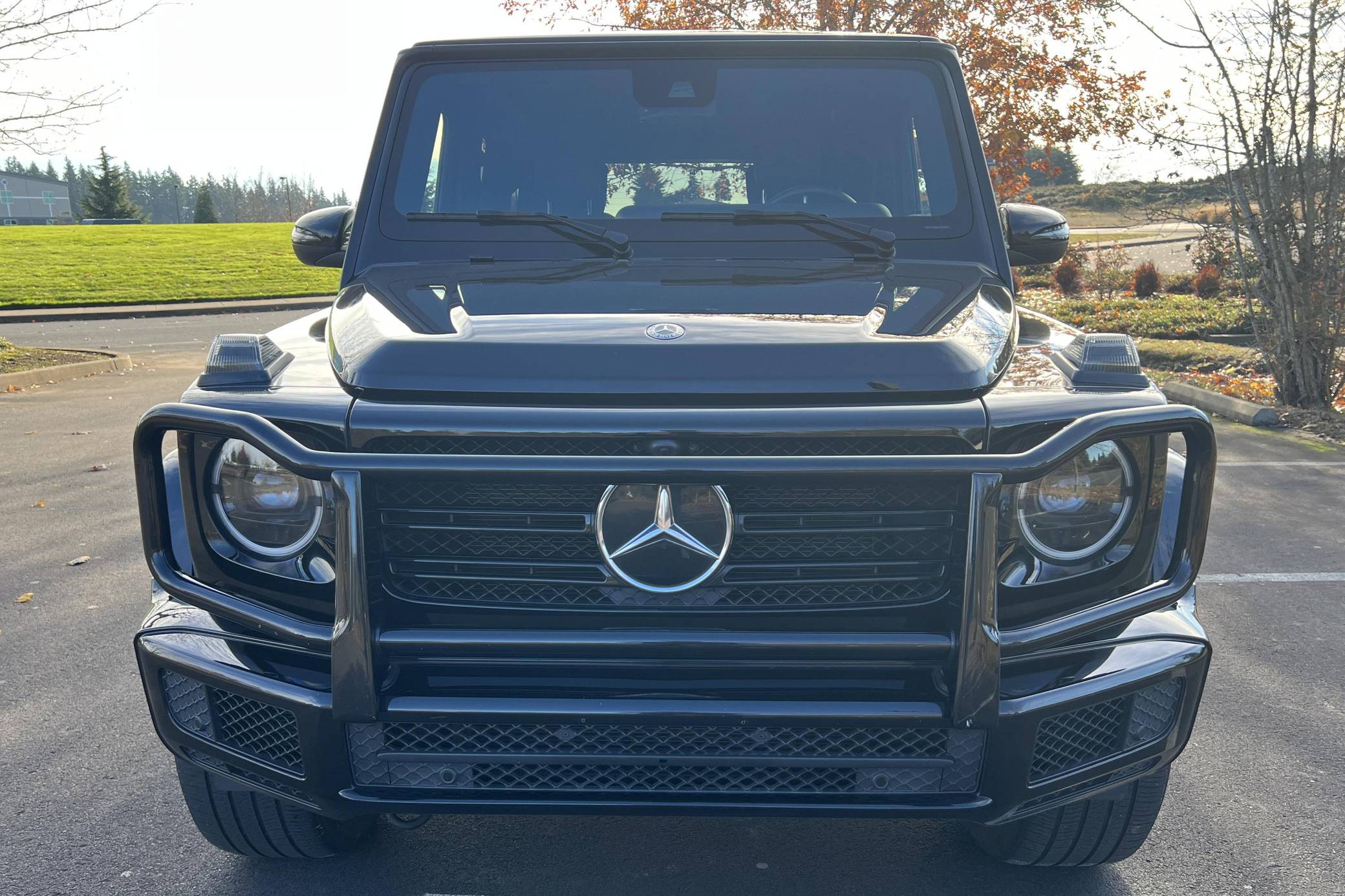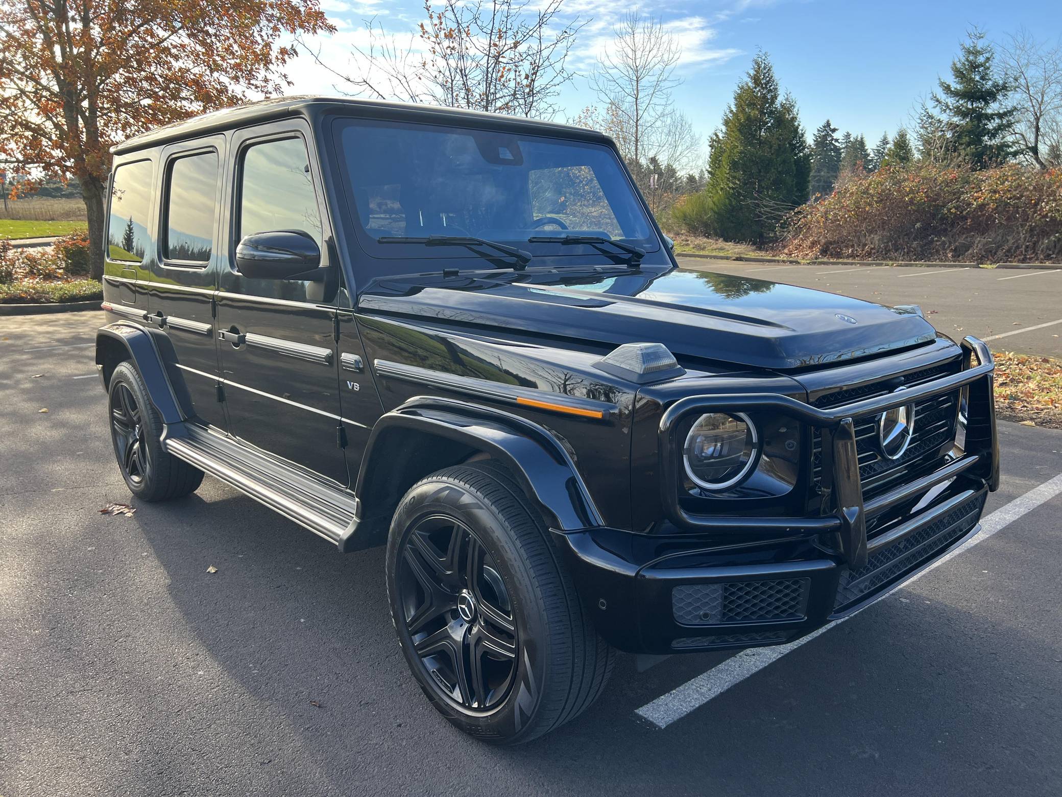 THIS… is a 2019 Mercedes-Benz G550, finished in black with a black interior. Factory equipment includes the AMG Line, Night, and Exclusive Interior packages, bi-xenon headlights, a sunroof, Nappa leather upholstery, power-adjustable heated and ventilated front seats, heated rear seats, a navigation system, a Burmester surround sound system, and more as listed below. No modifications have been reported by the seller. Mercedes-Benz gave the emblematic G-Class its first complete overhaul for the 2019 model year. Still built in Graz, Austria, the off-roader wore an evolutionary exterior design but it was entirely new beneath the sheet metal; the exterior door handles were one of the three components carried over from the old to the new G. Mercedes-Benz notably redesigned the frame and the steering system, and it stuffed more tech features into the cabin, but it kept the three locking differentials. Production continues in 2023. Power comes from a 4. 0-liter twin-turbocharged V8, rated at 416 horsepower and 450 lb-ft of torque. Output is sent to all four wheels through a 9-speed automatic transmission and a 2-speed transfer case.