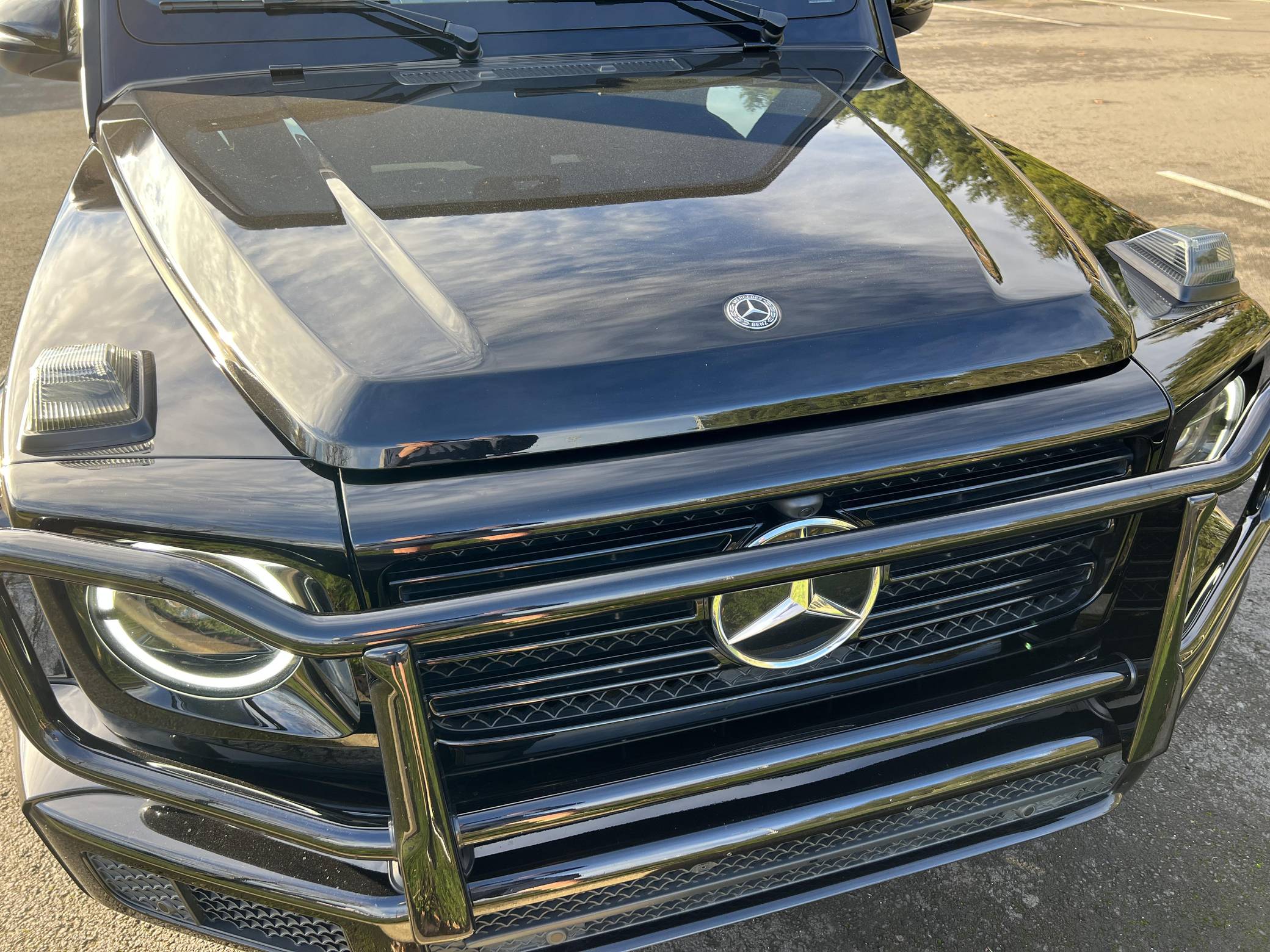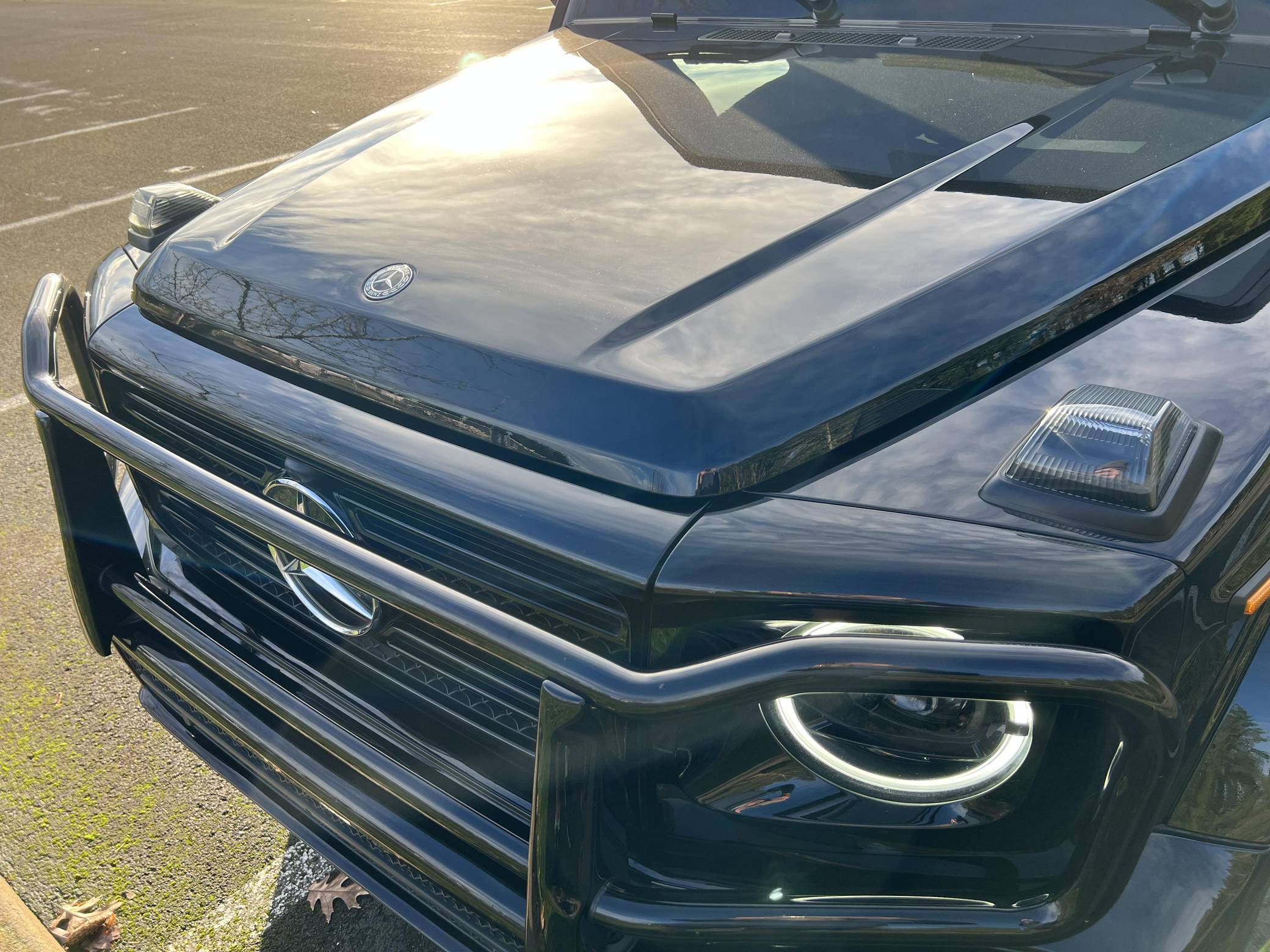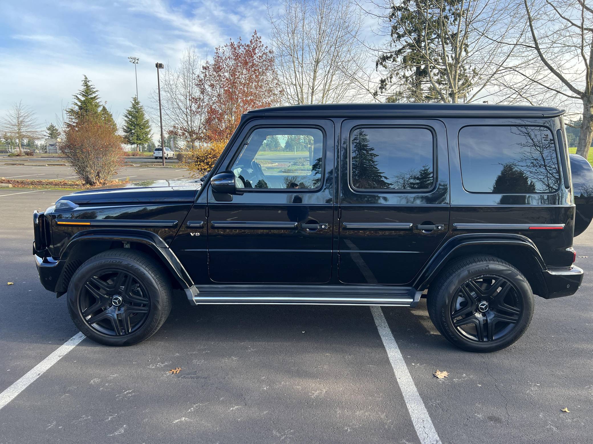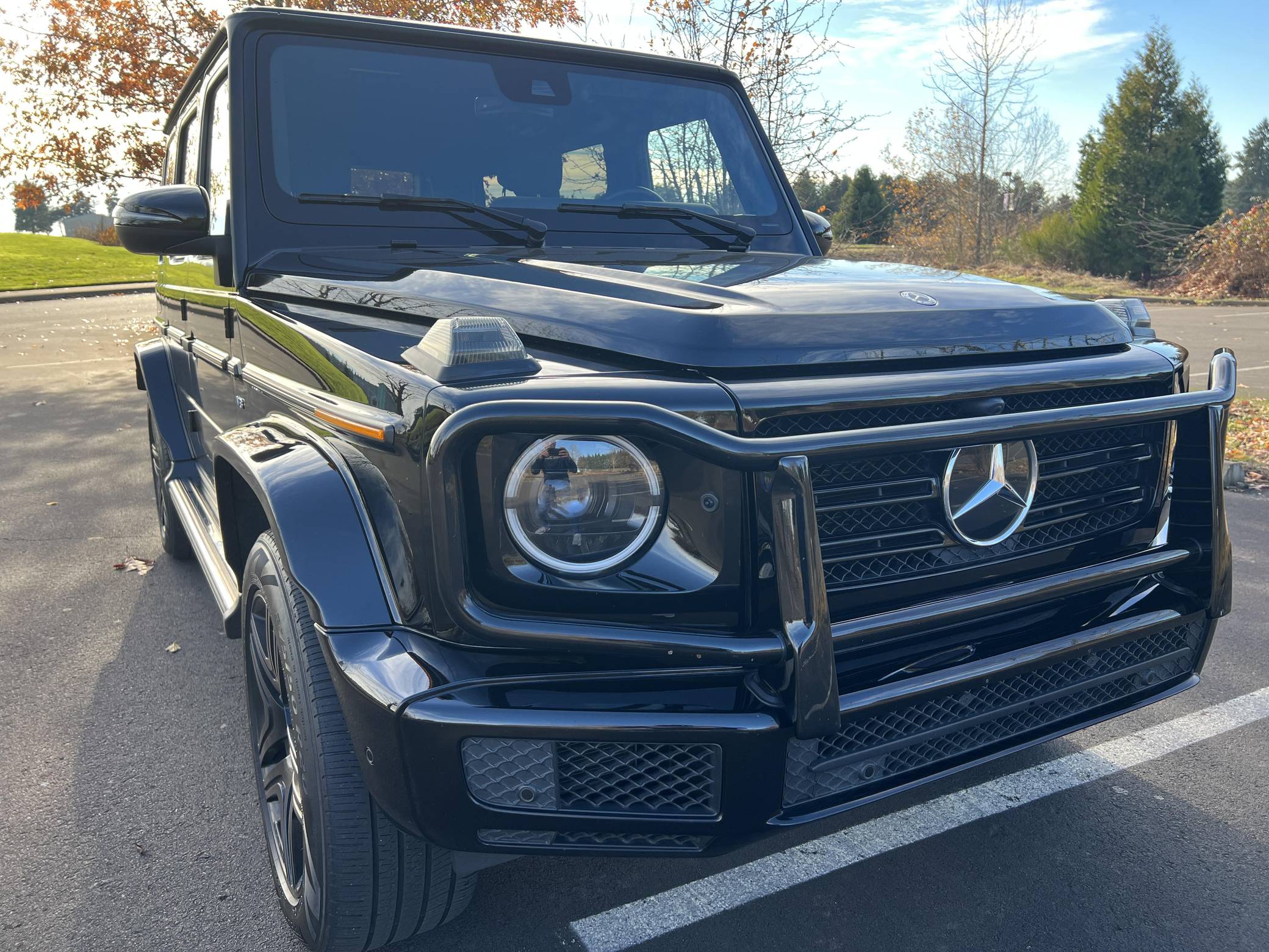 THIS… is a 2019 Mercedes-Benz G550, finished in black with a black interior. Factory equipment includes the AMG Line, Night, and Exclusive Interior packages, bi-xenon headlights, a sunroof, Nappa leather upholstery, power-adjustable heated and ventilated front seats, heated rear seats, a navigation system, a Burmester surround sound system, and more as listed below. No modifications have been reported by the seller. Mercedes-Benz gave the emblematic G-Class its first complete overhaul for the 2019 model year. Still built in Graz, Austria, the off-roader wore an evolutionary exterior design but it was entirely new beneath the sheet metal; the exterior door handles were one of the three components carried over from the old to the new G. Mercedes-Benz notably redesigned the frame and the steering system, and it stuffed more tech features into the cabin, but it kept the three locking differentials. Production continues in 2023. Power comes from a 4. 0-liter twin-turbocharged V8, rated at 416 horsepower and 450 lb-ft of torque. Output is sent to all four wheels through a 9-speed automatic transmission and a 2-speed transfer case.