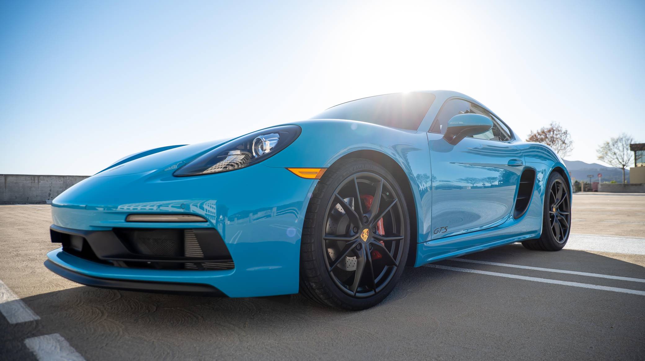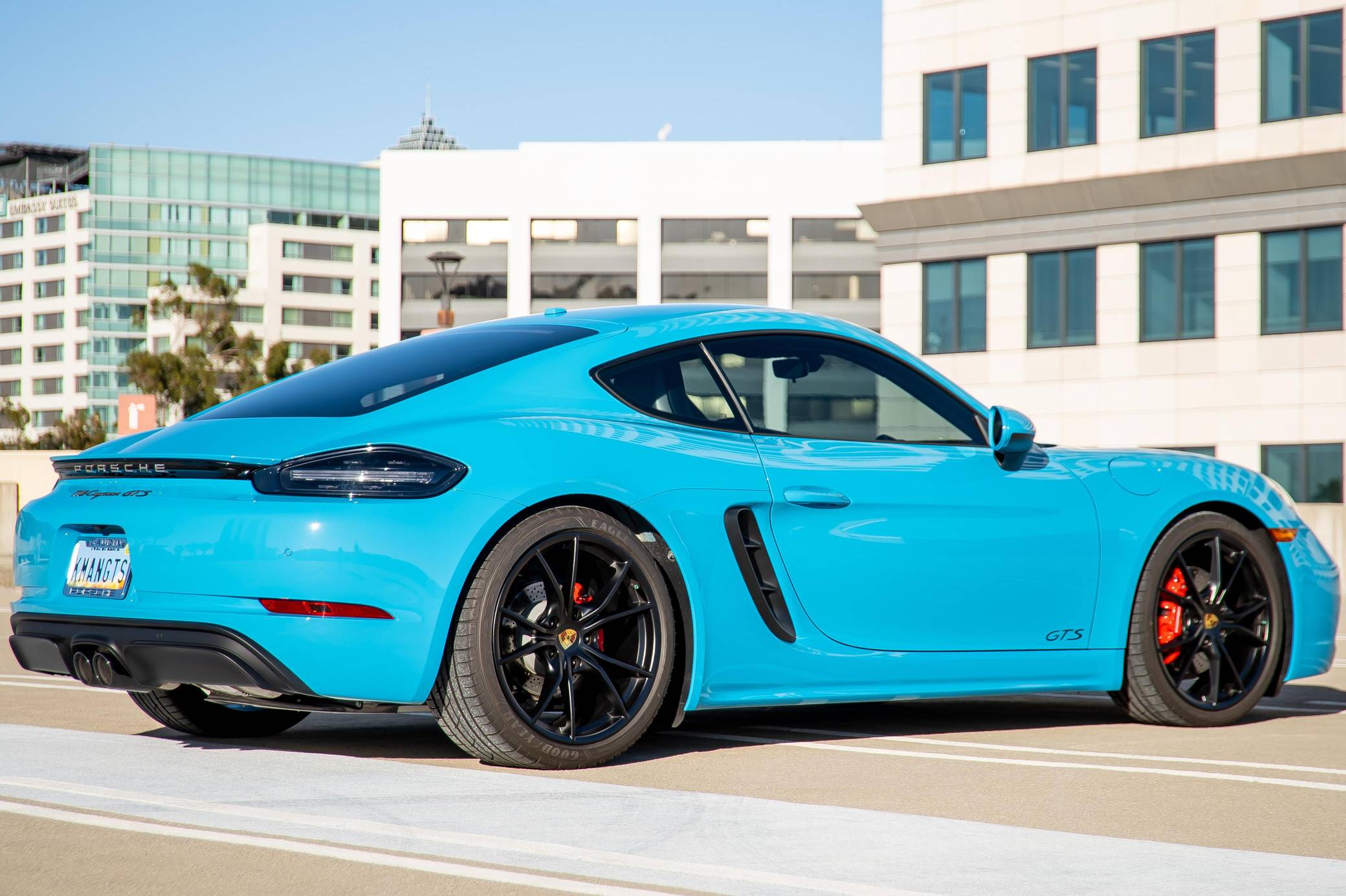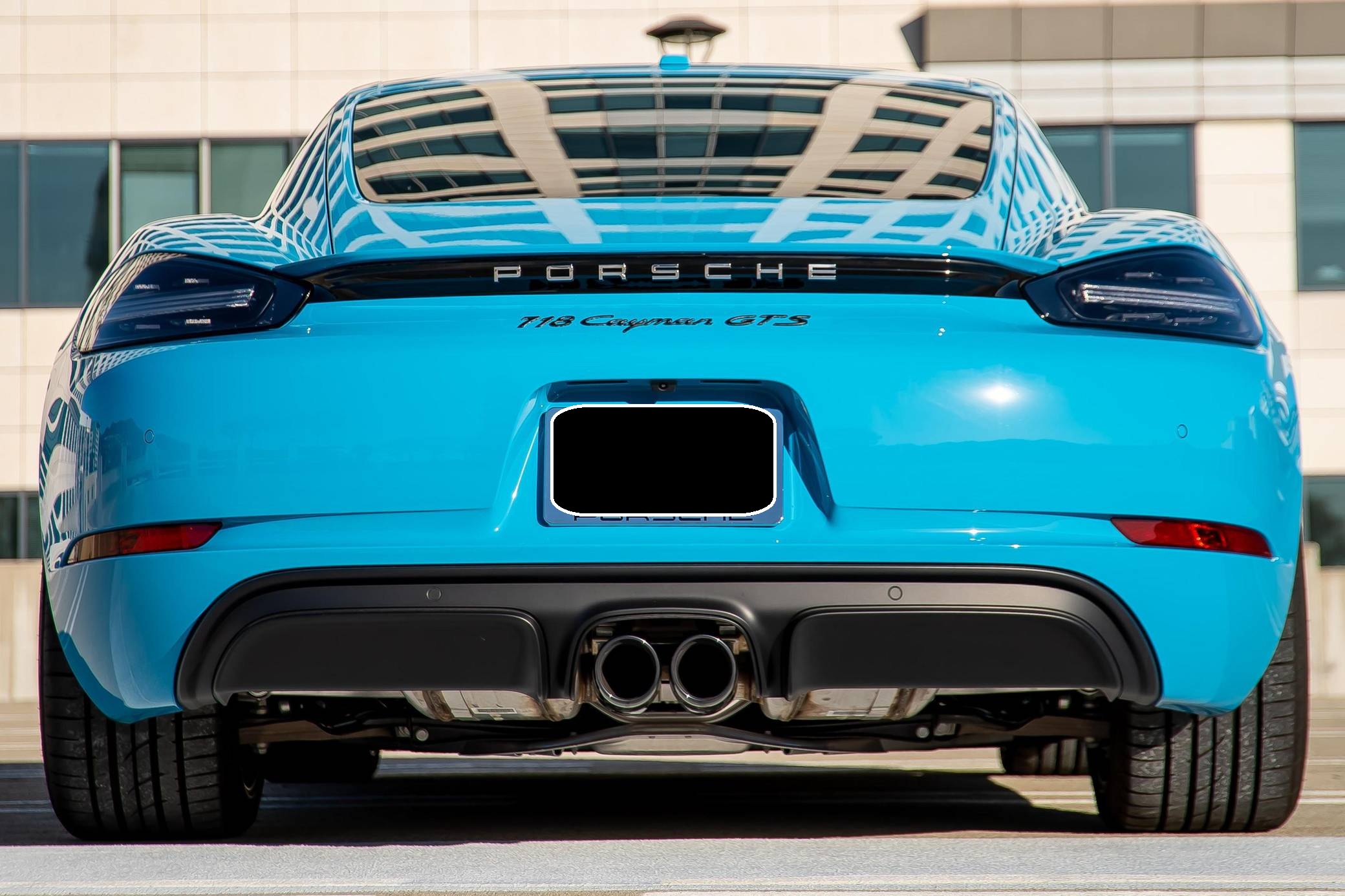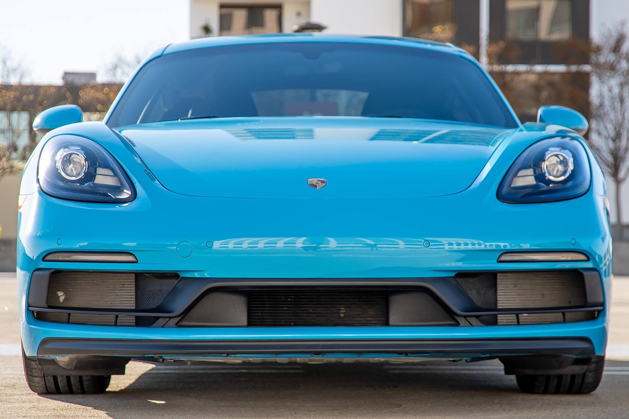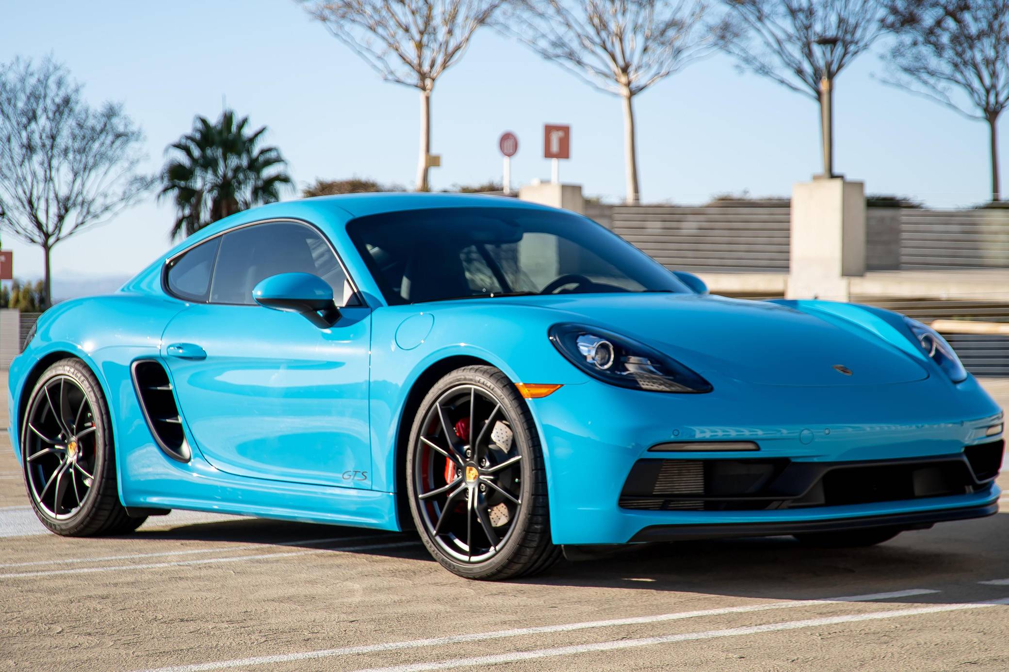 THIS. . . is a 2018 Porsche 718 Cayman GTS, finished in Miami Blue with a black interior. The odometer currently displays approximately 1,300 miles. Factory equipment includes the Sport Chrono Package, 20-inch Carrera S wheels, Porsche Active Suspension Management, Porsche Torque Vectoring, a sport exhaust system, leather and Alcantara upholstery, heated seats, and a Bose surround sound system. The sole modification reported by the seller is tinted windows. The "982" generation 718 Cayman debuted for the 2017 model year as an evolution on the Cayman nameplate, with the "718" designation paying homage to Porsche's 718 race cars from the 1950s. The model's powerplant was updated with a turbocharged 4-cylinder engine, and the result was a more powerful and more efficient car than its predecessor. The GTS model received a more powerful 2. 5-liter motor, as well as a Porsche Sport Exhaust and PASM adaptive suspension as standard equipment, among other upgrades over the S model. Power comes from a mid-mounted 2. 5-liter turbocharged flat-4, rated at 365 horsepower and 309 lb-ft of torque. Output is sent to the rear wheels via a 7-speed automatic transmission.