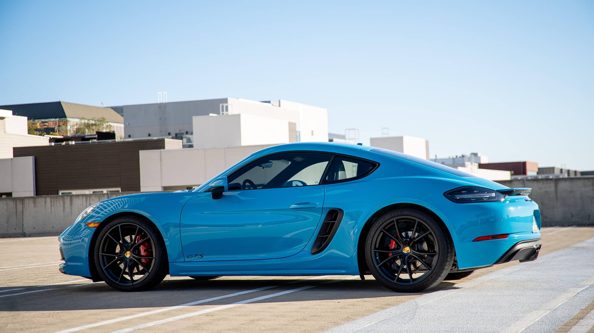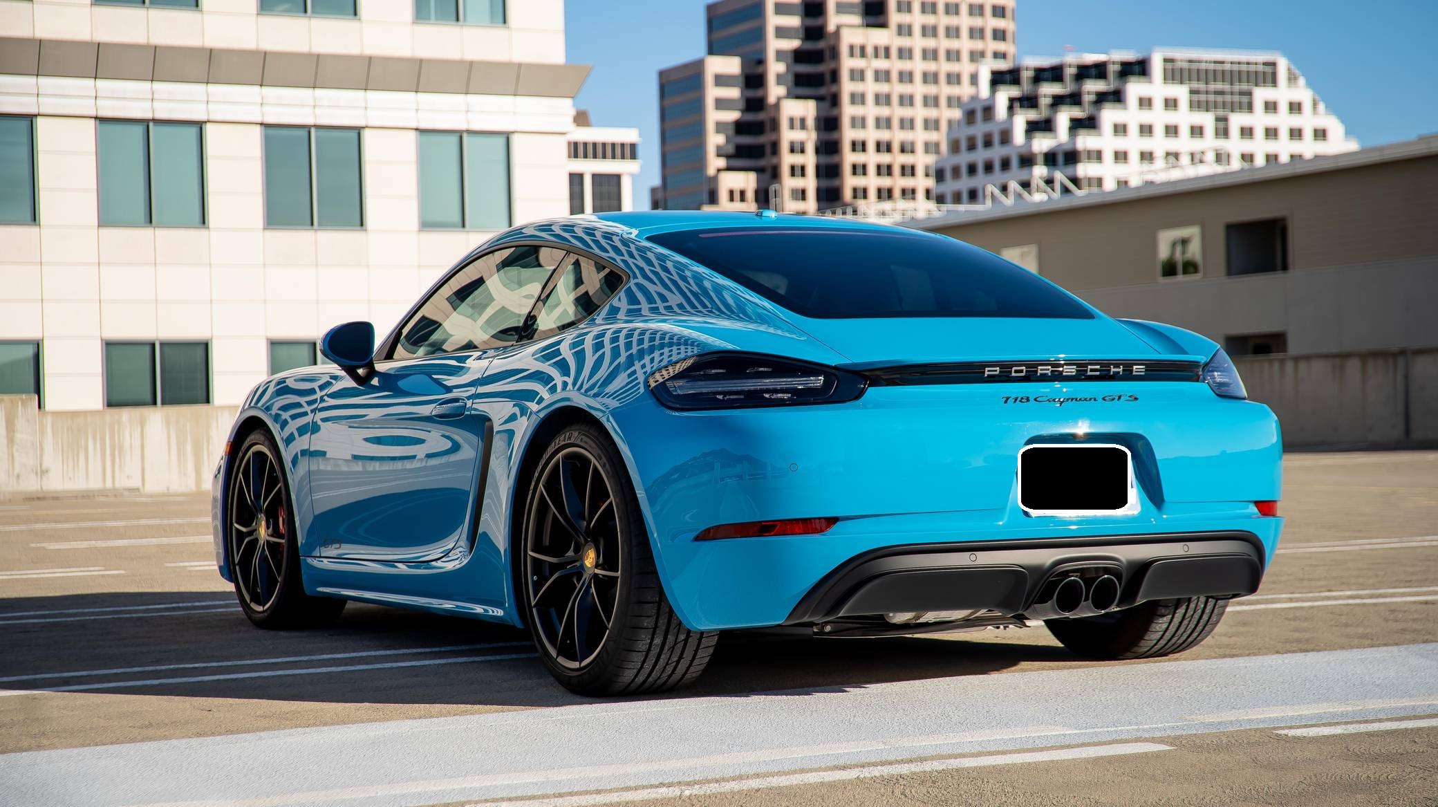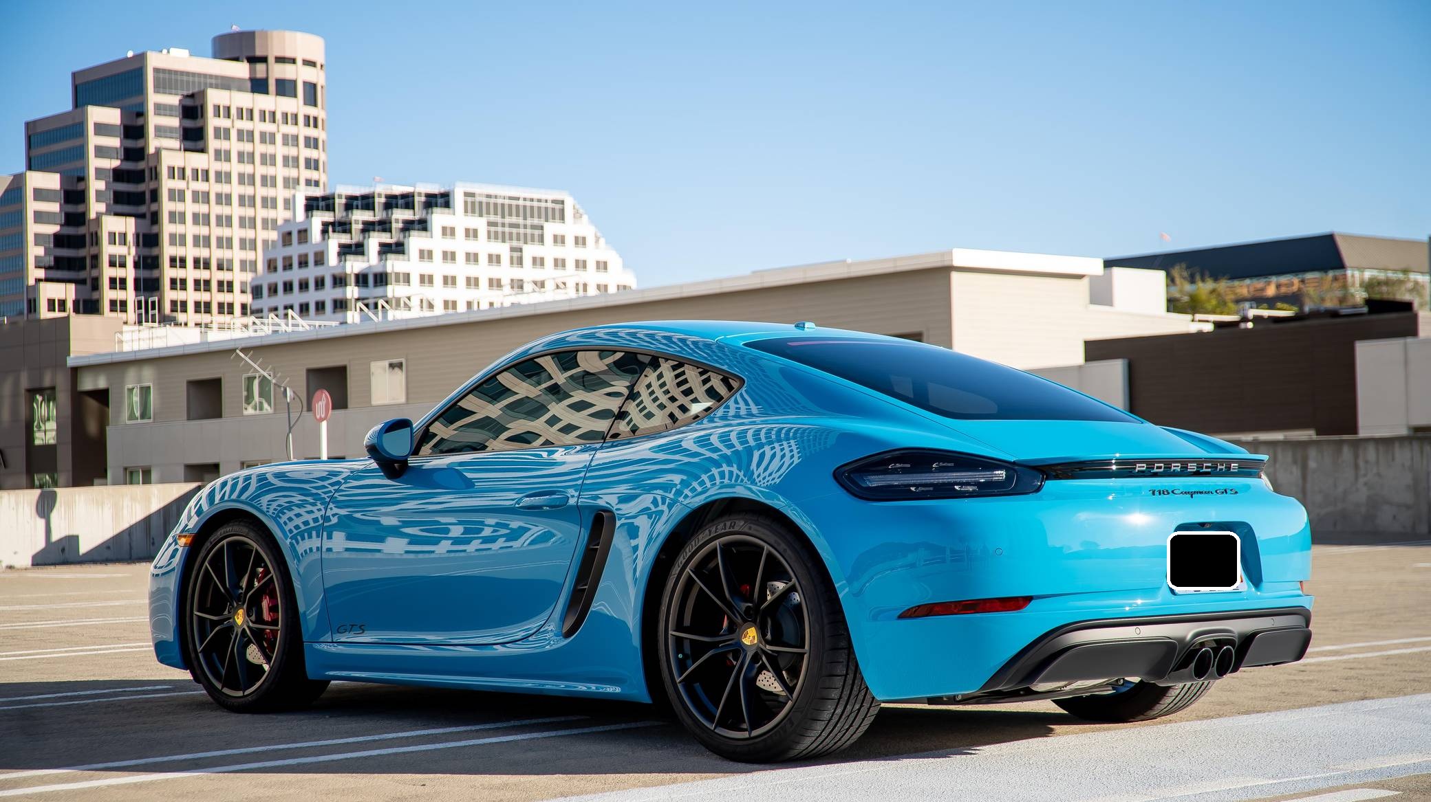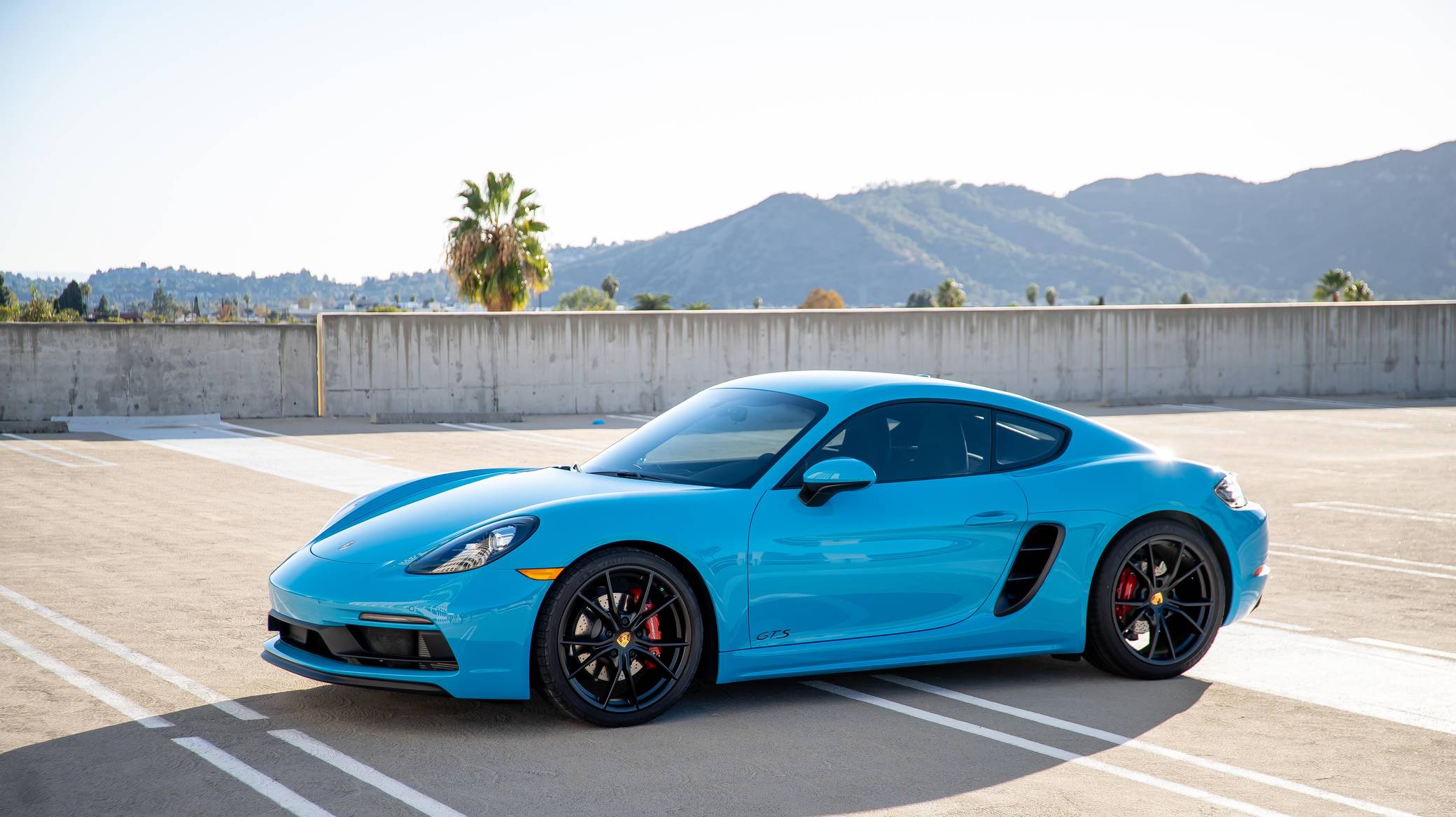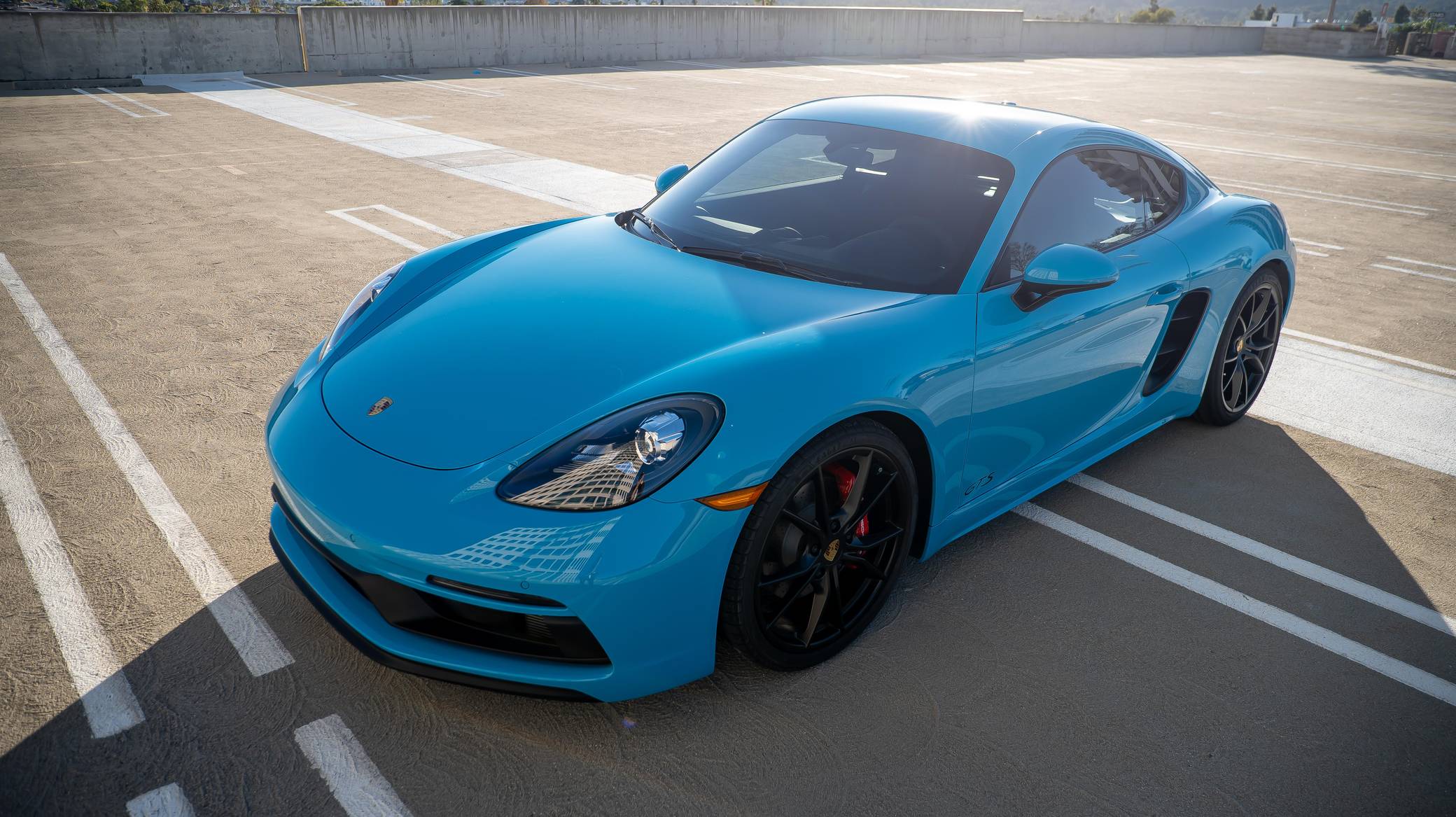 THIS. . . is a 2018 Porsche 718 Cayman GTS, finished in Miami Blue with a black interior. The odometer currently displays approximately 1,300 miles. Factory equipment includes the Sport Chrono Package, 20-inch Carrera S wheels, Porsche Active Suspension Management, Porsche Torque Vectoring, a sport exhaust system, leather and Alcantara upholstery, heated seats, and a Bose surround sound system. The sole modification reported by the seller is tinted windows. The "982" generation 718 Cayman debuted for the 2017 model year as an evolution on the Cayman nameplate, with the "718" designation paying homage to Porsche's 718 race cars from the 1950s. The model's powerplant was updated with a turbocharged 4-cylinder engine, and the result was a more powerful and more efficient car than its predecessor. The GTS model received a more powerful 2. 5-liter motor, as well as a Porsche Sport Exhaust and PASM adaptive suspension as standard equipment, among other upgrades over the S model. Power comes from a mid-mounted 2. 5-liter turbocharged flat-4, rated at 365 horsepower and 309 lb-ft of torque. Output is sent to the rear wheels via a 7-speed automatic transmission.