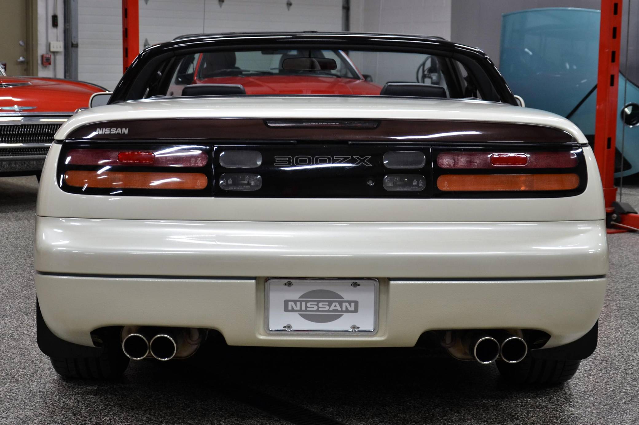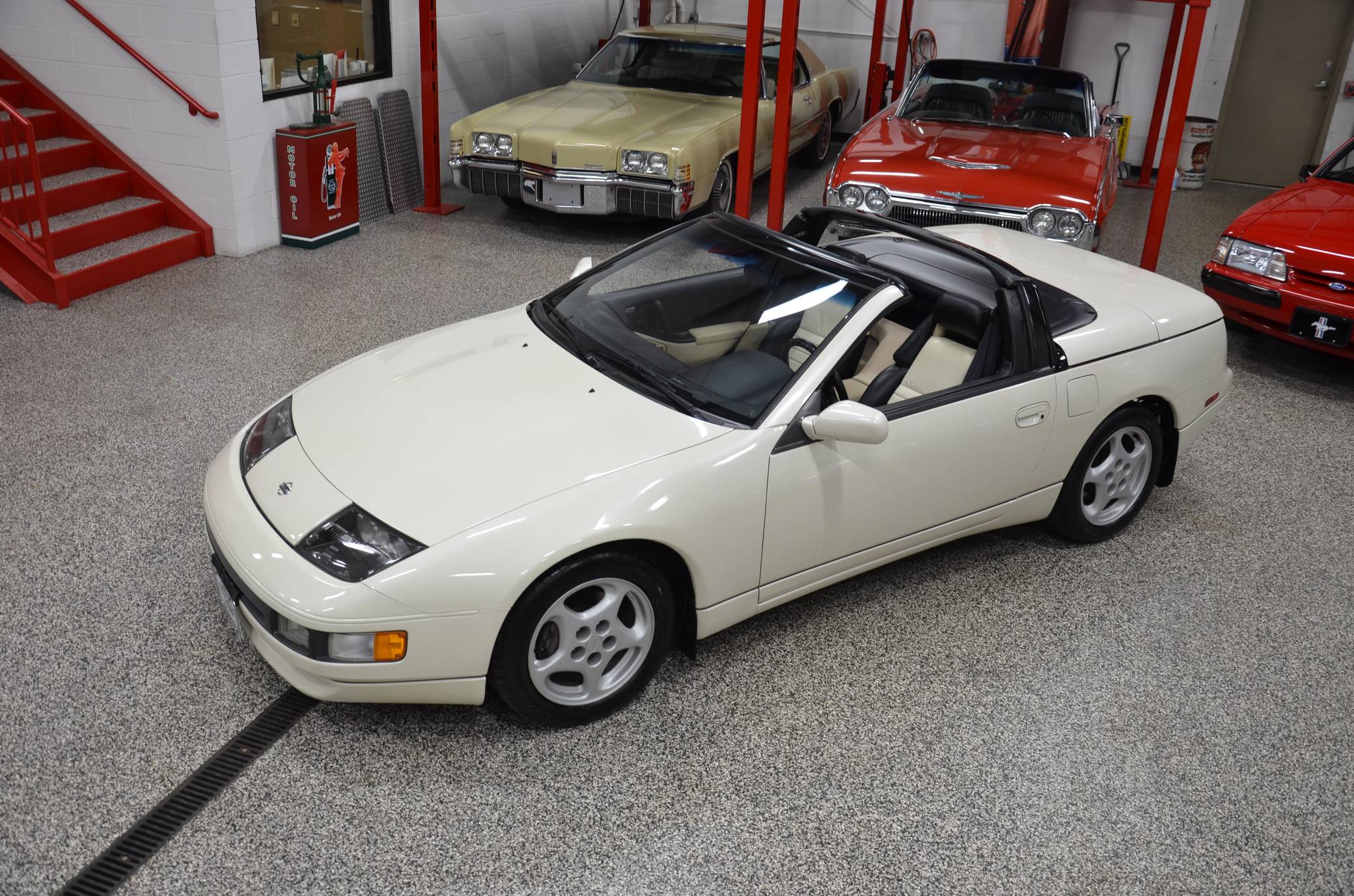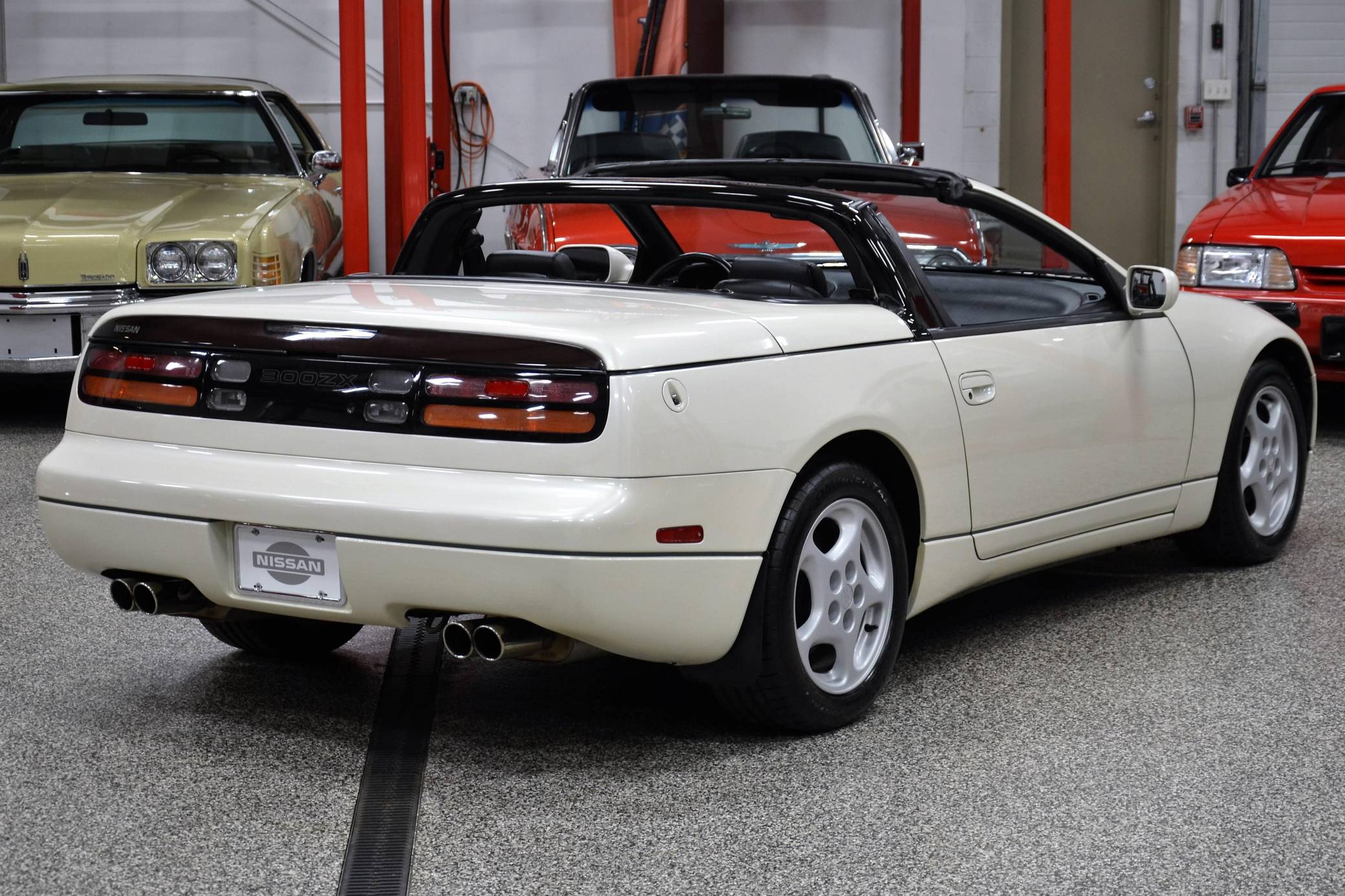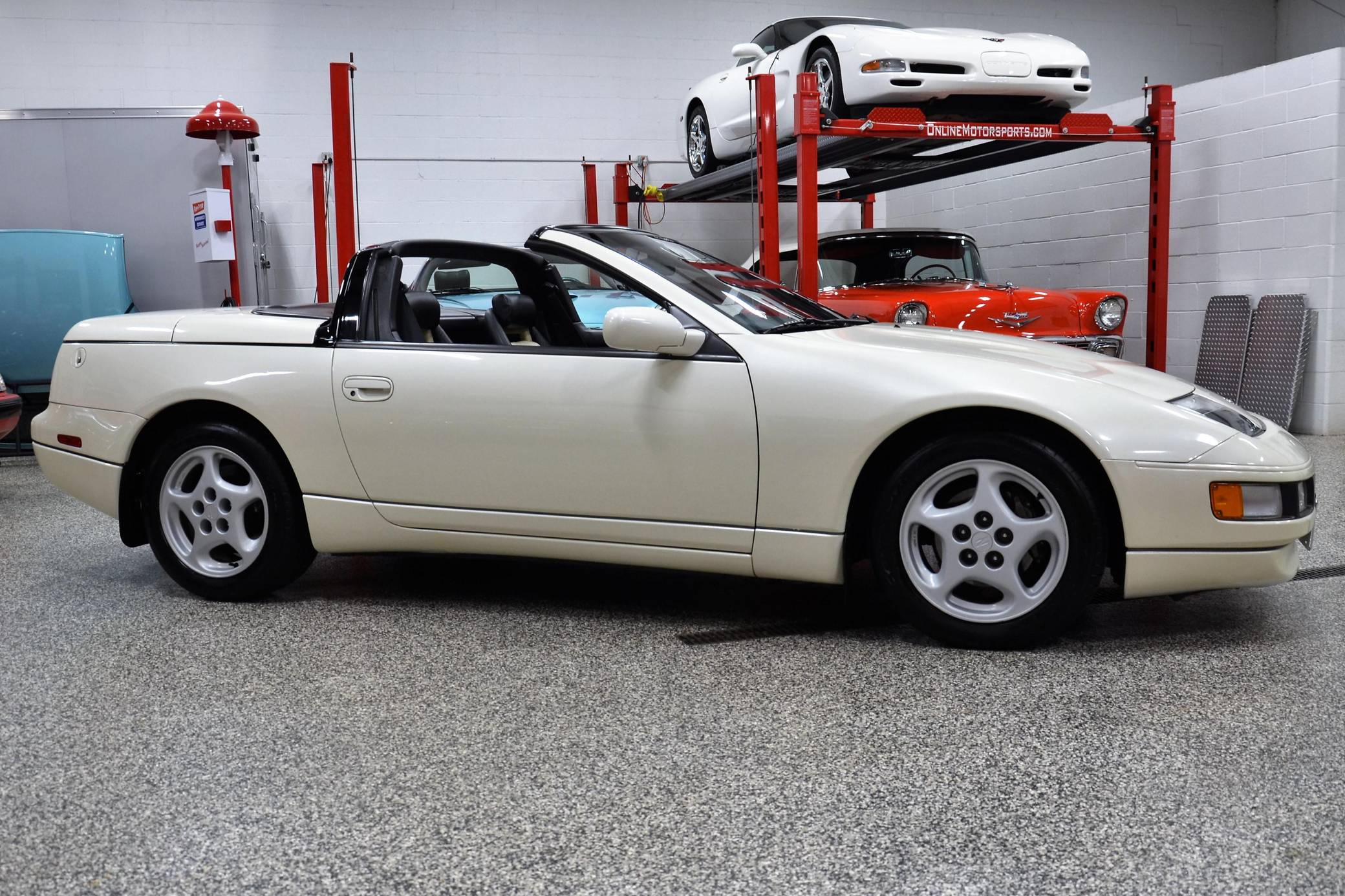 1993 Nissan 300ZX Convertible, finished in Glacier White Pearl with a black soft top and a black and tan interior. This 300ZX is equipped with the desirable 5-speed manual transmission. It also shows that this 300ZX was registered to one owner since 1996. Factory equipment includes 16-inch wheels, a manually-folding soft top, a power-adjustable driver's seat, power windows, mirrors, and locks, air conditioning, and cruise control. Modifications reported by the seller include a Billy Boat cat-back exhaust system, Stillen headers, Injen cold air intakes, custom vinyl seat upholstery, and a Kenwood head unit. Nissan's Z cars are icons from the brand's performance car heritage. Nissan's marketing materials called out the extensive use of computer modeling during the design of the car, which was advanced for an affordable sports car in the '90s. This 300ZX comes from the heart of the Z32 production cycle, which ran from 1989 to 2000. Power comes from a "VG30DE" 3. 0-liter twin-cam V6, rated at 222 horsepower and 198 lb-ft of torque in stock form. The modifications may increase those figures, but a dyno sheet was not provided to confirm. Power is sent to the rear wheels via a 5-speed manual transmission.
