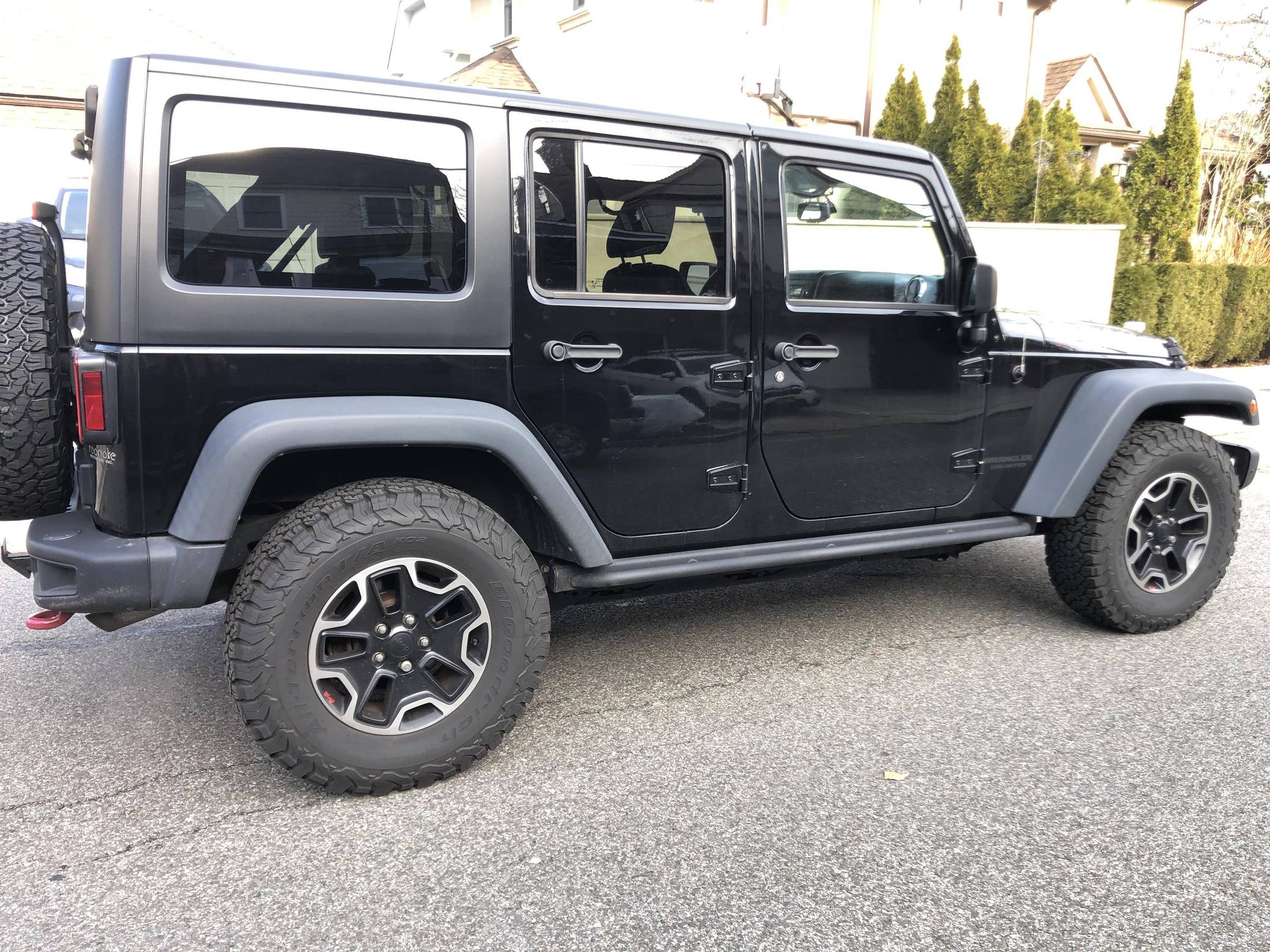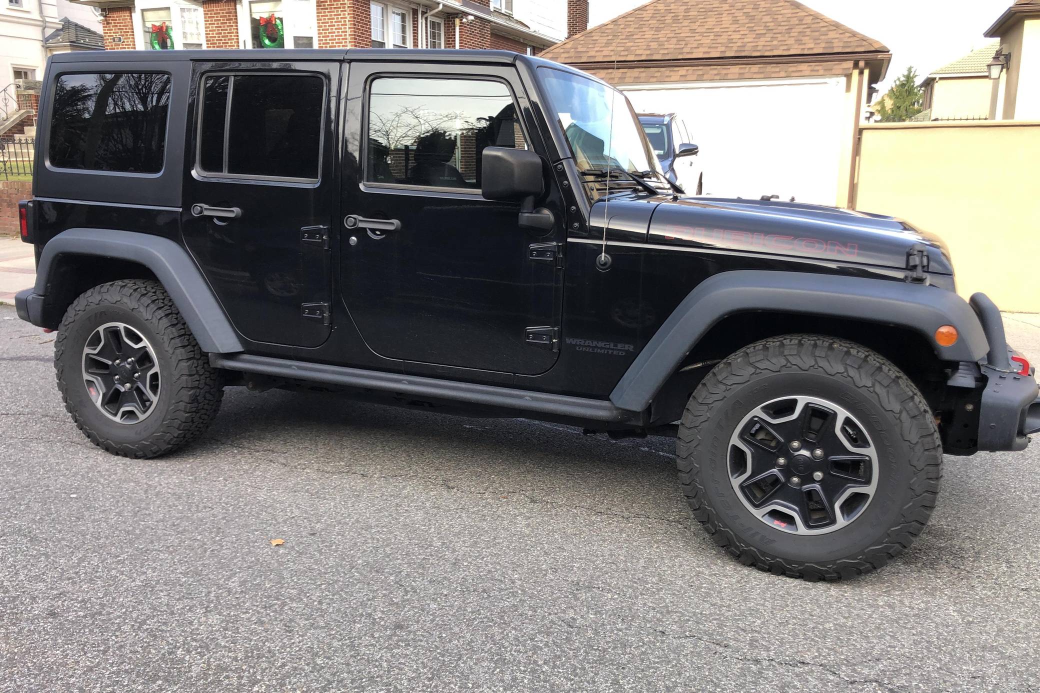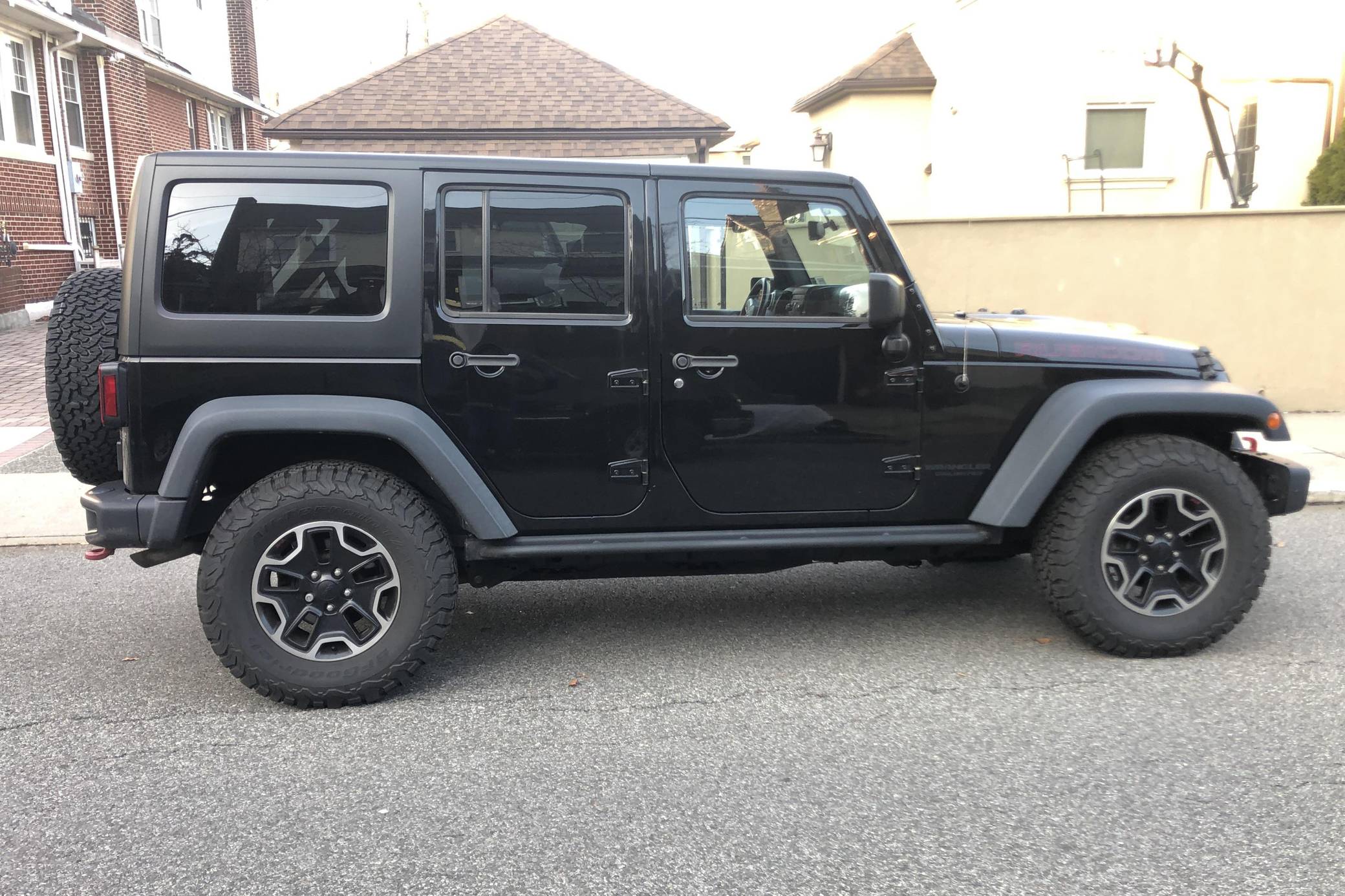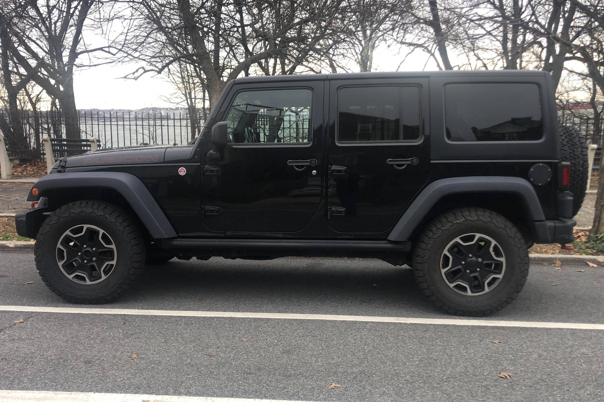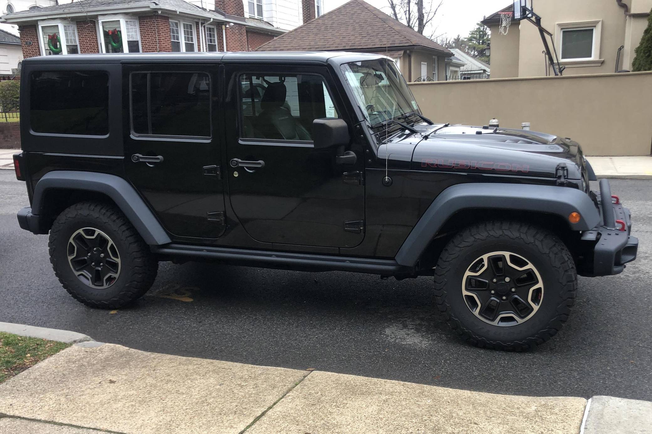 2015 Jeep Wrangler Unlimited Rubicon Hard Rock 4x4, finished in black with a black interior. The seller reports no modifications. The "JK"-generation Wrangler was introduced for the 2007 model year, and a 2011 update came with a newly redesigned dash — but it wasn't until 2012 with the introduction of the 3. 6-liter V6 that the model received ample power. The four-door Unlimited version provides seating for five while retaining the model's rugged off-road capabilities. Power comes from a 3. 6-liter "Pentastar" V6, rated at 285 horsepower and 260 lb-ft of torque. It spins the rear or all 4 wheels via a 5-speed automatic transmission and a 2-speed transfer case.