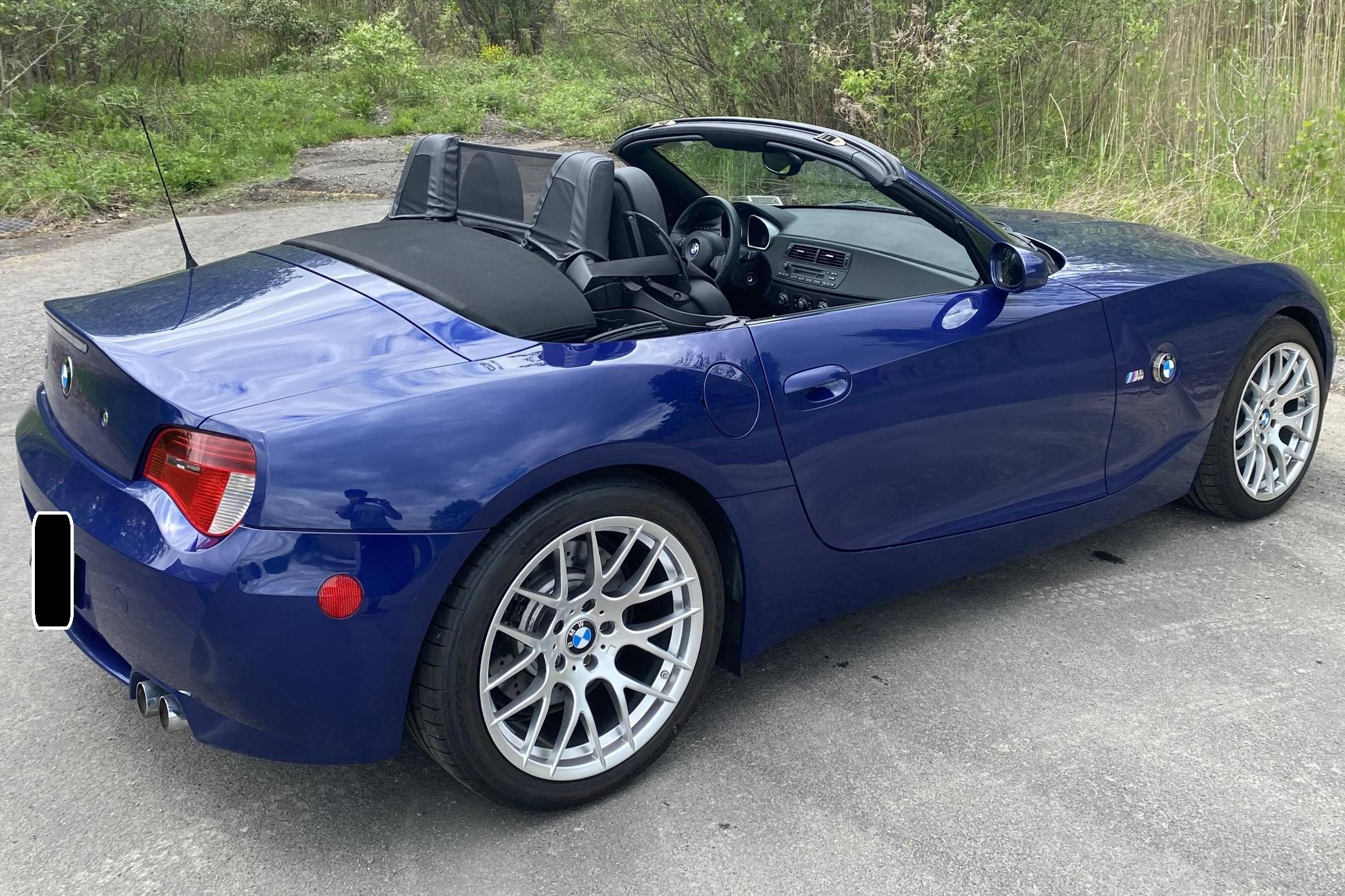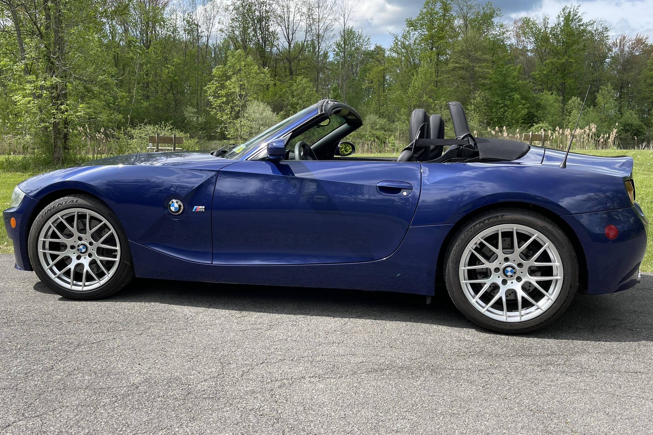 THIS. . . is a 2008 BMW Z4 M Roadster, finished in Interlagos Blue Metallic with a black soft top and a black leather interior. This Z4 M's odometer indicates approximately 16,500 miles. Factory equipment on this Z4 M Roadster includes a 6-speed manual transmission, xenon headlights, Nappa leather upholstery, heated and power-adjustable sport seats, automatic climate control, and more as detailed below. The sole modification reported by the seller is a set of 18-inch Avant Garde Style 359-style wheels. The first-generation Z4, called E85 internally, replaced the Z3 for the 2003 model year. It was one of the first BMW models styled under the guidance of Chris Bangle, and shared no styling cues with its predecessor. At the top of the line was the M Roadster, which used the 3. 2-liter engine from the M3, with double-VANOS variable valve timing. Power comes from a 3. 2-liter "S54" inline-6 engine, rated at 330 horsepower and 262 lb-ft of torque. Output is sent to the rear wheels via a 6-speed manual transmission.