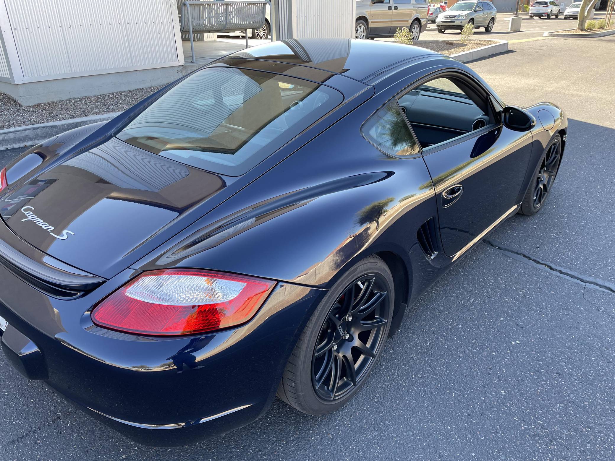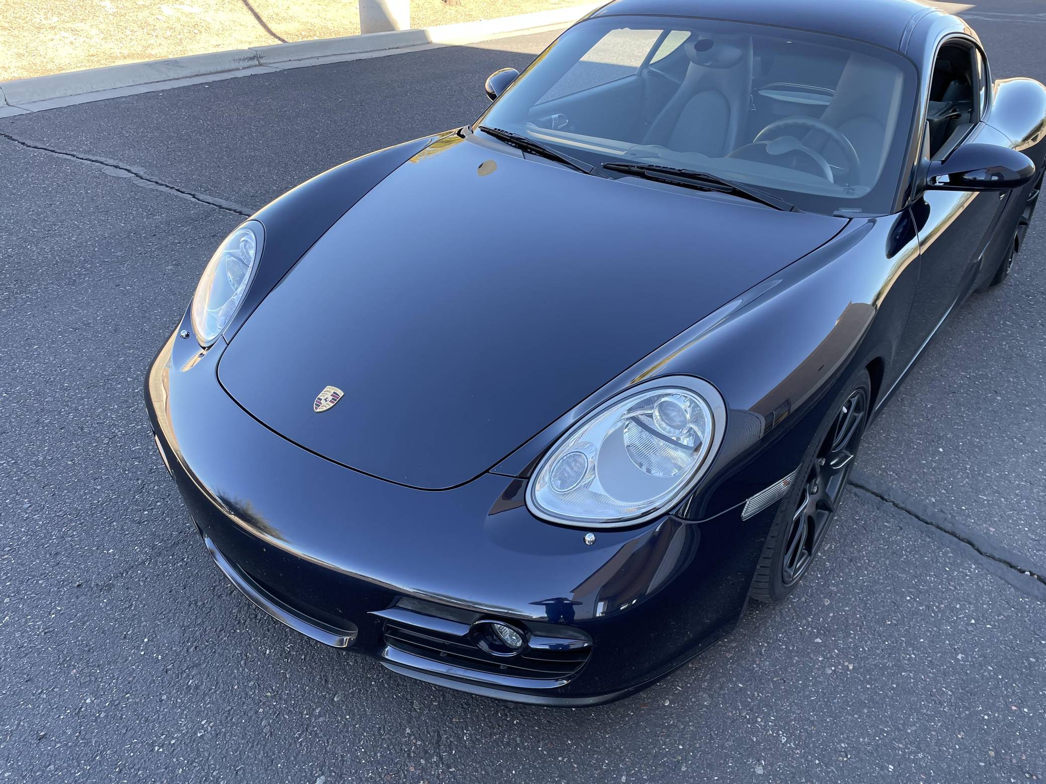 2006 Porsche Cayman S, finished in Midnight Blue Metallic with a Stone Grey interior. This Cayman S is equipped with the desirable 6-speed manual transmission, and its odometer currently displays about 61,900 miles. Equipment includes the Preferred Package Plus, bi-xenon headlights, leather upholstery, heated seats, a Bose sound system, and more as detailed below. Modifications reported by the seller include Apex SM-10 wheels, Bilstein PSS9 coilovers, a muffler bypass with a custom X-pipe, a 997 GT3 RS shift boot, Rennline shift knob, and an Alpine head unit. Porsche introduced the Cayman for 2006, and it immediately threw the automaker's entire hierarchy into question. Taking the Boxster's compact mid-engine layout and adding a fixed roof to the chassis made the 987 Cayman the most balanced Porsche available, and engineers were forced to keep engine output low enough to not threaten the 911 Carrera's dominance. Power comes from a 3. 4-liter flat-6, rated at 295 horsepower and 252 lb-ft of torque. Output is sent to the rear wheels via a 6-speed manual transmission.