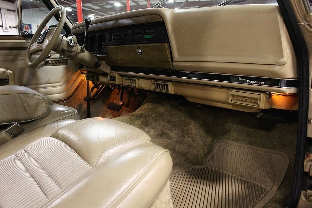 The Grand Wagoneer was the first luxury 4x4, sold and produced from 1963 through 1991. The first “SUV” before the term was even coined, the wagoner saw only minor mechanical changes during its 28-year production run, the third longest in U.S. automotive history. Although, the vehicle was built on a truck chassis and had a boxy design, it was more carlike than any other 4x4 on the market. The Wagoneer was much more luxurious compared to the offerings by GM and International Harvester. With all of these Grand Wagoneer's becoming very popular, the best of the best are the Chrysler owned 1987-1991 models. These are the trucks that had the most refinement, best colors and upgrades. This Sand Metallic over beige leather Grand Wagoneer offered here comes out of Virginia and was brought to Michigan only 4 years ago. We have extensive receipts showing the care this Jeep has had. Over $5,000 was spent making this Jeep highly original and also making sure everything works right now to the rear electric window. The body on this Jeep is not and has never been rusty. Beautiful wood grain, all bright work is in outstanding condition and the paint is a gorgeous 9 out of 10. New 2inch leaf springs were installed to correct the common “saggy spring” issue that all these Wagonee's have. New dash was installed, New AC unit, all new window swipes, new headliner, all new tires and the motor and transmission were pulled, serviced and completely re-sealed. The list goes on and on as to the care and maintenance this truck has received. You will not find another one nicer or well sorted at this price point.