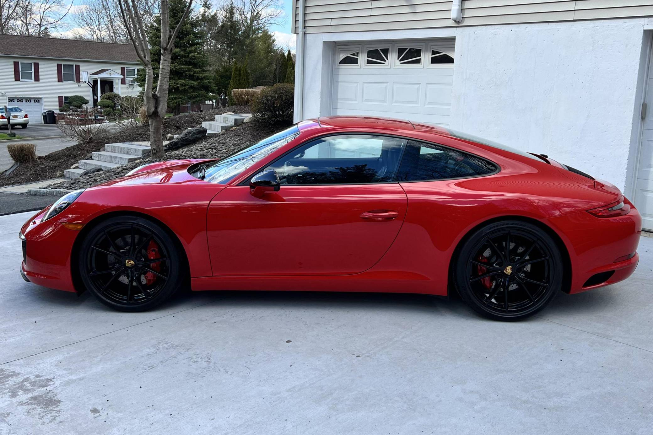 2017 Porsche 911 Carrera S Endurance Racing Edition, finished in Guards Red with a black interior. The odometer displays approximately 2,900 miles. Factory equipment includes the Endurance Racing Edition, Sport, and Premium Plus Packages, 20-inch Carrera S Wheels, Porsche Dynamic Chassis Control, a sunroof, leather upholstery, 14-way power-adjustable sport seats with memory function, carbon fiber interior trim, and a Bose surround sound system, among others listed below. The sole modification reported by the seller is paint protection film. Porsche introduced the 991-generation 911 for the 2012 model year. It arrived as an evolution of its predecessor, the 997, and received more powerful engines across the board and a more luxurious interior. 2017 brought a significant change; Porsche turbocharged its previous non-Turbo variants, including the base Carrera, for the first time in the name of fuel efficiency. Production of the 991 ended in 2019. The Endurance Racing Edition was built by Porsche Exclusive to celebrate three consecutive overall victories by the Porsche 919 Hybrid at the 24 Hours of Le Mans from 2015 to 2017. The Endurance Racing Edition 911 Carrera S could only be had in White, Guards Red, or Black. Power comes from a 3. 0-liter twin-turbocharged flat-6, rated at 420 horsepower and 368 lb-ft of torque. Output is sent to the rear wheels via a 7-speed Porsche Doppelkupplung (PDK) automatic transmission.