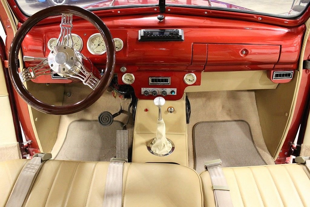 Fords for 1941 were completely redesigned with a much more modern wide body that nearly covered the running boards. The front & rear fenders were still pronounced, but much more integrated to the body. Ford was very proud of the redesign and sales responded, but production was interrupted quickly by WWII . Production would not be able to be restarted until 1946 making these body styles not as readily available. The “full classic” looks of these coupes are popular show cars today and highly sought after by custom hot rod builders taking advantage of the cool body style. This '41 Ford Coupe is a custom build that retains the great looks of the classic with many cool upgrades offered by modern technology. It's powered by a 6.0L LS2 V8 engine paired with a 4L60E automatic transmission. This really cool build was completed just 5 years ago and includes a 3.73 posi rear end, Fatman front end, tri-link 4-bar kit, Lokar shifter, leather seats, Mini Cooper headlights, '59 Cadillac taillights, air conditioning, power steering, dolphin gauges, Pioneer CD player, power front disc brakes, and more. This is a powerful street rod that will get up to speed in a hurry where ever you want to go. Go in style and have some fun with this build with low miles.