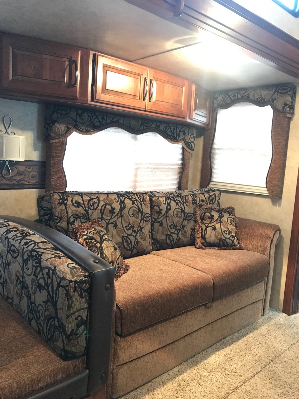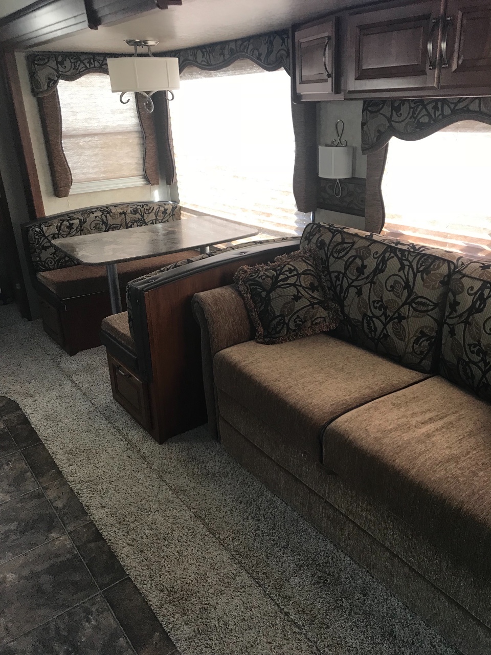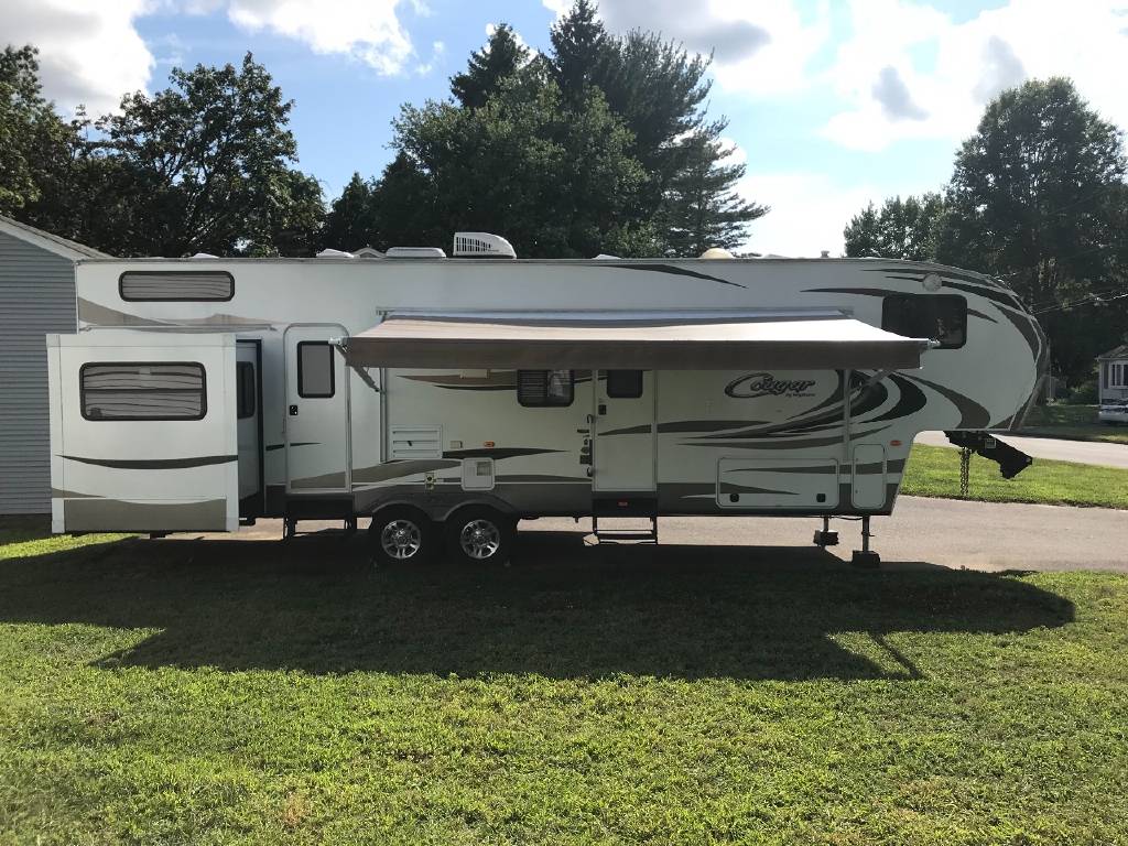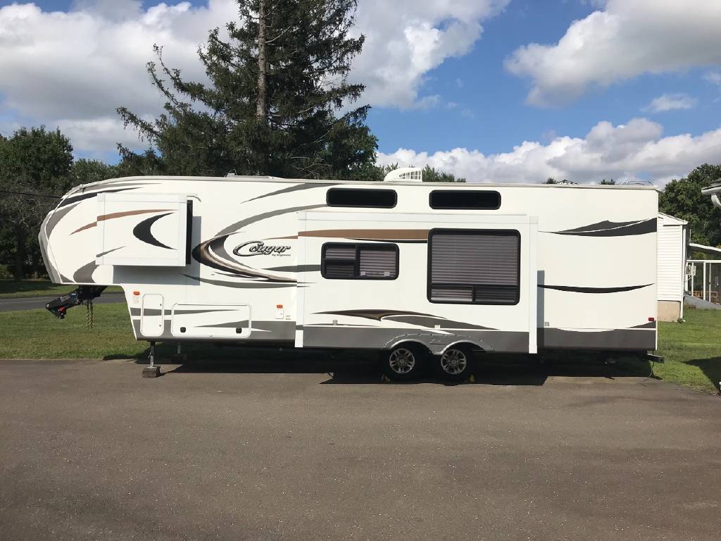 High ceilings and abundance of natural lighting highlight this Best In Class 2014 Keystone Cougar 324RLB 5th wheel ready to go camping! Original Owner, Pristine Condition, only used 5 weekends. 3 slides, 1.5 baths. Master Bedroom with Queen Bed, Nightstand, Closet and Slide Out Wardrobe, 19" tv, and plenty of storage. Second Bedroom Suite/Children’s Room with Private Entrance to the half bathroom with Porcelain Toilet and Sink. The suite includes a 32" TV/DVD Player, Sleeper Sofa with Queen Orthopedic Sleep System, Removable Table, Wardrobe, Stairs to Loft with King Size Bed. Main Living Area has 36" TV with TV Signal Booster for all 3 TV's and Stereo with CD/DVD Player, Booth Dinette and Sofa Slide-Out with Queen Orthopedic Sleep System, Refrigerator, 3 Burner Range, Oven, Microwave, Double Stainless Steel Kitchen Sink, Closet, and Pantry. Step Up to Side Aisle Bath with Neo-Angle Shower, Porcelain Toilet & Sink, Corner Linen Cabinet in Hall, Double Bath Entry. Polar Package Plus, Cougar Package, Convenience Package, Value Package, Camping in Style Package, 50 AMP Electric Service w/ Detachable Cord, Cougar Remote, Aluminum Wheels, Slide-Out Bike/Storage Rack, 15.0 BTU Ducted Air Conditioner, RVIA Seal.