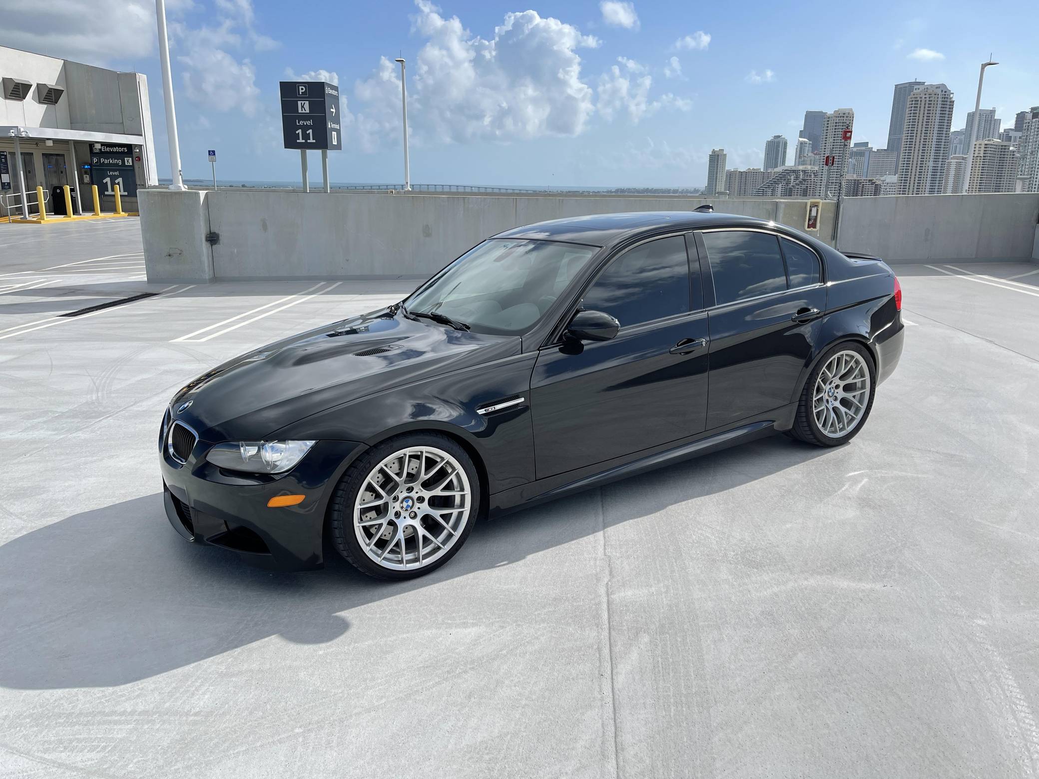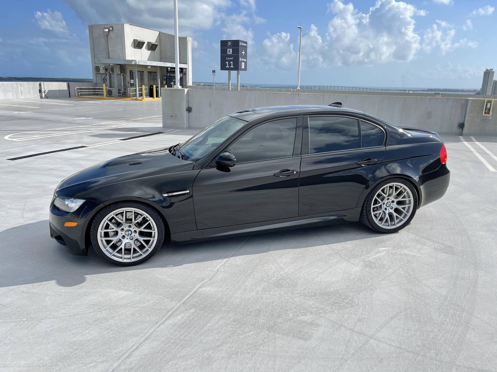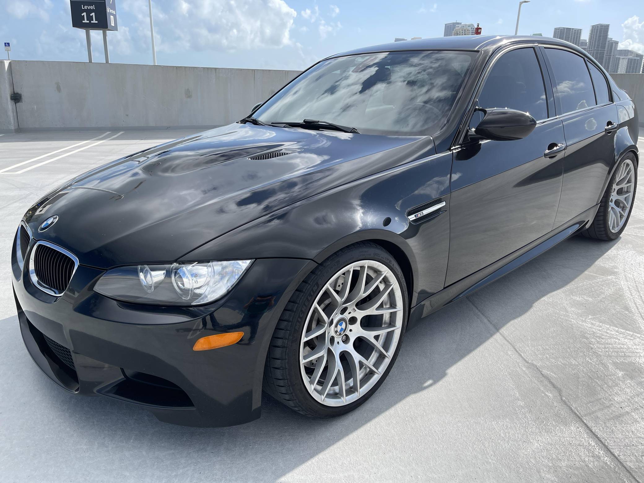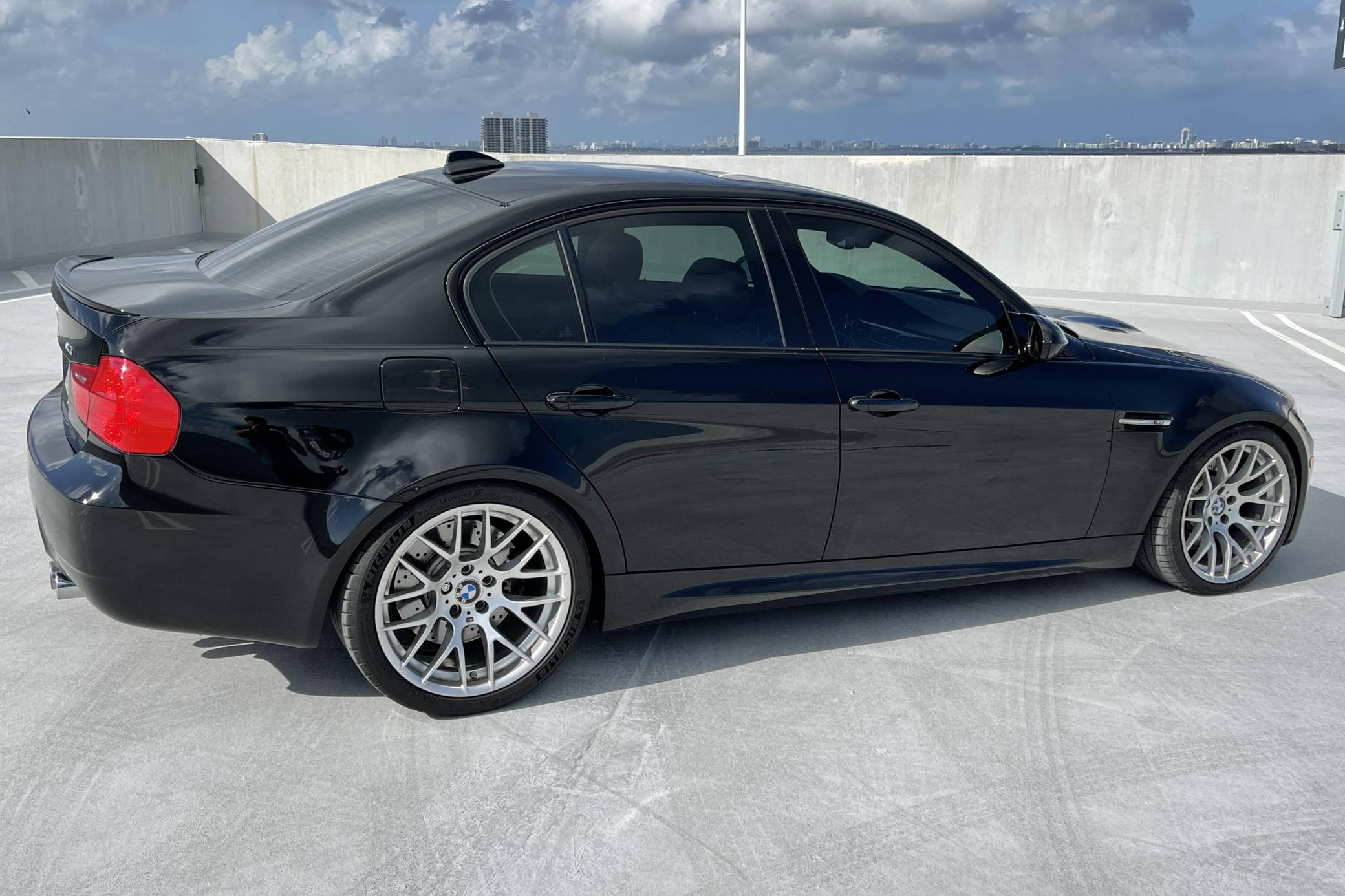 2010 BMW M3 Sedan, finished in Jet Black with a beige interior. This M3 is equipped with the desirable 6-speed manual transmission. According to the Monroney Label pictured in the gallery, this M3 had an original MSRP of $68,630, and it came equipped with the Premium and Technology packages, adaptive xenon headlights, a power-operated sunroof, Novillo leather upholstery, power-adjustable front seats with driver's side memory function, dual-zone automatic climate control, and more as listed below. Modifications reported by the seller include 19-inch Style 359M wheels, a Carsara Apple CarPlay module, four-pipe exhaust modification, H&R Sport springs, an F10 M5-style shift knob, LUX "angel eye" lights, and a Turner Motorsport skid plate. BMW engineers had to balance horsepower and weight as they developed the first and only M3 equipped with a V8 engine. Released for 2008, and based on the E90-generation 3 Series, it won over skeptical enthusiasts by offering performance that approached supercar levels in a practical, daily-drivable, and relatively subtle package. Sedan, coupe, and convertible variants were offered. Power comes from an “S65” 4. 0-liter V8, rated at 414 horsepower and 295 lb-ft of torque. Output is sent to the rear wheels via a 6-speed manual transmission.