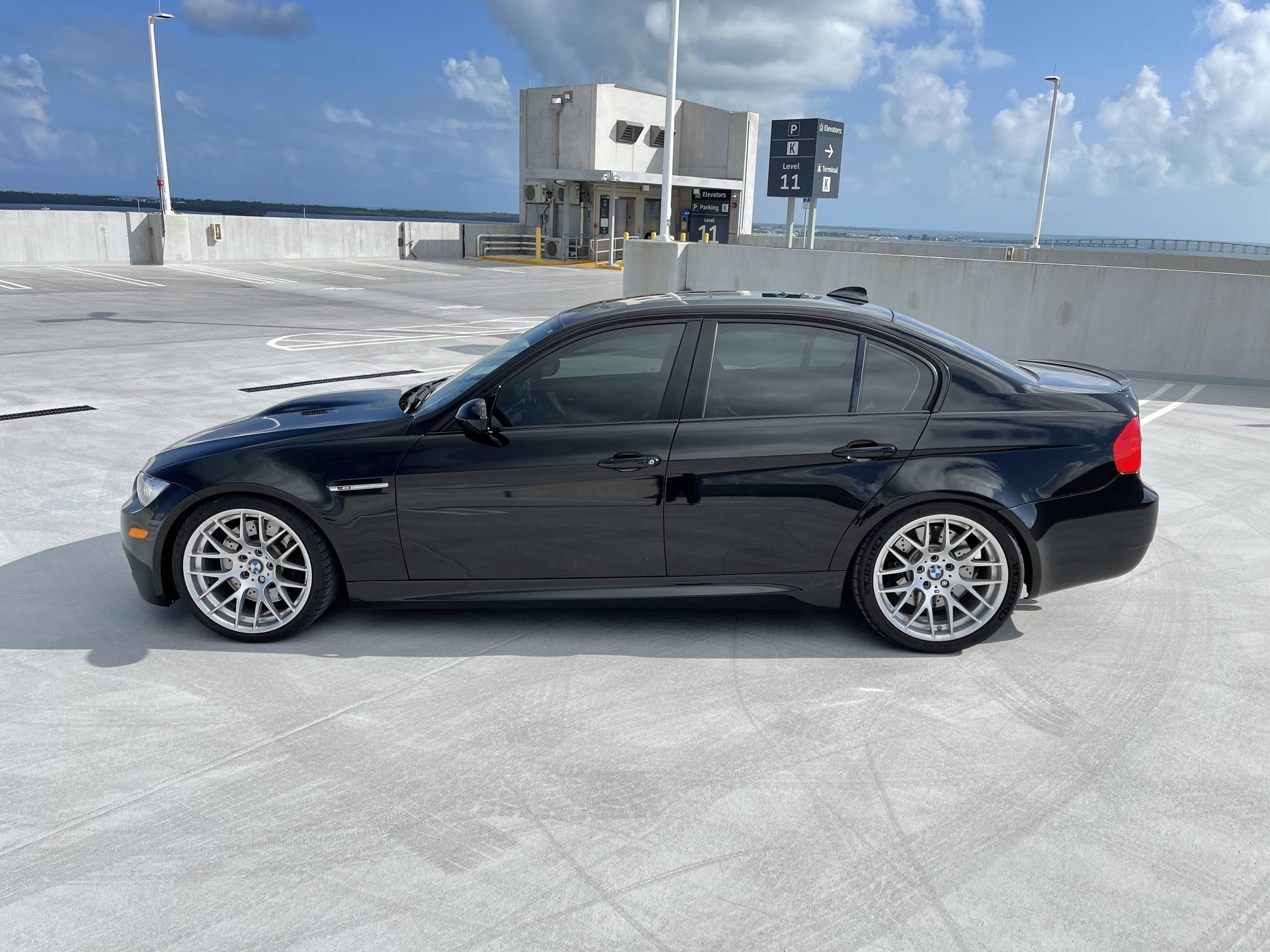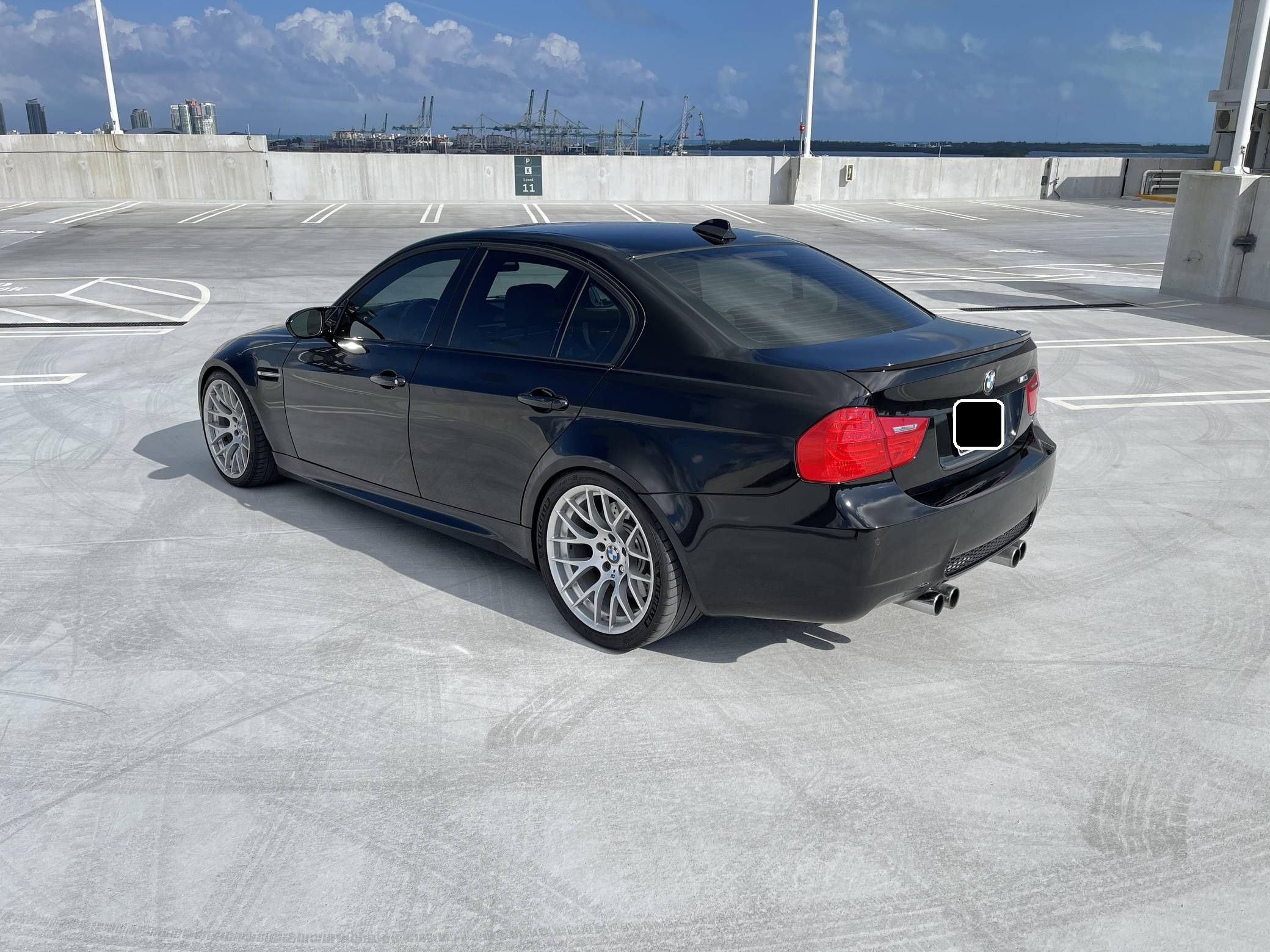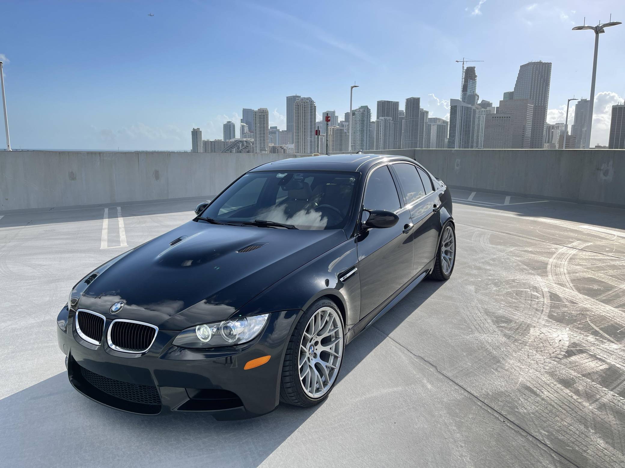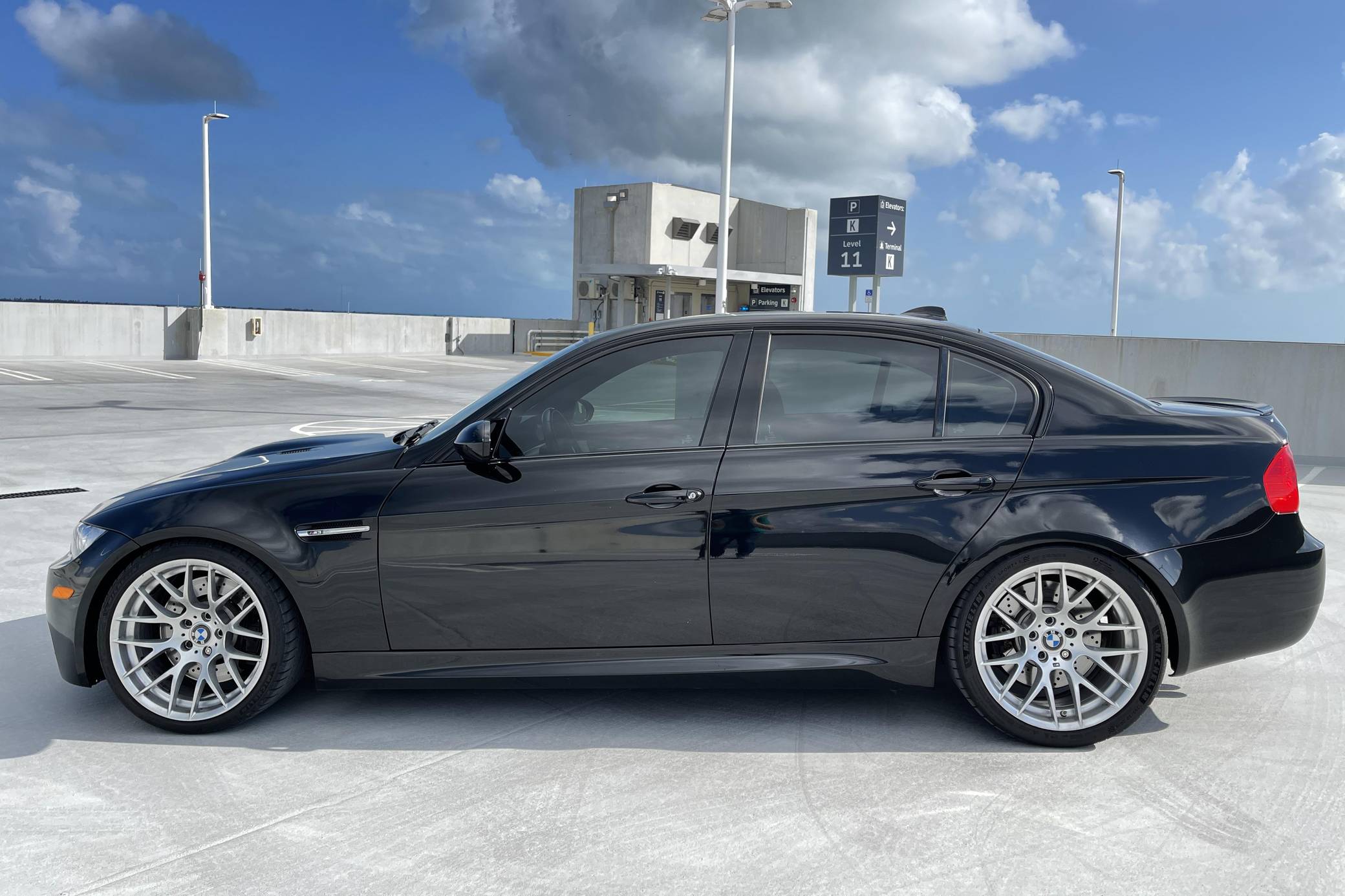 2010 BMW M3 Sedan, finished in Jet Black with a beige interior. This M3 is equipped with the desirable 6-speed manual transmission. According to the Monroney Label pictured in the gallery, this M3 had an original MSRP of $68,630, and it came equipped with the Premium and Technology packages, adaptive xenon headlights, a power-operated sunroof, Novillo leather upholstery, power-adjustable front seats with driver's side memory function, dual-zone automatic climate control, and more as listed below. Modifications reported by the seller include 19-inch Style 359M wheels, a Carsara Apple CarPlay module, four-pipe exhaust modification, H&R Sport springs, an F10 M5-style shift knob, LUX "angel eye" lights, and a Turner Motorsport skid plate. BMW engineers had to balance horsepower and weight as they developed the first and only M3 equipped with a V8 engine. Released for 2008, and based on the E90-generation 3 Series, it won over skeptical enthusiasts by offering performance that approached supercar levels in a practical, daily-drivable, and relatively subtle package. Sedan, coupe, and convertible variants were offered. Power comes from an “S65” 4. 0-liter V8, rated at 414 horsepower and 295 lb-ft of torque. Output is sent to the rear wheels via a 6-speed manual transmission.