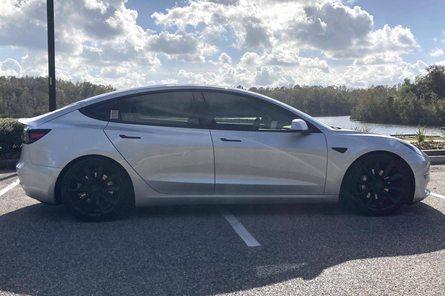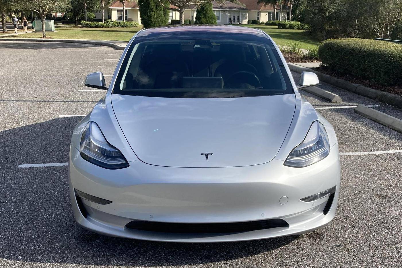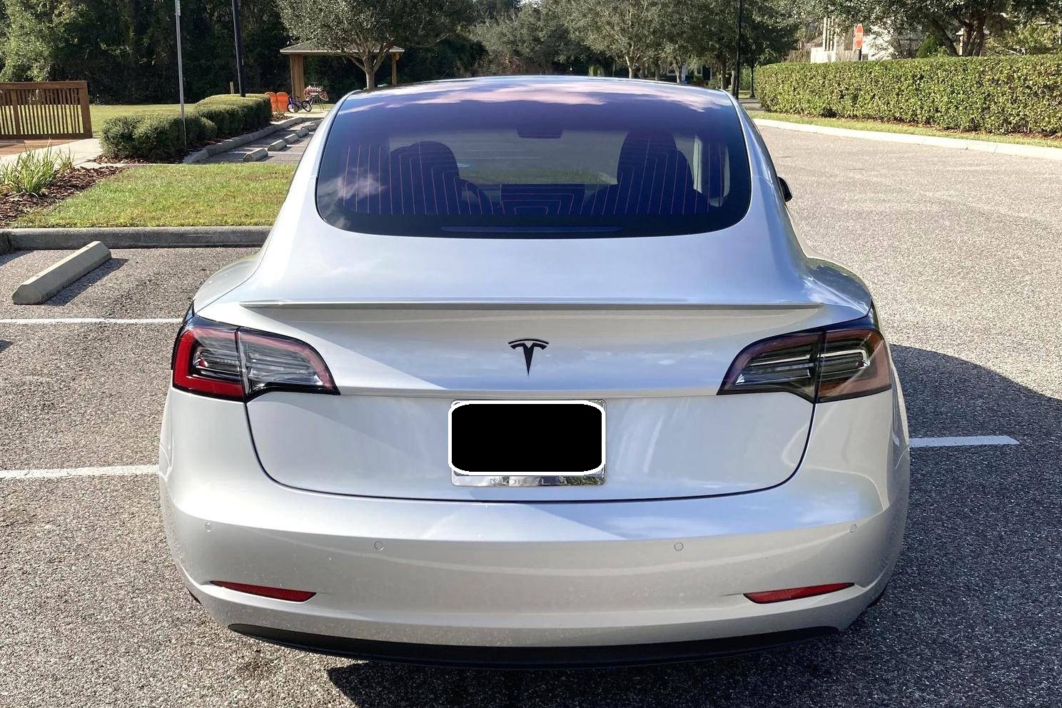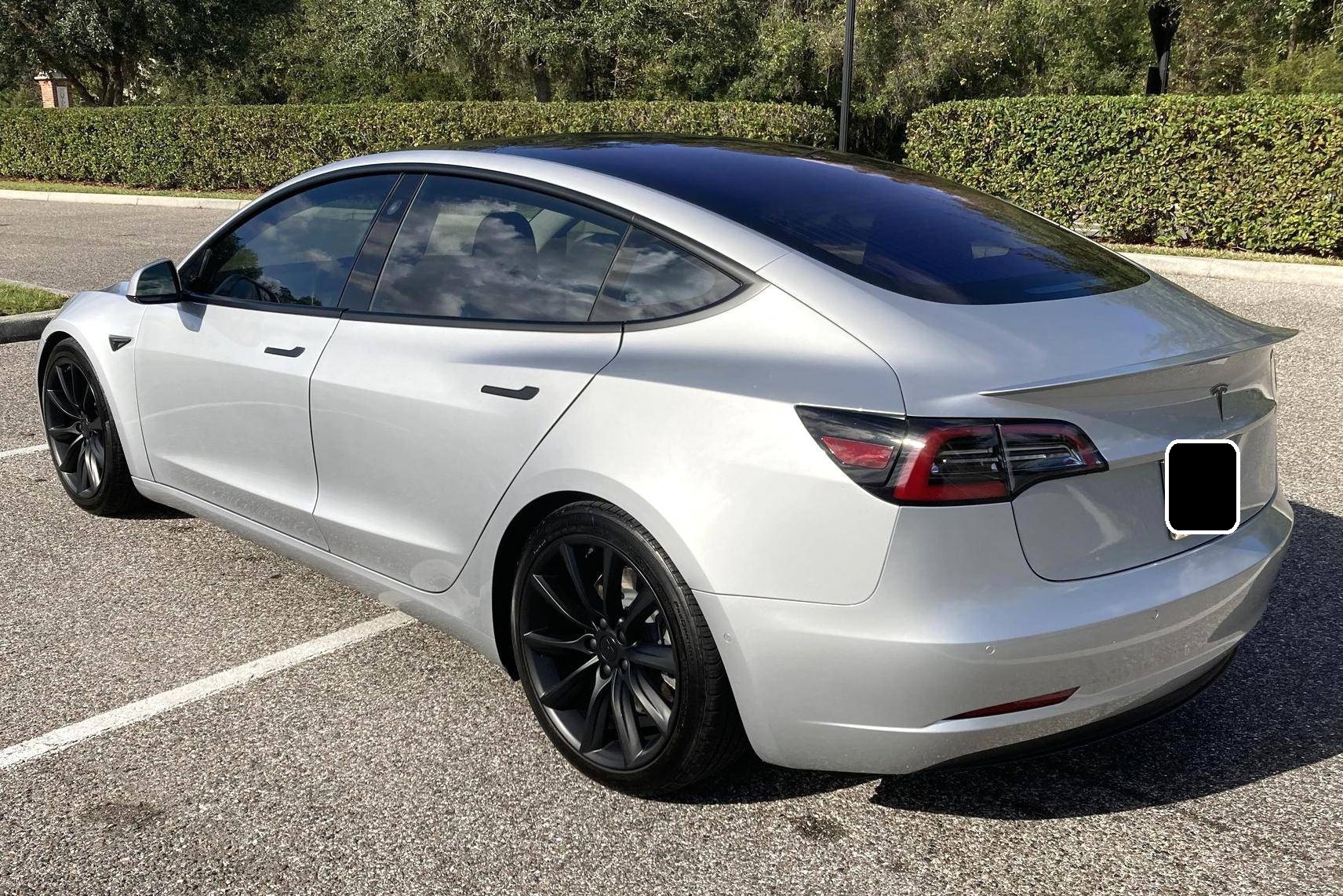 2017 Tesla Model 3 Long Range RWD, finished in Silver Metallic with a black interior. Equipped with a drive inverter with regenerative braking system, LED exterior lighting, heated and power-adjustable front seats, dual-zone automatic climate control, a 15-inch touchscreen, Bluetooth connectivity, and more as detailed below. Modifications reported by the seller include a set of 19-inch Tsportline wheels, Unplugged Performance mild lowering springs, a rear lip spoiler, black-wrapped exterior trim, Alcantara interior trim, an upgraded rear seat bottom cushion, and a window tint. This Tesla carried an EPA-estimated electric driving range of 310 miles when new. It's a rear-wheel drive Long Range model, a variant that the company no longer sells. At launch, the Model 3 was presented as a premium EV with a usable driving range and respectable performance, all at a reasonably attainable price. It was Tesla's entry-level car. It's still available today, and it has gone through several evolutions (including many software updates) since its introduction. Power comes from a single, three-phase electric motor, rated at 271 horsepower and 307 lb-ft of torque. Connected to a 75-kWh lithium-ion battery pack, it powers the rear wheels through an automatic transmission.