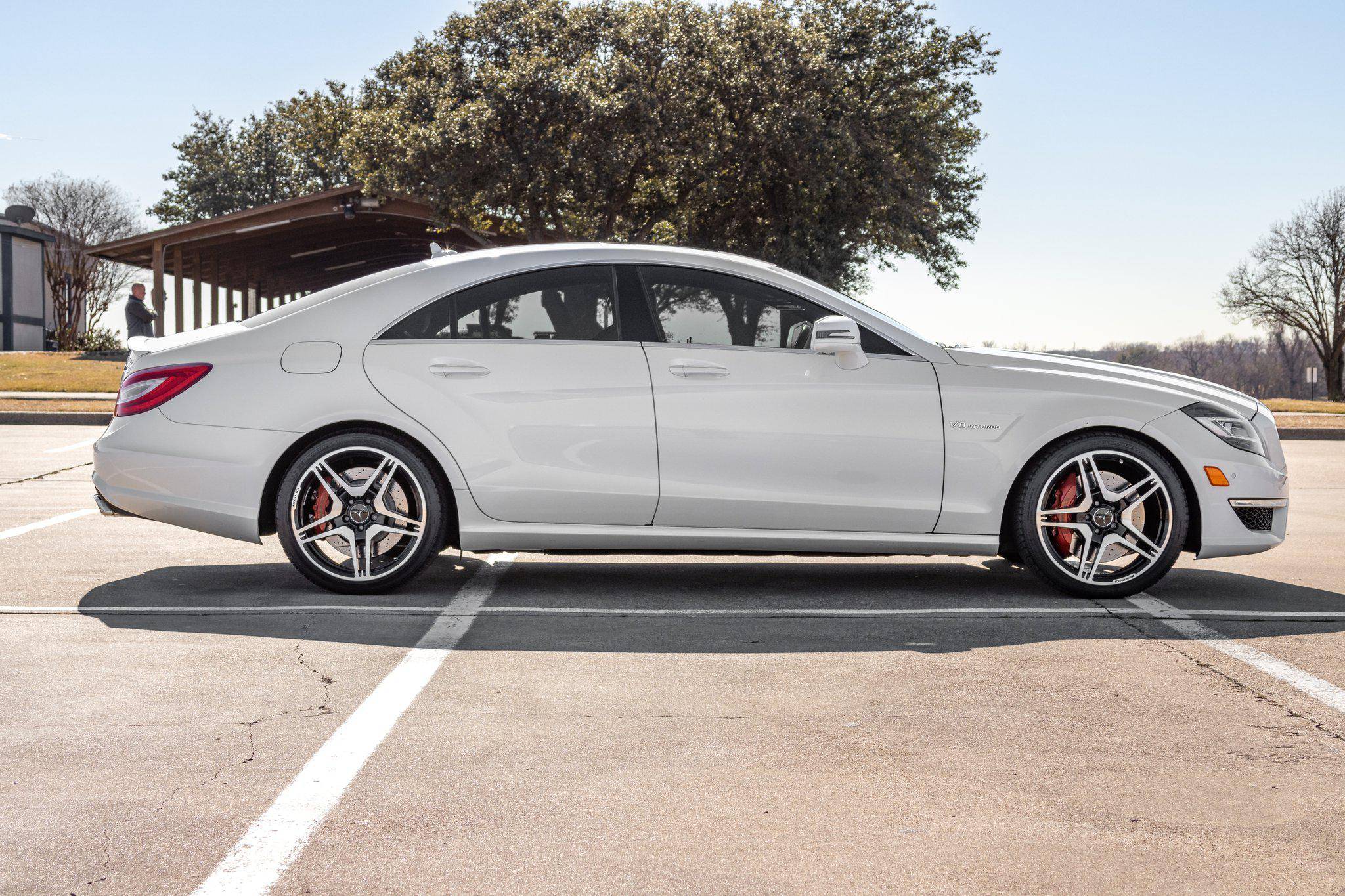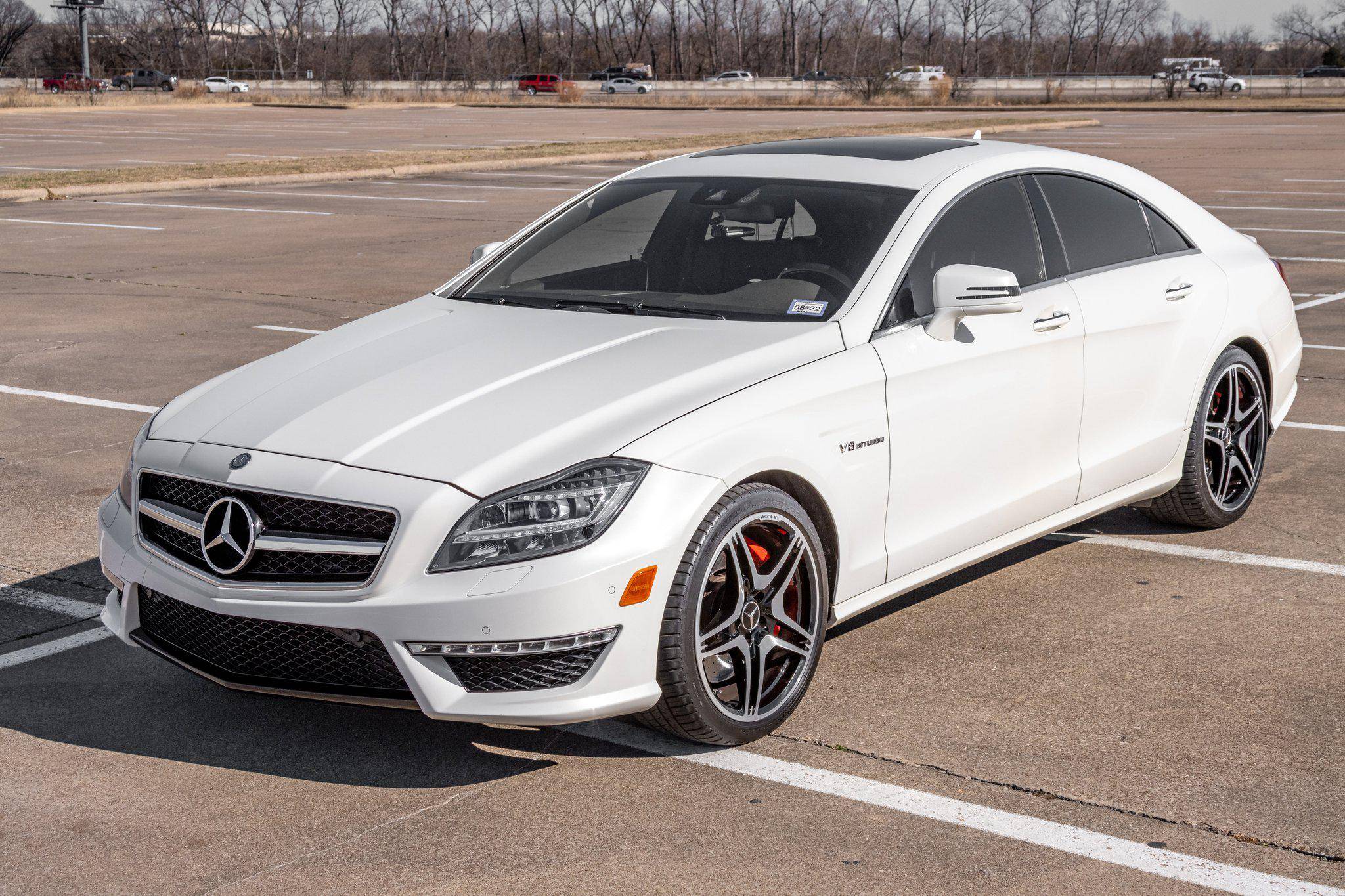 THIS. . . is a 2012 Mercedes-Benz CLS63 AMG, finished in Diamond White with a black interior. A partial list of notable equipment includes the Premium Package, AMG Performance Package, Lane Tracking Package, 19-inch AMG twin 5-spoke wheels, an AMG sport exhaust system, carbon fiber trim, a 14-speaker Harman/Kardon sound system, 14-way power adjustable AMG sport seats, and more detailed below. Modifications are limited to tinted windows and blind spot mirrors on the exterior mirrors. Positioned as the style icon of the Mercedes-Benz range, the second-generation CLS (called "C218" internally) went on sale for the 2012 model year. It was closely related to the E-Class underneath its swoopy sheet metal and it remained competitive in the face of a growing number of rivals by offering more power, new tech features, and more space than its predecessor. Production ended in 2018. Power comes from a 5. 5-liter twin-turbocharged V8, rated at 550 horsepower and 590 lb-ft of torque. Called "M157" internally, the engine spins the rear wheels via a 7-speed automatic transmission linked to steering wheel-mounted shift paddles.