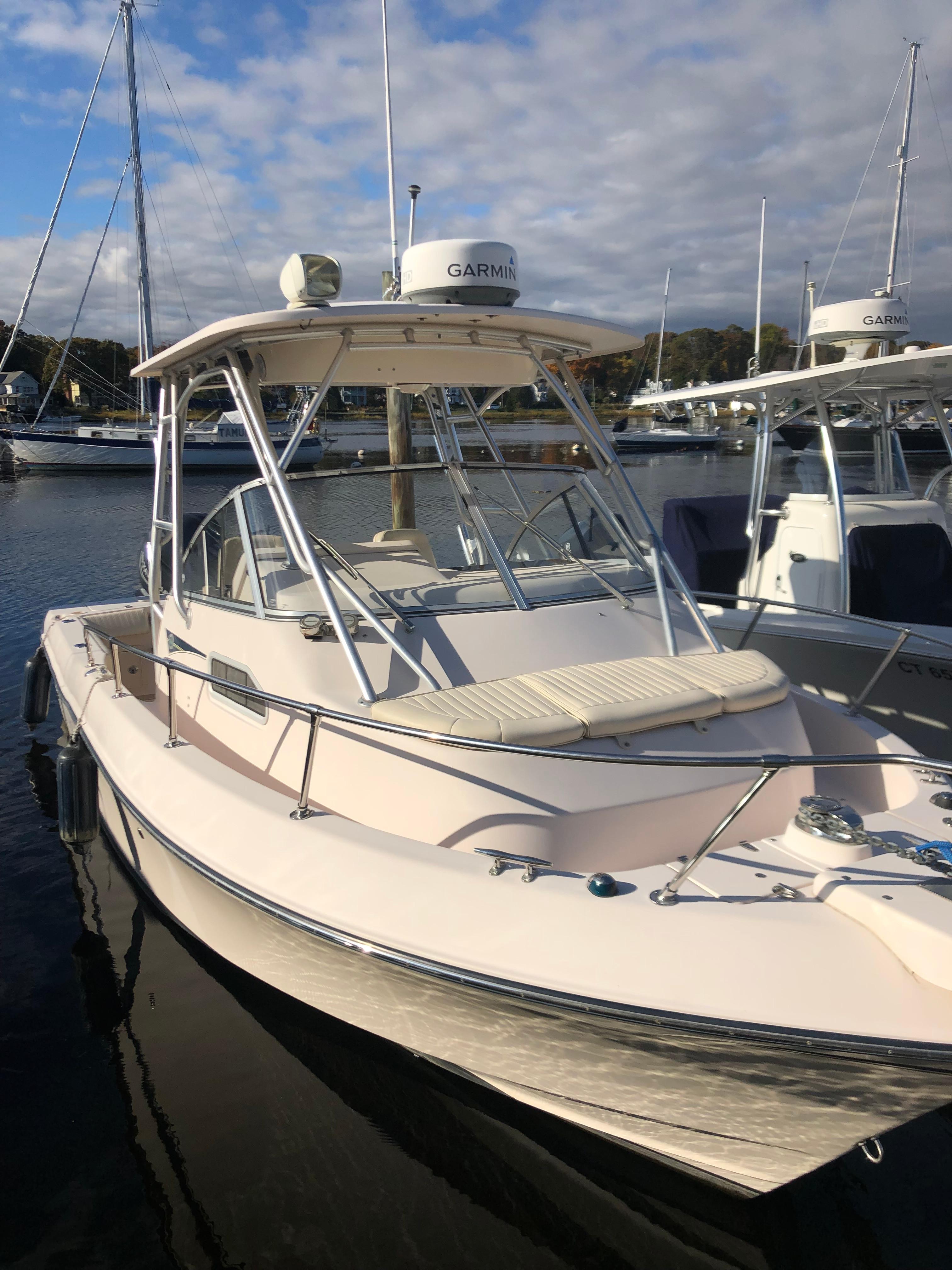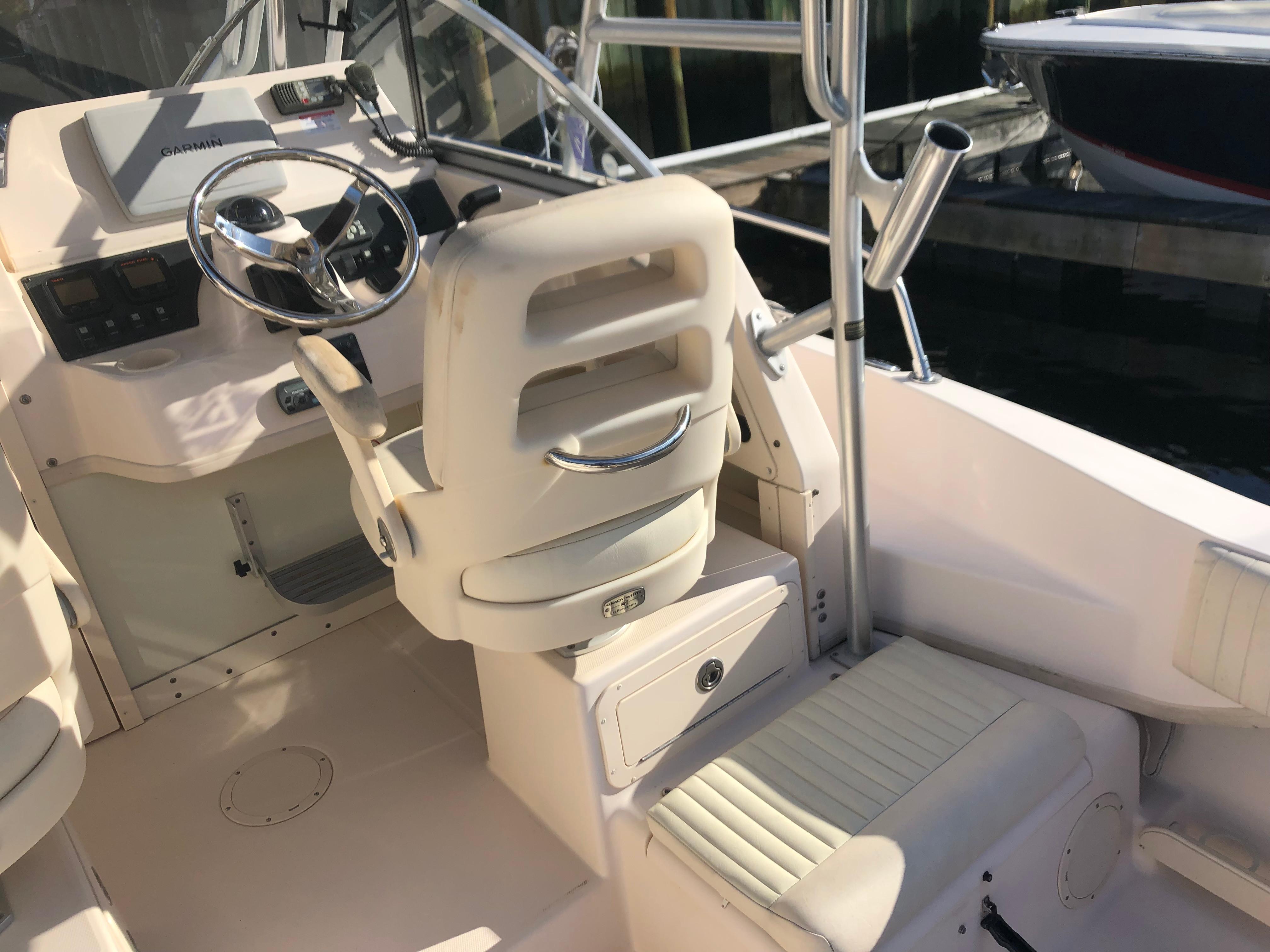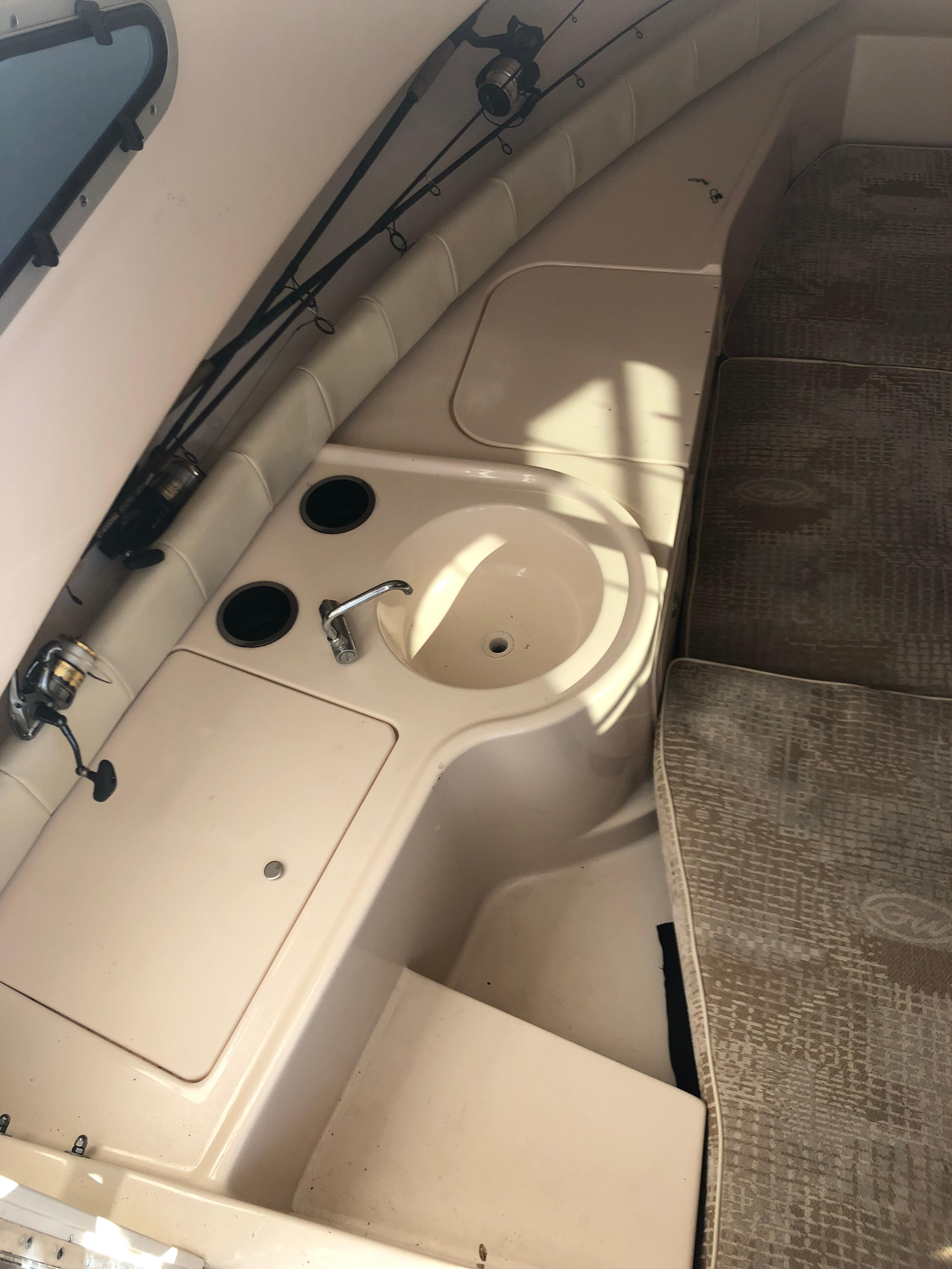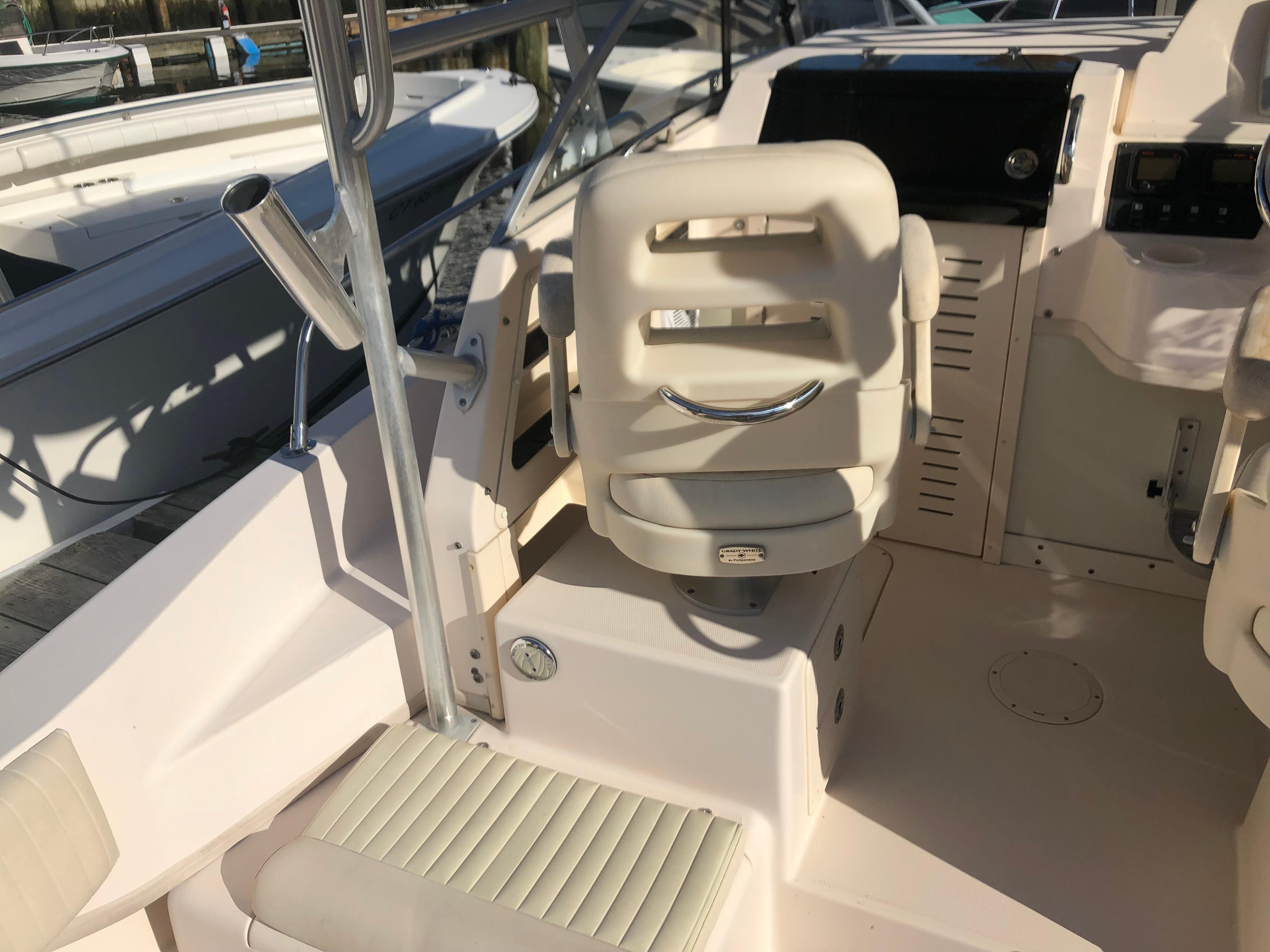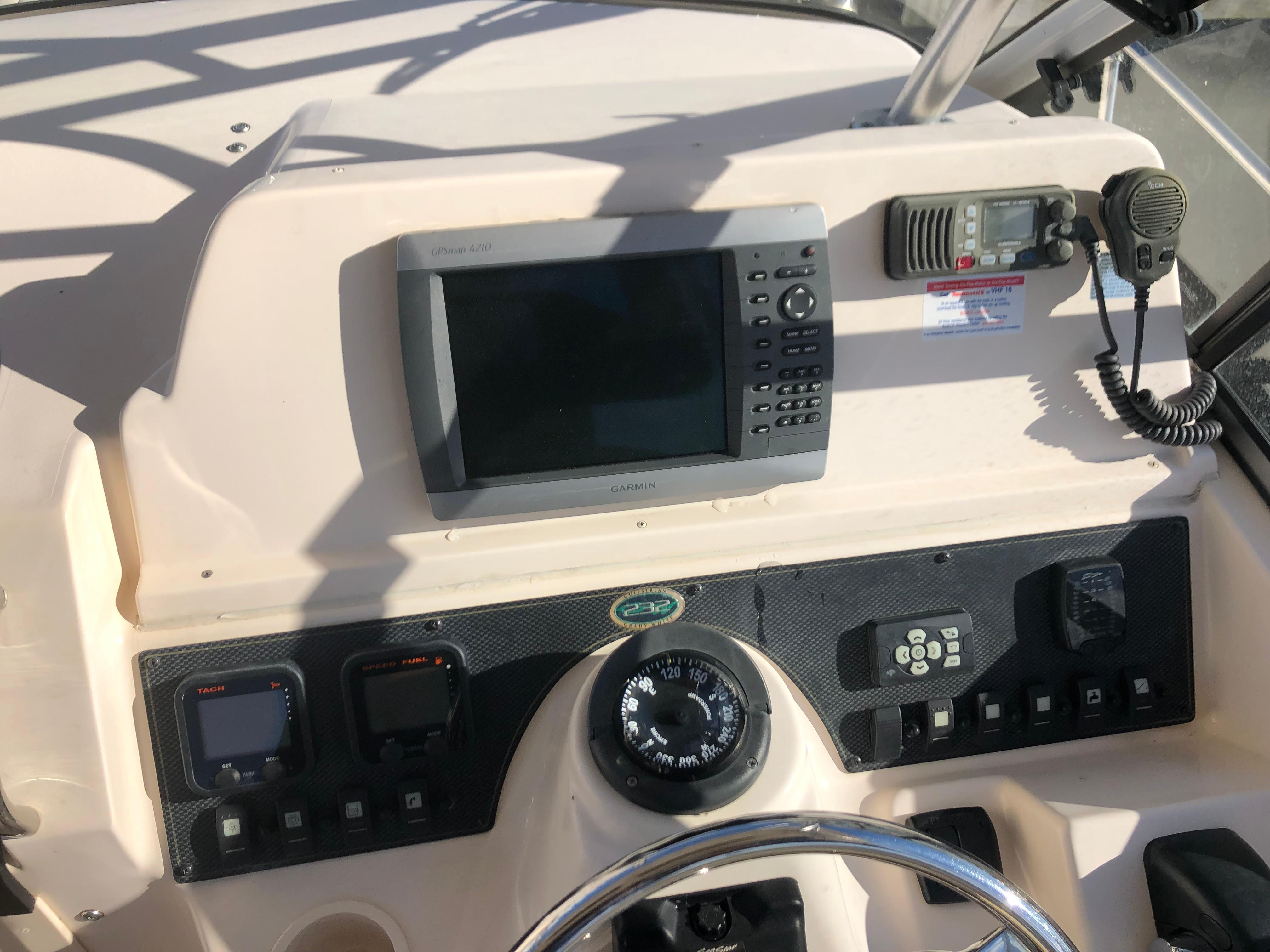 Hardtop with rod holders, Bow pulpit w/Lewmar anchor windlass, Garmin GPS/Plotter/Fishfinder/Radar, Garmin 18 HD Radar array, Kenwood radio, Hardtop mounted outrigger with bottom controls, Bennett trim tabs, Jabsco electric head with holding tank and macerator discharge, Forward deck cushions, Live well, Cockpit shower, Cockpit spreader lights, Windshield washer, Washdown system. Aluminum 3 axle stuffy trailer all mag wheels 6 disc breaks and all-electric powered breaks. 2 new batteries.