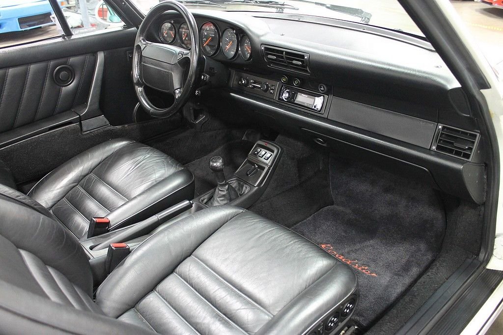The 1992 Porsche American Roadster offered here is a high quality, maintained. It came dressed in very attractive Grand Prix White exterior paint over black interior. Factory options include: Raff Leather seats, Passenger and Driver Comfort seats, Passenger and Driver Heated Seats. The car features its original 3.6 liter air cooled flat six engine mated to the proven G50 5 speed gear box. It features 38, 669 documented miles and remains in excellent condition to this day. The Raff leather interior remains in excellent original condition showing very minor and normal wear for age and usage. Our test drive revealed a well sorted and obviously maintained vehicle as the car performed flawlessly in all aspects of acceleration, shifting, handling and braking. The note of the upgraded exhaust adds to the motoring experience. The car is documented with original owners manual, stamped maintenance book, both option stickers, factory color sticker and service records. Production numbers matter when collecting cars and it is no secret that air cooled 911's have taken center stage in the investment car arena and are globally sought after. With only 250 American Roadsters ever produced, this car commands the attention of enthusiasts and collectors worldwide.