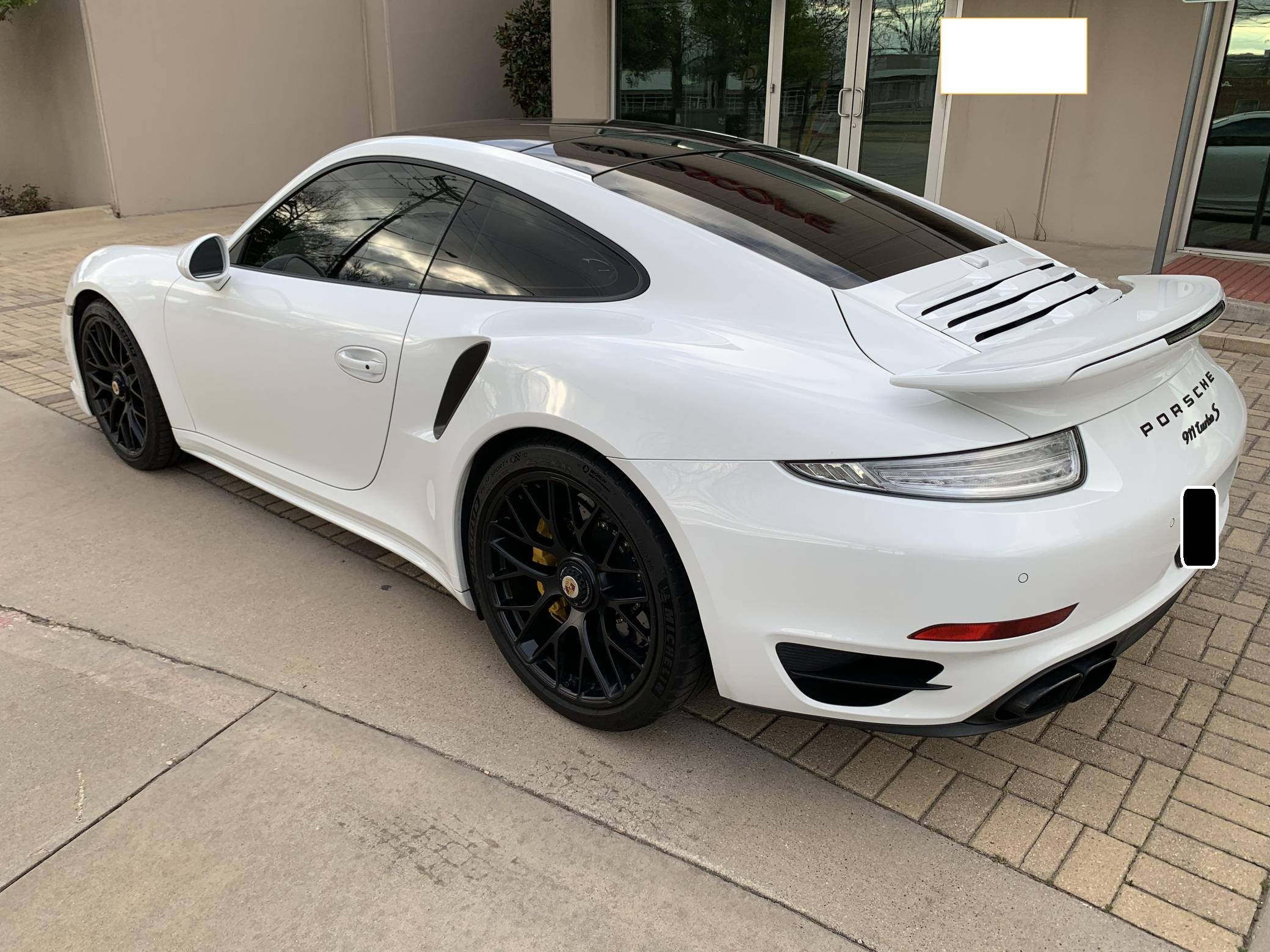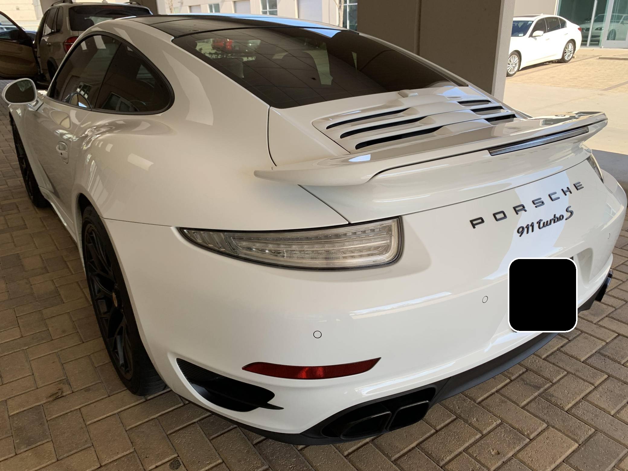THIS. . . is a 2015 Porsche 911 Turbo S, finished in white with a black and Platinum Grey interior. A partial list of notable equipment includes the Premium Package, Light Design Package, 20-inch Turbo S center-lock wheels, Porsche Dynamic Chassis Control, Porsche Active Suspension Management (PASM), heated seats, Power Steering Plus, and more detailed below. Modifications reported by the seller include a EUROPIPE Sport exhaust, Champion Motorsport intercoolers, a GIAC stage 2+ ECU tune, IPD intake plenum, and more listed below. The 991-generation Porsche 911 featured a longer wheelbase, and new transaxle which was developed to move the engine forward, allowing for better weight distribution and cornering performance. The top-of-the-line model Turbo S could sprint from 0-to-60 mph in just 2. 9 seconds, yet had everyday luxuries and all-wheel drive, making it a highly usable everyday sports car. Power comes from a 3. 8-liter twin-turbocharged flat-6 rated at 560 horsepower and 516 lb-ft of torque when left stock. Due to the modifications performed to this Turbo S, it may produce more power, but a dyno sheet was not provided to confirm. Output is sent to all four wheels through a 7-speed PDK dual-clutch automatic transmission.