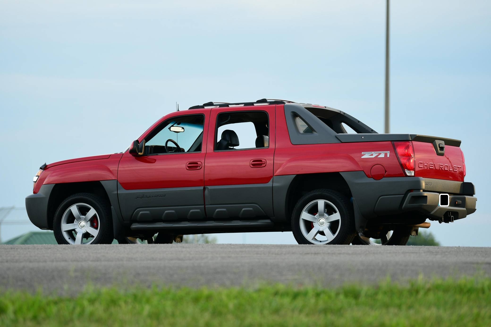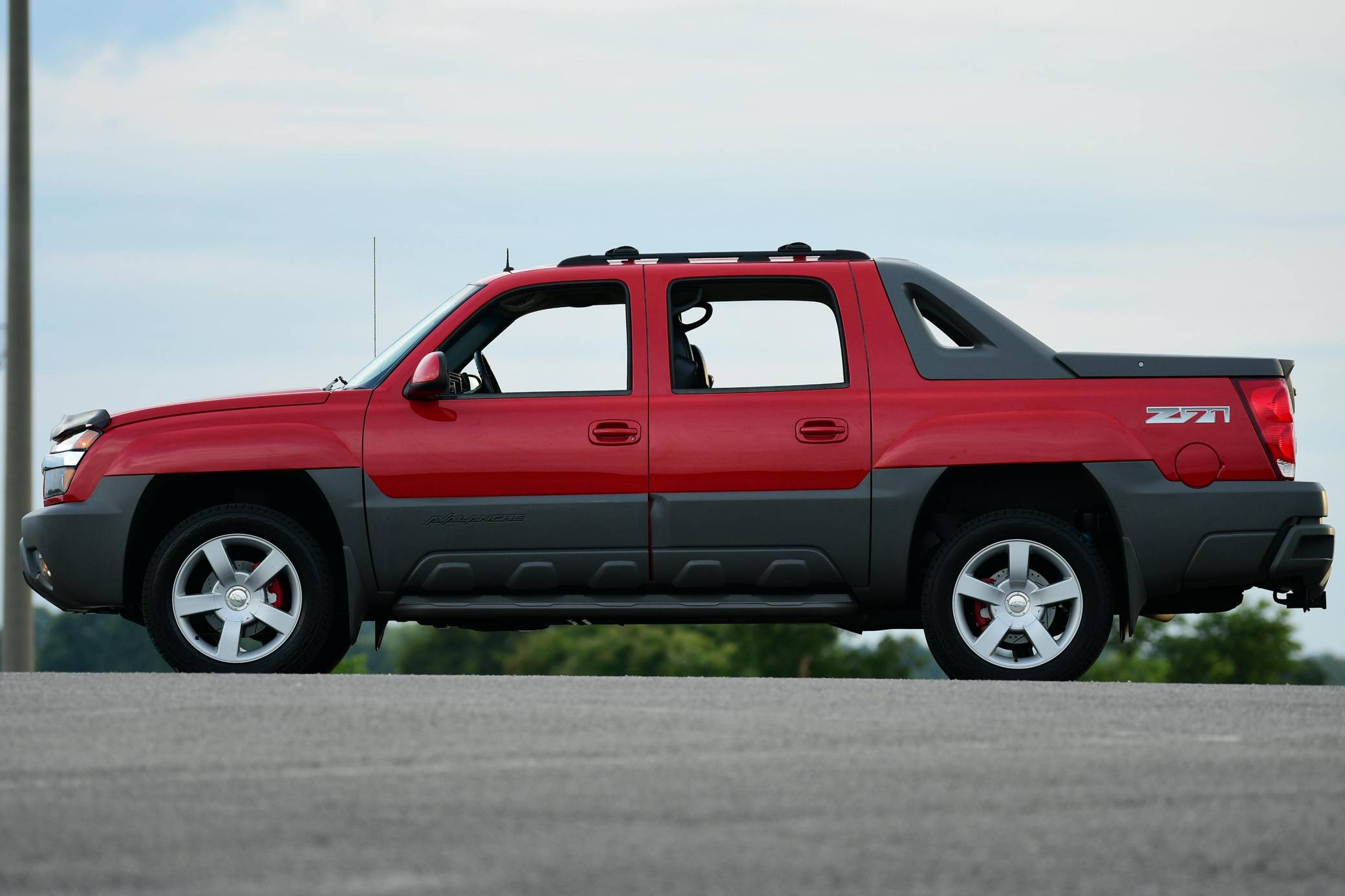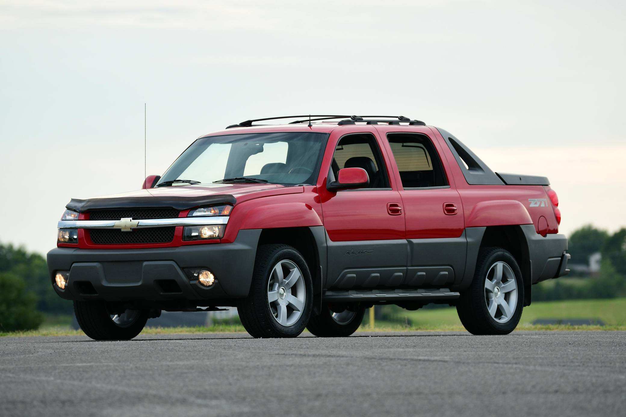 THIS… is a 2002 Chevrolet Avalanche 1500 4x4, finished in Victory Red with a Graphite interior. The odometer currently indicates approximately 65,600 miles. Modifications reported by the seller are limited to factory wheels, brake rotors, and brake calipers from a Chevrolet Silverado SS, a hood-mounted bug shield, and an AccuPower electronic trailer brake controller. The Avalanche was launched for the 2002 model year and filled the gap between GM trucks and SUVs. Built on the same GMT800 platform as the Suburban and Yukon XL, the Avalanche's plastic body cladding and short bed created a distinctive look. The Avalanche also featured the "midgate" cargo configuration, which allowed the rear seats to be folded and the passenger compartment fully opened to the bed, creating increased cargo capacity and an open-air experience. The Avalanche was produced for only two generations, and production ended after the 2013 model year. Power comes from a 5. 3-liter V8 engine, rated at 285 horsepower and 325 lb-ft of torque. Output is sent to the rear or all four wheels via a 4-speed automatic transmission.