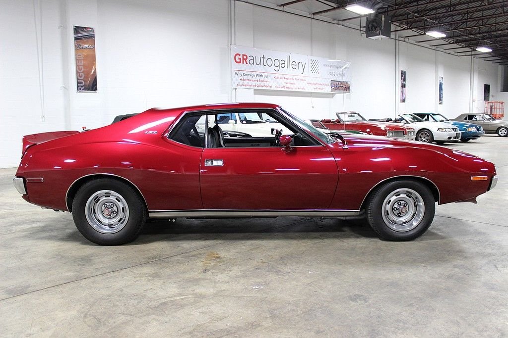 The AMC Javelin is a pony car that was built by AMC between 1967 and 1974 in two generations, model years 1968 to 1970 (with a separate design in 1970) and 1971 to 1974. The sporty Javelins came only as two-door hardtop (with no "B" pillar) body style, and were available in economical versions or as high-performance muscle cars. Javelins won the Trans-Am race series with AMC sponsorship in 1971 and 1972, and independently in 1976. The second-generation AMX version was the first pony car to be used as a normal highway patrol police car by any U.S. organization. In addition to manufacture in Kenosha, Wisconsin, Javelins were assembled under license in Germany, Mexico, Venezuela, and Australia. They were also sold in other international markets. Sales of convertibles were dropping and AMC did not have the resources to design separate fastback and notchback hardtops that were available on the Mustang and on the second-generation Plymouth Barracuda, so the AMC designer team under Richard A. Teague penned only one body style, "a smooth semi-fastback roofline that helped set Javelin apart from other pony cars.” The Javelin was built on AMC's Rambler American platform only as a two-door hardtop model to be a hip, dashing, affordable pony car, as well as available in muscle car performance versions. Despite management's insistence on things like good trunk space and rear- seat room, Teague managed to endow the Javelin with what he termed the wet T-shirt look: “voluptuous curves with nary a hint of fat." There were 27,696 Javelins manufactured in 1974 with only 4,980 of those as Javelin AMX models (17% of production) and even less were equipped with the very rare “GO” performance package. This bad !@# and rare '74 sports gorgeous ruby red paint over its original black interior. It was originally equipped with a 304ci V8 and a 3-speed manual. It is now equipped with a thundering 407ci stroker making 500hp matted to a 4-Speed manual with a Hurst shifter. This AMX was restored between 1994-1996 to its current condition and it appears and rides as if the work was done yesterday. It has been meticulously maintained and detailed to perfection. It is one of the rare gems that is equipped with the “GO” performance package which included front disk brakes, a 140mph speedometer, and 15”x7” Rally wheels among other items. Hagerty Insurance magazine picked the '71-'74 Javelin AMX as 1 of their 5 picks on their muscle cars to buy right now list in May of 2010. Don't miss your opportunity to own a truly rare and unique automobile that performs better than new and sports rare and desirable options as prices are starting to rise!