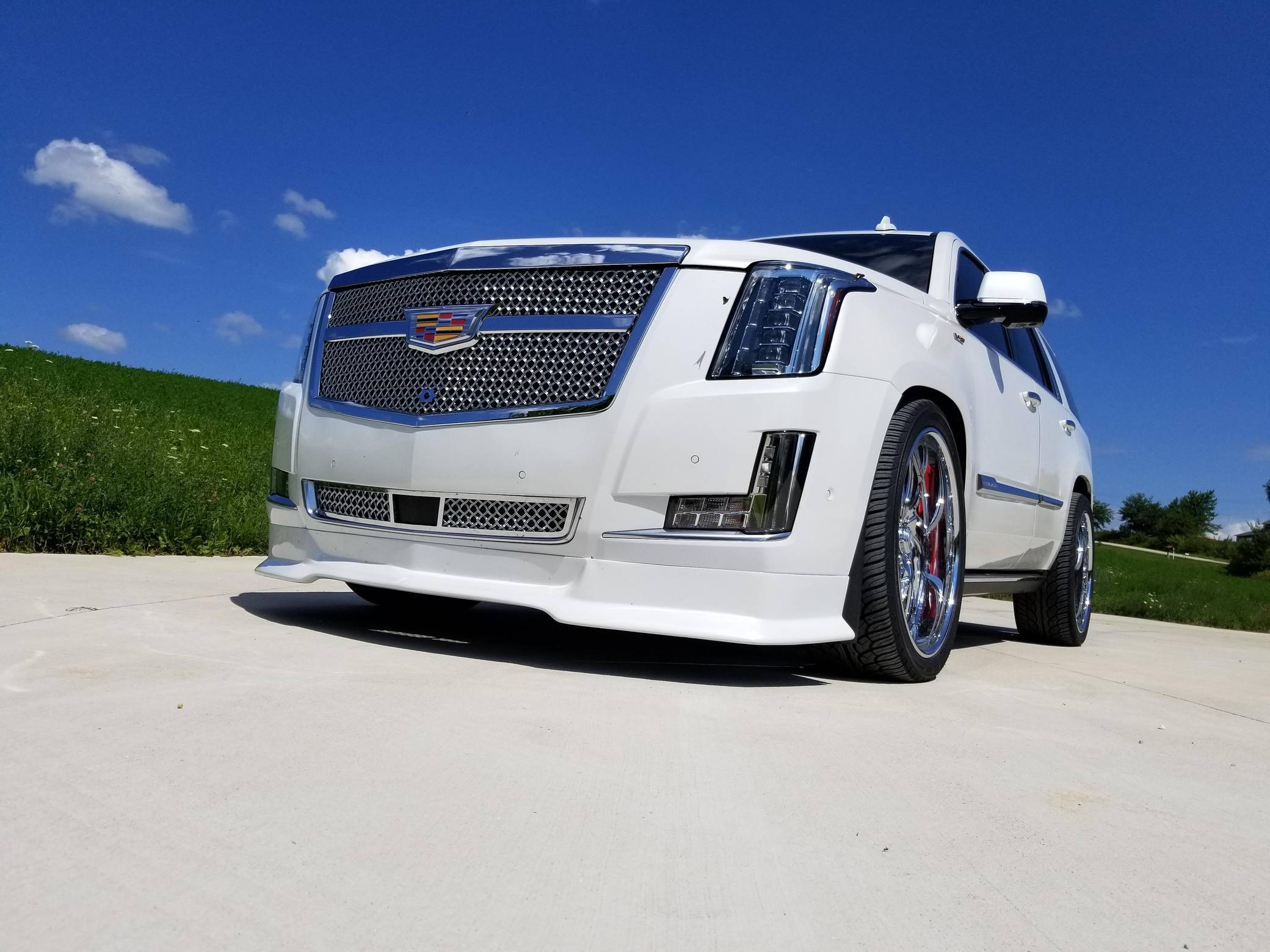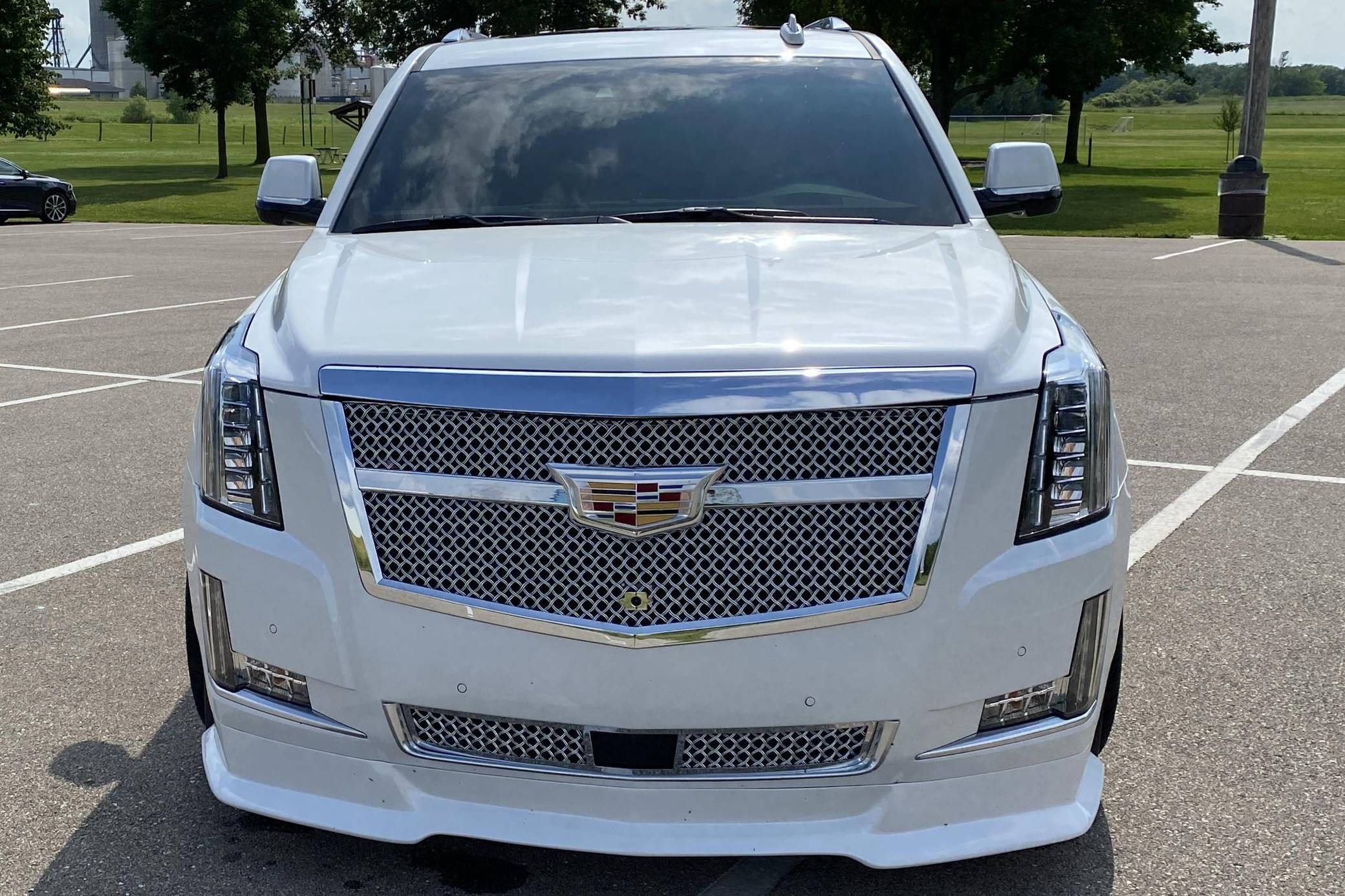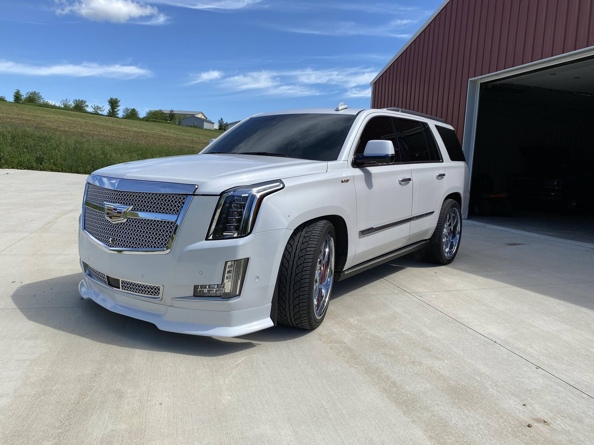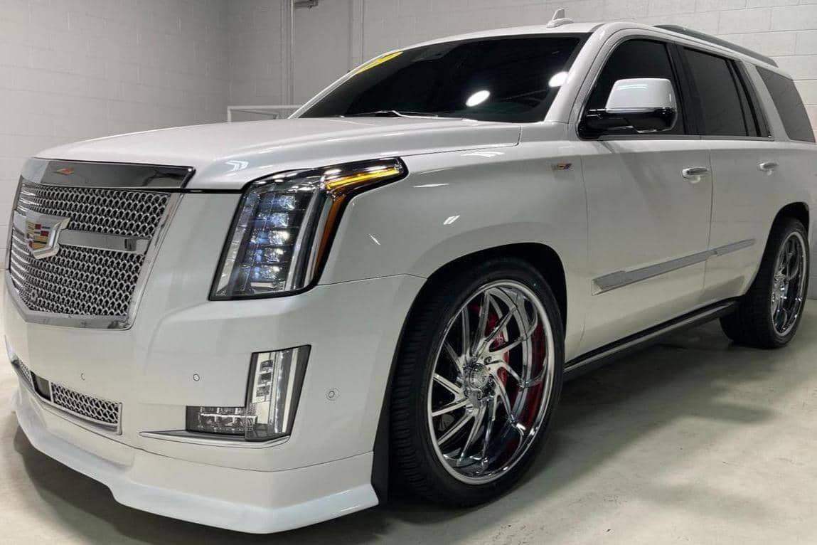 THIS. . . is a 2017 Cadillac Escalade Platinum 4x4, finished in Crystal White Tricoat with a Jet Black interior. Factory equipment on this Escalade includes a rear entertainment system with three screens, power illuminated running boards, leather upholstery, and the Driver Assist Package. Modifications include an Armageddon twin-turbo kit, which adds Kooks headers and downpipes, a TurboSmart 45mm wastegate and 52mm blow-off valve, a FLUIDYNE intercooler, and more. Other notable upgrades include 24-inch Asanti wheels, a Rotora big-brake kit, a custom front grille, and tinted windows. Cadillac launched the fourth generation of the Escalade for the 2015 model year. It retained the rugged body-on-frame construction but it also offered a drastically improved interior, packed with more technology and luxury features. Power comes from an "L86" 6. 2-liter V8 engine, rated at 420 horsepower and 460 lb-ft of torque. Due to the modifications performed to this Escalade, it likely produces more power, but a dyno sheet was not provided to confirm. Output is sent to the rear or all four wheels via an 8-speed automatic transmission.