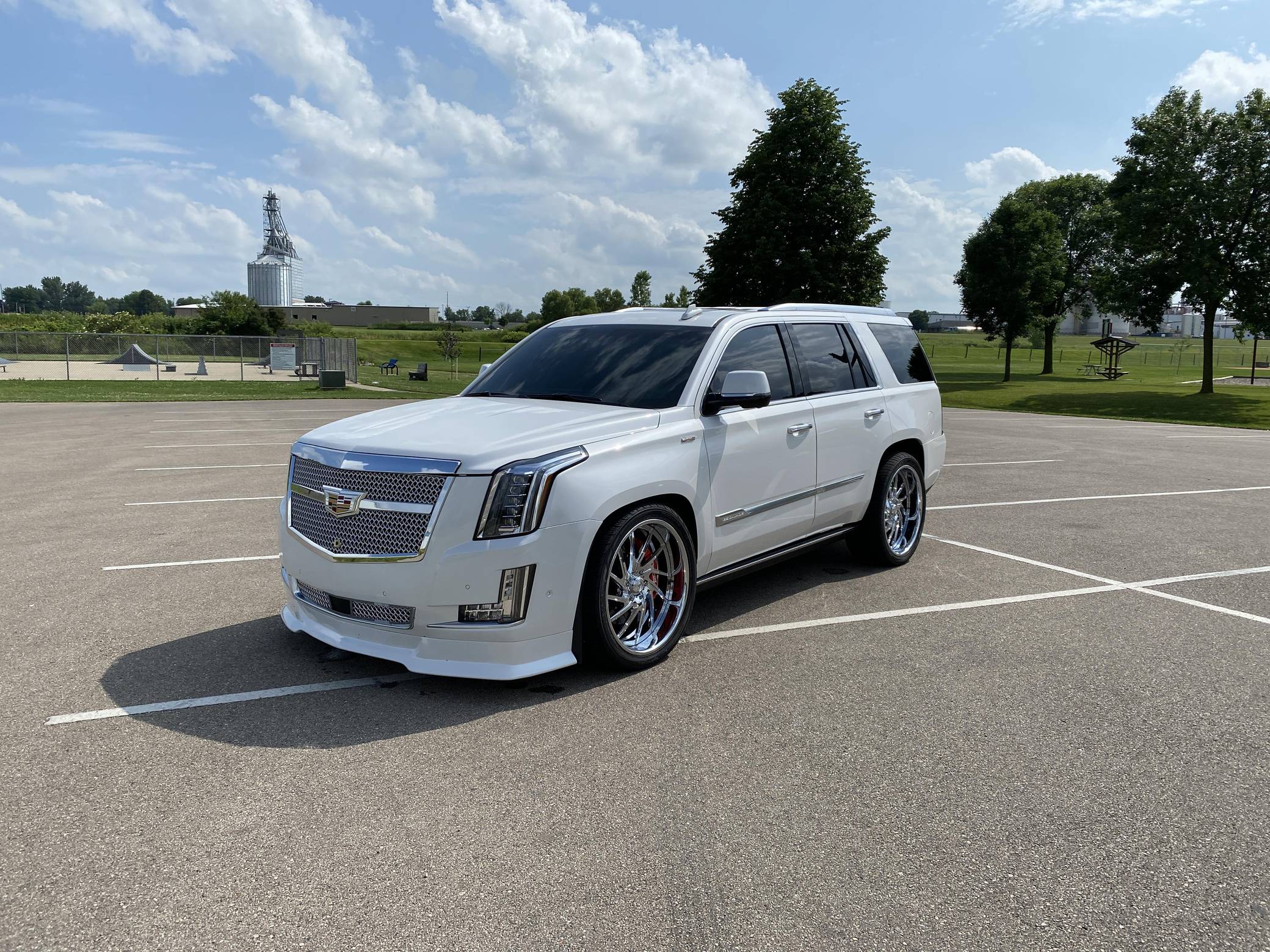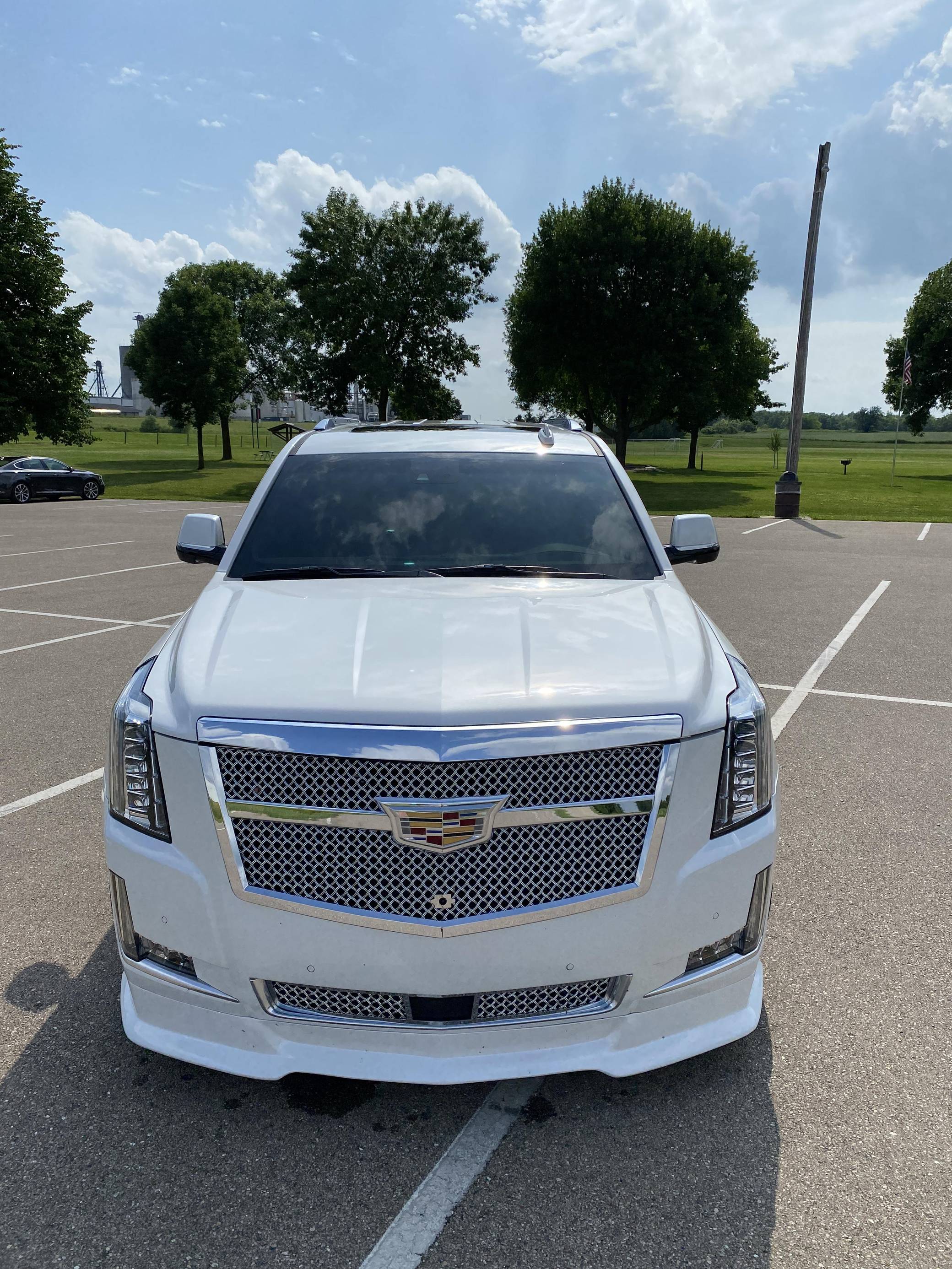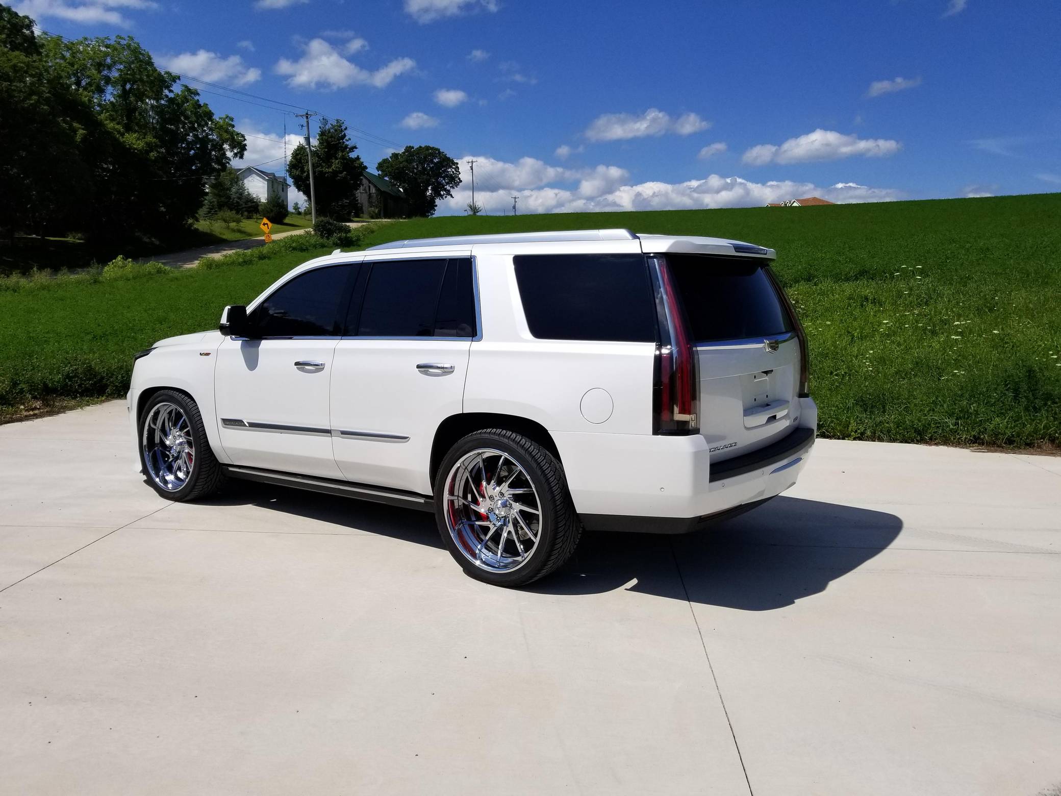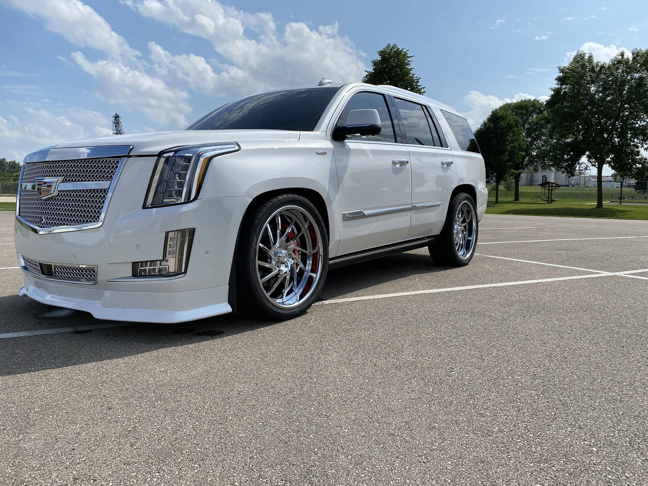 THIS. . . is a 2017 Cadillac Escalade Platinum 4x4, finished in Crystal White Tricoat with a Jet Black interior. Factory equipment on this Escalade includes a rear entertainment system with three screens, power illuminated running boards, leather upholstery, and the Driver Assist Package. Modifications include an Armageddon twin-turbo kit, which adds Kooks headers and downpipes, a TurboSmart 45mm wastegate and 52mm blow-off valve, a FLUIDYNE intercooler, and more. Other notable upgrades include 24-inch Asanti wheels, a Rotora big-brake kit, a custom front grille, and tinted windows. Cadillac launched the fourth generation of the Escalade for the 2015 model year. It retained the rugged body-on-frame construction but it also offered a drastically improved interior, packed with more technology and luxury features. Power comes from an "L86" 6. 2-liter V8 engine, rated at 420 horsepower and 460 lb-ft of torque. Due to the modifications performed to this Escalade, it likely produces more power, but a dyno sheet was not provided to confirm. Output is sent to the rear or all four wheels via an 8-speed automatic transmission.