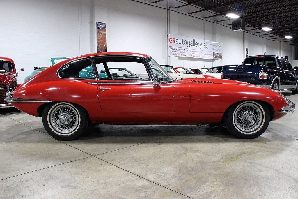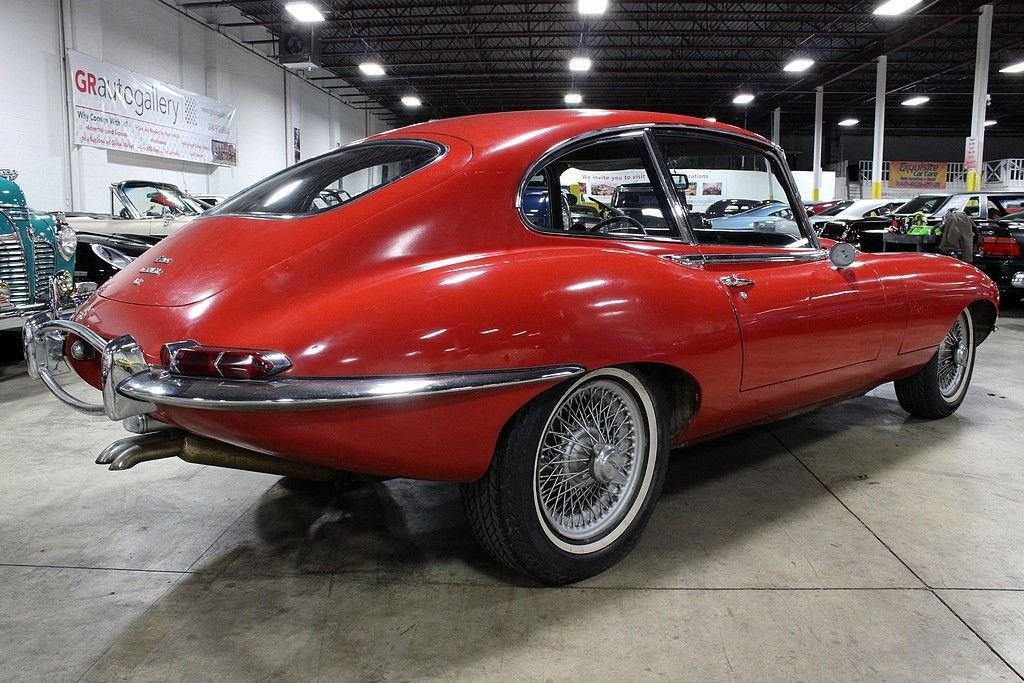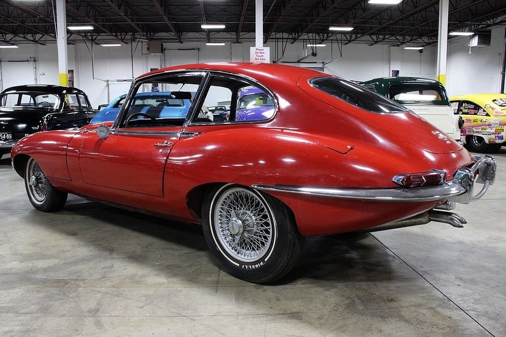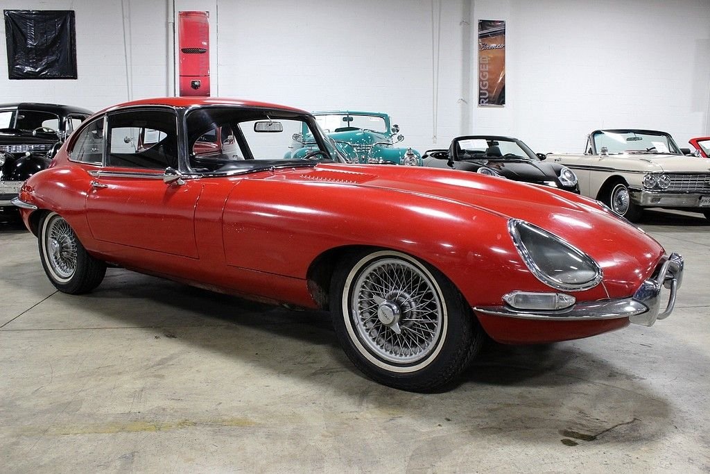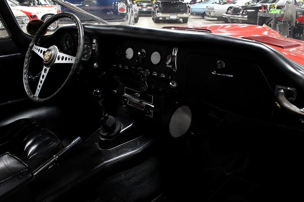 “Designed by a noted aerodynamicist Malcolm Sayer, the E-type was meant to cheat the wind, but its glass covered headlights, long hood, short rear deck and compound curves also coincidentally looked great. With a 0-60 time of around seven seconds and a 150 mph top speed, the Series I E-type was near the top of the early 1960s food chain. A 2+2 coupe was added to the coupe and convertible body styles in 1966. The 2+2 was the first E-type to be available with an automatic transmission. Parts are easy to find and not terribly expensive for any version of the E-type.” This vehicle has come to the United States since being ordered new and has not been available for sale since its inception! Brought to live in California the majority of its life, this is a highly unmolested example of one of the most iconic vehicles of its time and is in good running condition. We are told that it still has its original straight six-cylinder engine and all-synchromesh four-speed manual transmission. The exterior is of driver quality with what appears to be the original paint, original bumpers, even its original wheels and tires. Within this time capsule you will see the original black leather interior, the dash is in good shape with the pull starter system, beautiful slim line handles get you into the cockpit and the rumble as you start the car makes the power almost palpable. This vehicle was one of the first of its time to feature the independent coil spring rear suspension and had the added bonus of torsion bar front ends. The factory also provided 4-wheel disc brakes which were all power-assisted. The vehicle is most recognized by its glass-covered headlights which this model still has and in great shape and the top speed of 150 mph which was registered when this vehicle first came out, this is certainly enough even for modern standards!