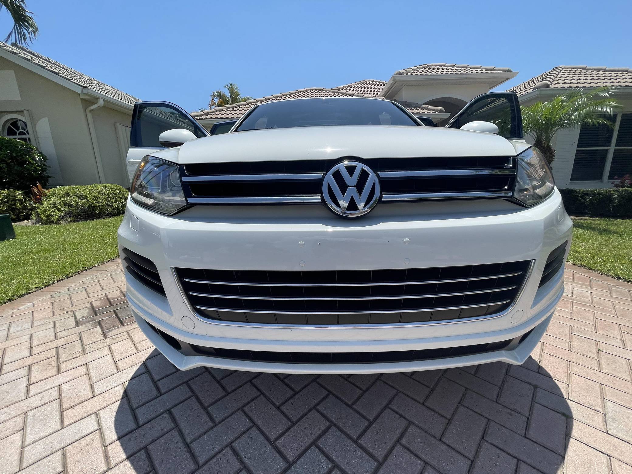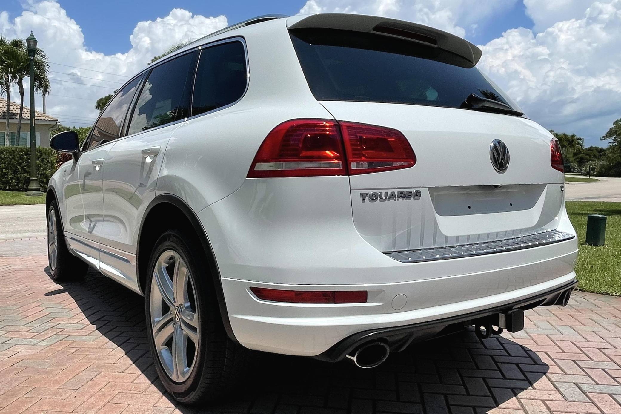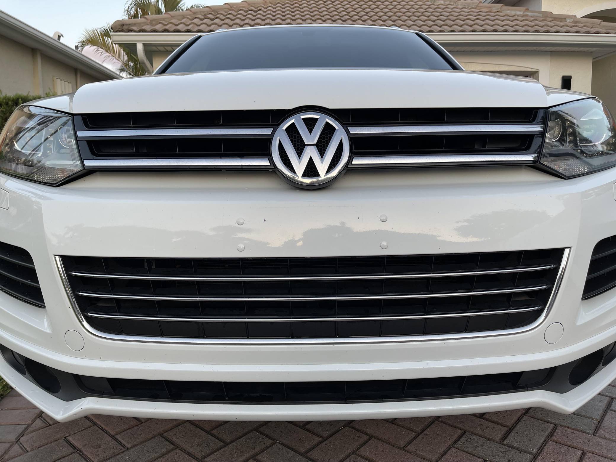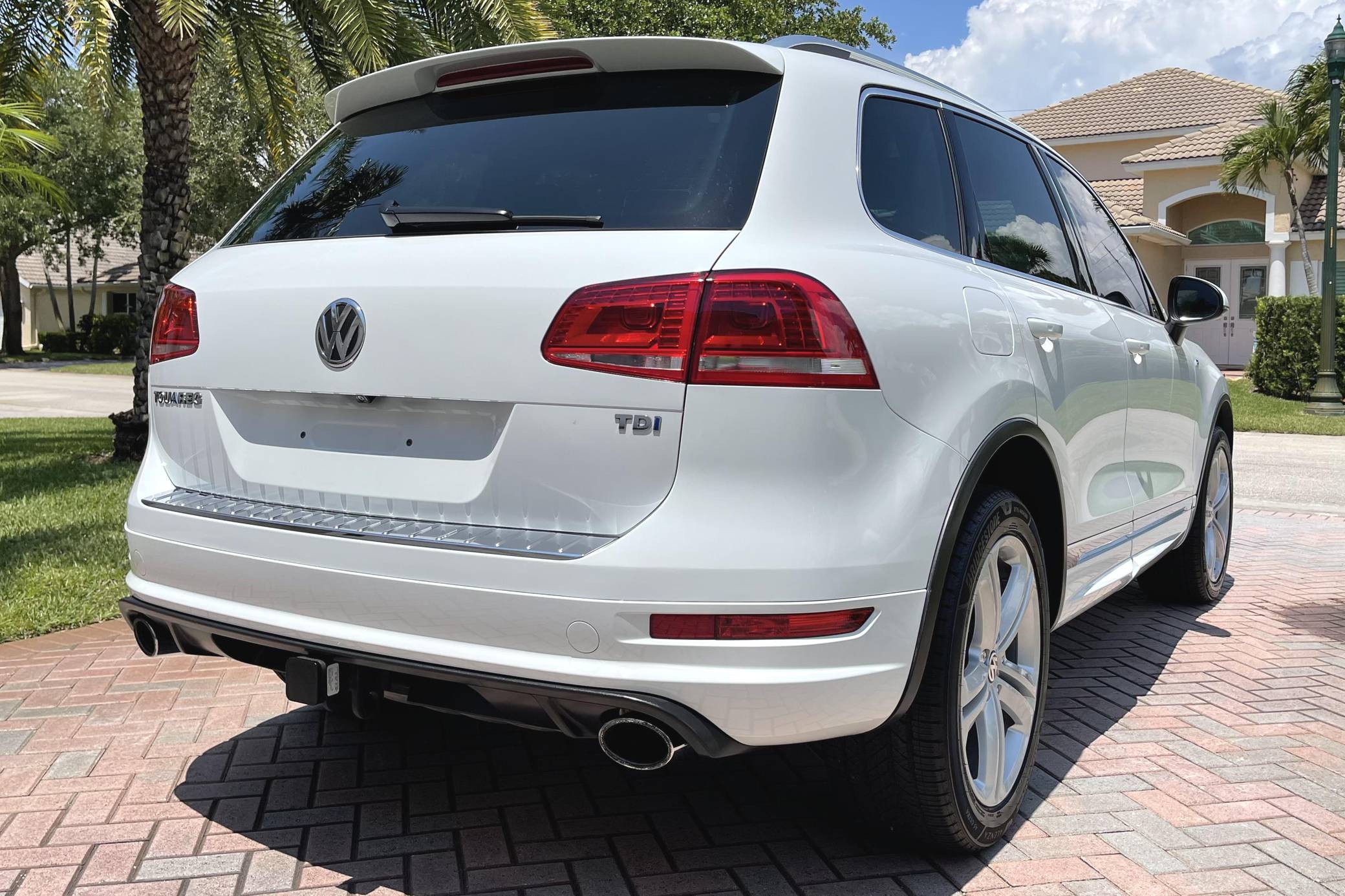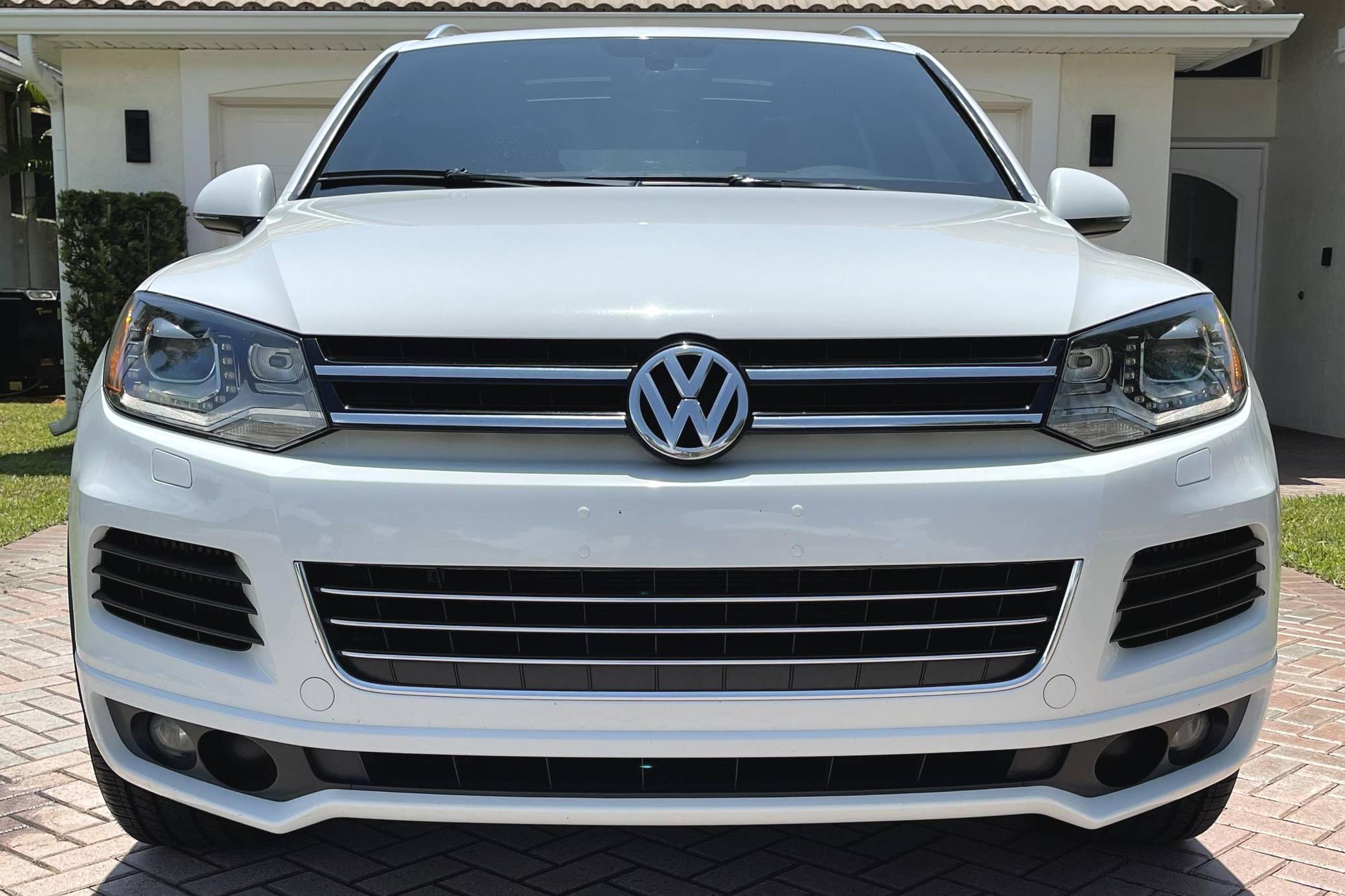 2014 Volkswagen Touareg TDI, finished in Pure White with a Black Anthracite interior. It comes equipped with 20-inch alloy wheels, sport suspension, front fog lights, automatic bi-xenon headlights, a trailer hitch with tow and ball mount, a panoramic sunroof, leather upholstery, 12-way power-adjustable and heated front seats with driver's memory function, a touchscreen navigation system, a rear-view camera, a power lift gate, and more as detailed below. Modifications reported by the seller include a Malone Tuning Stage 2 tune, Rawtek Performance Fabrication diesel particulate filter, AdBlue, and SCR delete kits, and 3M Crystalline Series window tint. Service records and documents pictured in the gallery indicate that this Touareg TDI had emissions compliance modifications performed under recall in December 2017 at 35,110 miles. The 2nd-generation Touareg debuted in 2010 and shared a platform with the Porsche Cayenne of the same era. Known as the "7P" internally, it managed to weigh approximately 450 lbs less than its predecessor while packing in more modern technology and safety features and maintaining a reputation for understated comfort and luxury. The 7P Touareg was discontinued in 2018 with the introduction of the Atlas in North America and the 3rd-generation Touareg in Europe. Power comes from a 3. 0-liter turbodiesel V6, rated at 240 horsepower and 406 lb-ft of torque in stock form. According to the Malone Tuning website, the Stage 2 tune increases output to 339 horsepower and 528 lb-ft of torque, but a dyno sheet was not provided to confirm. Output is sent to all four wheels via an 8-speed automatic transmission and a 4Motion permanent all-wheel-drive system.
