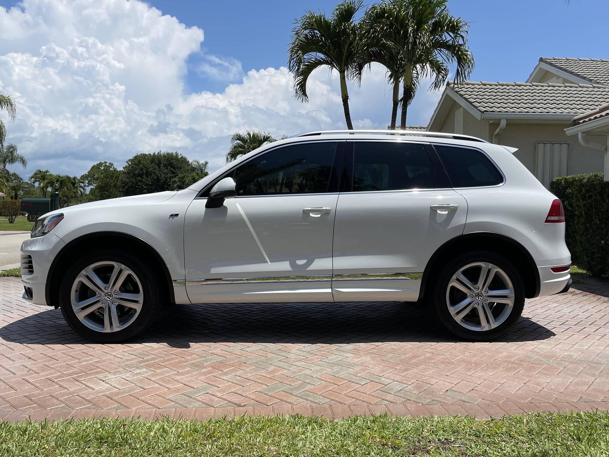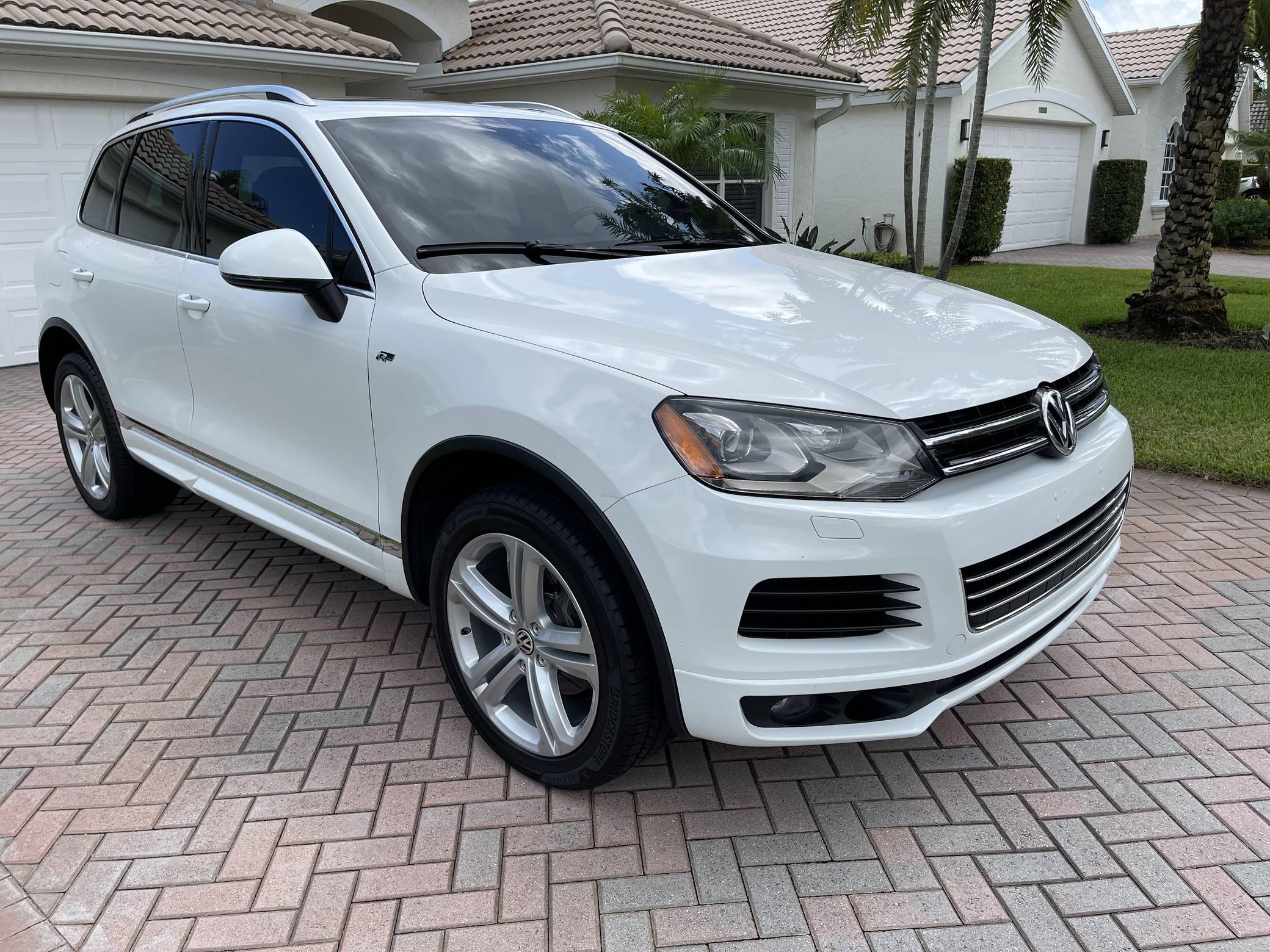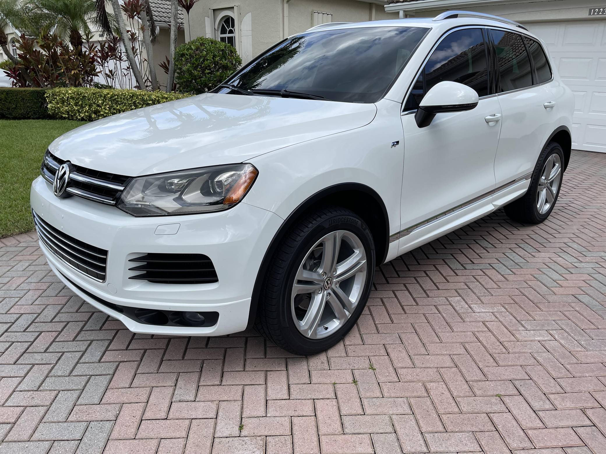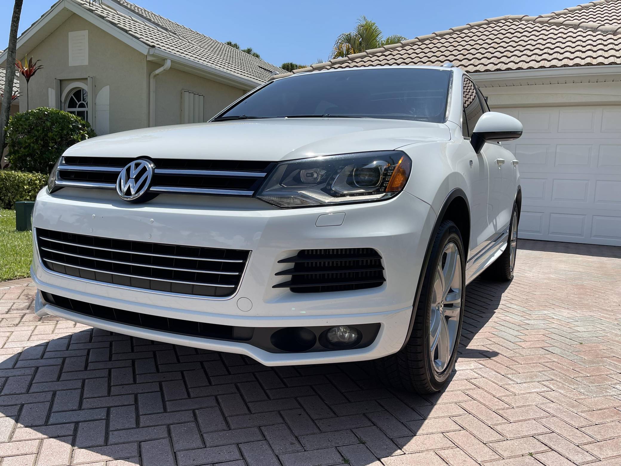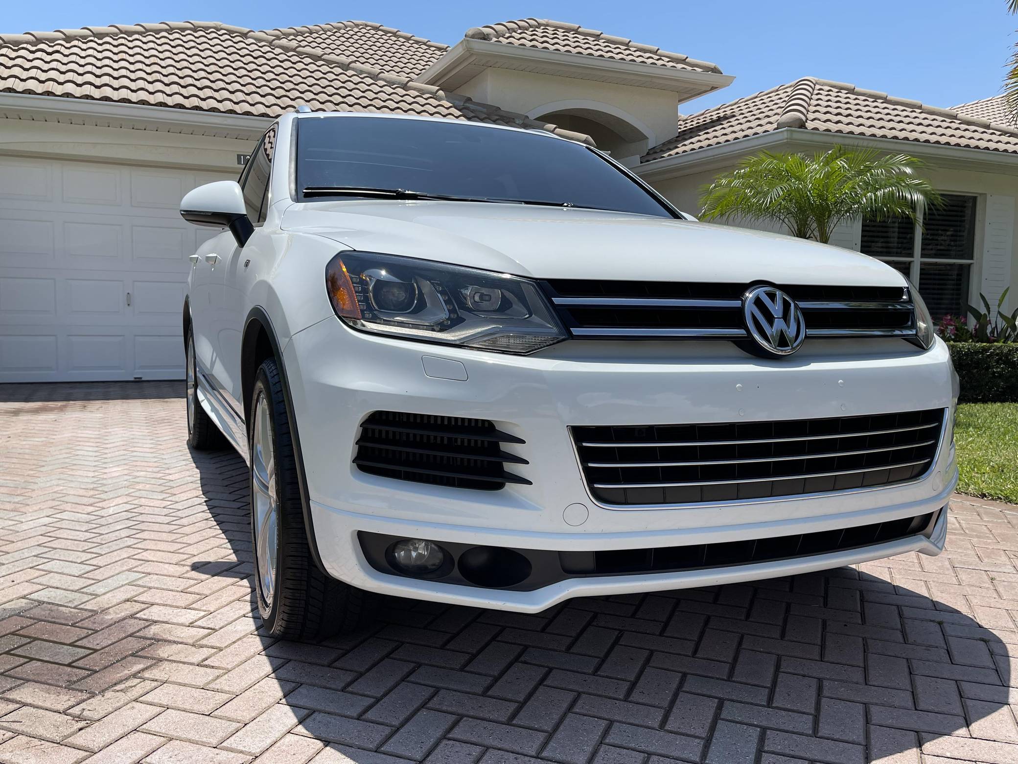 2014 Volkswagen Touareg TDI, finished in Pure White with a Black Anthracite interior. It comes equipped with 20-inch alloy wheels, sport suspension, front fog lights, automatic bi-xenon headlights, a trailer hitch with tow and ball mount, a panoramic sunroof, leather upholstery, 12-way power-adjustable and heated front seats with driver's memory function, a touchscreen navigation system, a rear-view camera, a power lift gate, and more as detailed below. Modifications reported by the seller include a Malone Tuning Stage 2 tune, Rawtek Performance Fabrication diesel particulate filter, AdBlue, and SCR delete kits, and 3M Crystalline Series window tint. Service records and documents pictured in the gallery indicate that this Touareg TDI had emissions compliance modifications performed under recall in December 2017 at 35,110 miles. The 2nd-generation Touareg debuted in 2010 and shared a platform with the Porsche Cayenne of the same era. Known as the "7P" internally, it managed to weigh approximately 450 lbs less than its predecessor while packing in more modern technology and safety features and maintaining a reputation for understated comfort and luxury. The 7P Touareg was discontinued in 2018 with the introduction of the Atlas in North America and the 3rd-generation Touareg in Europe. Power comes from a 3. 0-liter turbodiesel V6, rated at 240 horsepower and 406 lb-ft of torque in stock form. According to the Malone Tuning website, the Stage 2 tune increases output to 339 horsepower and 528 lb-ft of torque, but a dyno sheet was not provided to confirm. Output is sent to all four wheels via an 8-speed automatic transmission and a 4Motion permanent all-wheel-drive system.