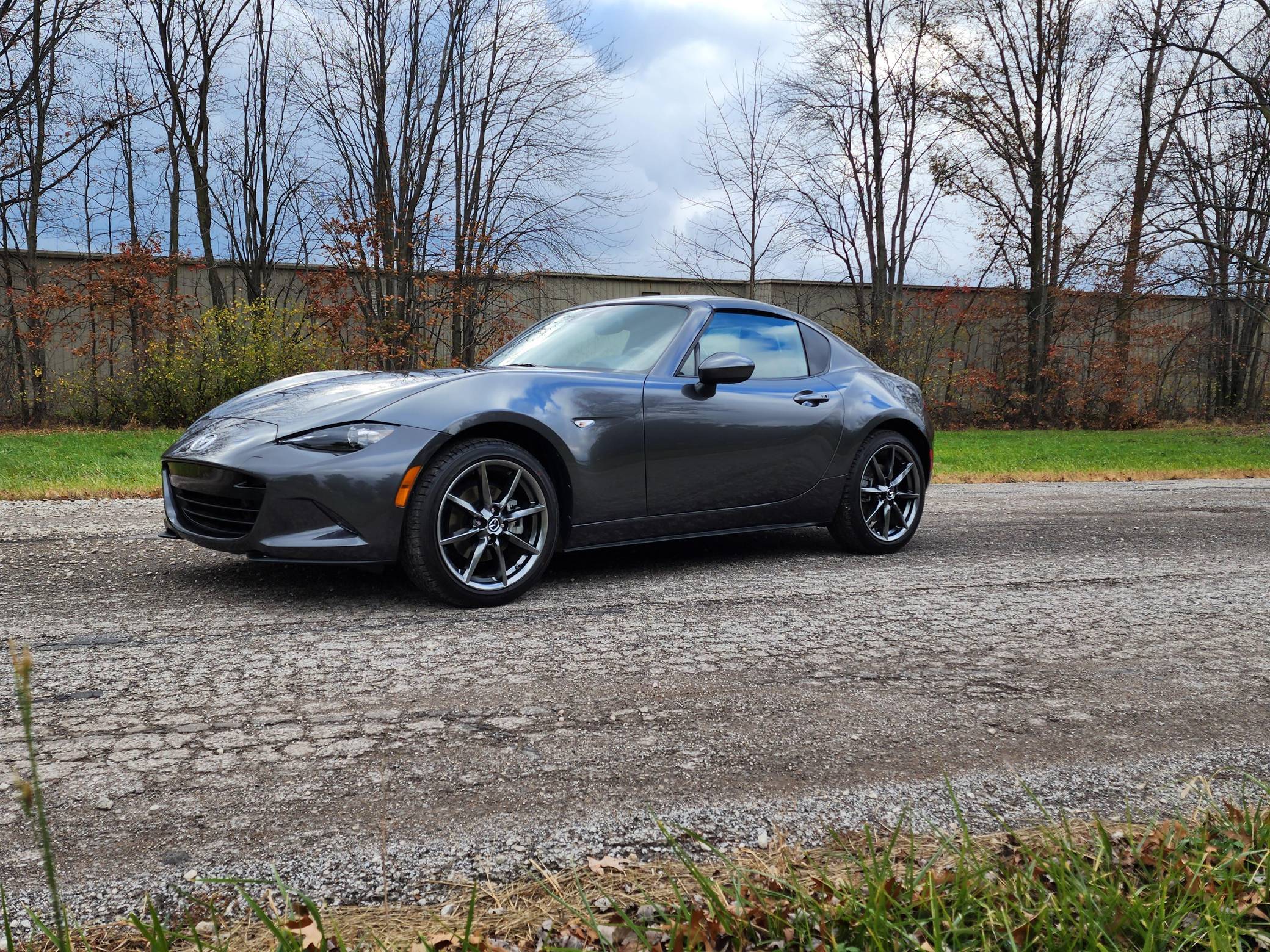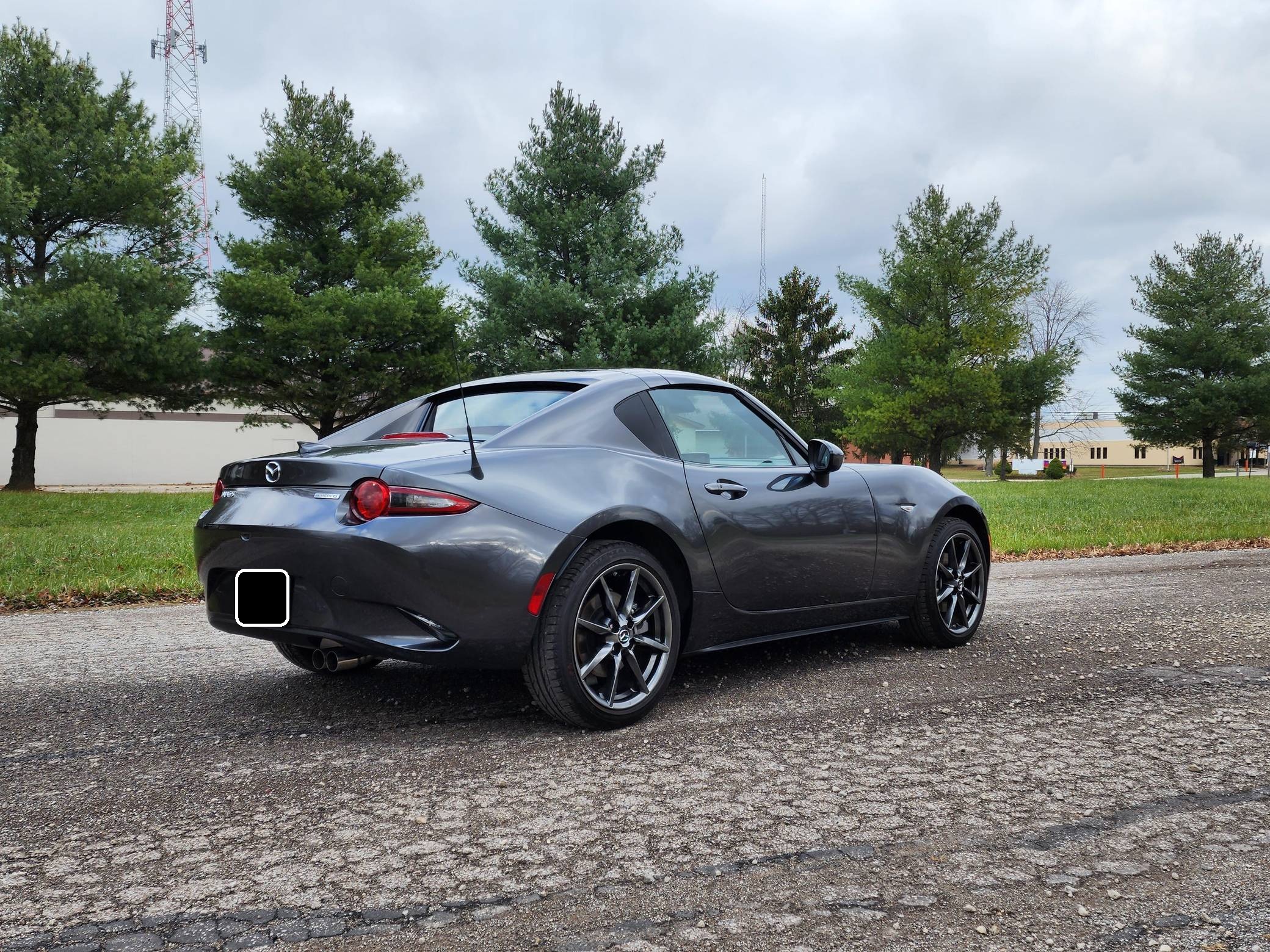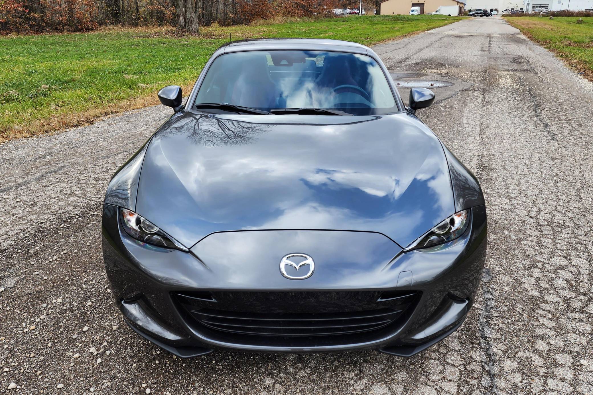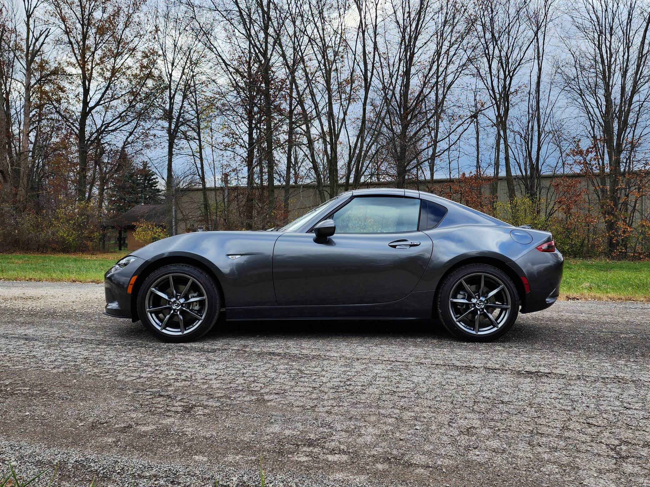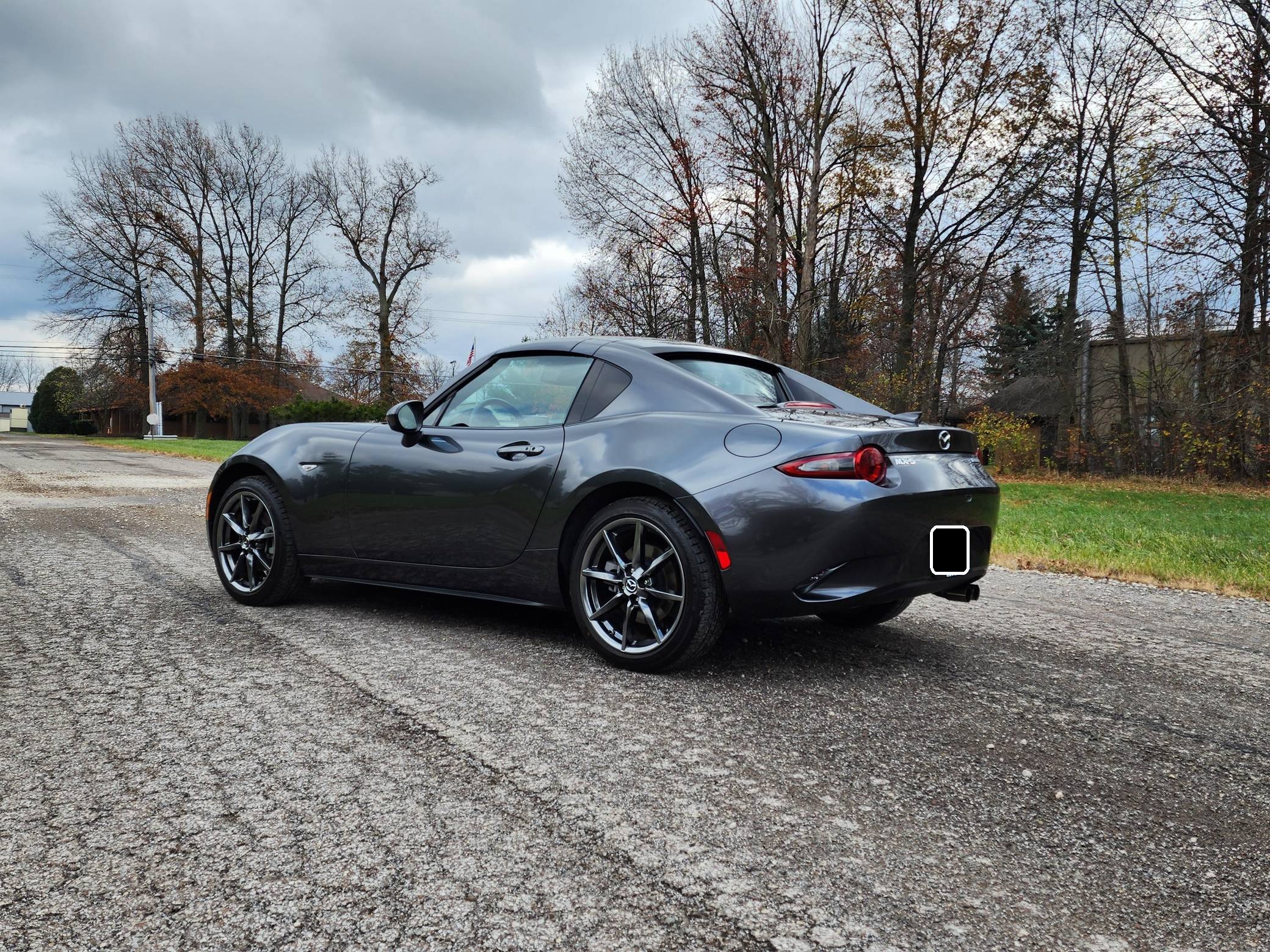 THIS… is a 2020 Mazda MX-5 Miata RF Grand Touring, finished in Machine Gray Metallic with a red interior. This Miata features the desirable 6-speed manual transmission. The odometer on this Miata currently displays about 2,100 miles. The seller reports no modifications. The ND generation of the Mazda MX-5 Miata debuted for the 2016 model year, and it strikes a balance as a modern, nicely-appointed roadster that still maintains the intended nature of a Miata as a fun, uncomplicated, lightweight sports car at an accessible price. The "ND2" model debuted for the 2019 model year and included revisions to the engine with more power and a higher redline, a telescoping steering column, revised seat controls, a new cupholder, a reverse camera, and a redesigned door handle mechanism. Power comes from a 2. 0-liter inline-4 engine, rated at 181 horsepower and 151 lb-ft of torque. Output is sent to the rear wheels via a 6-speed manual transmission.