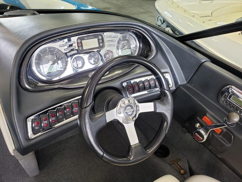 This awesome 2007 Malibu vRide is the perfect all-around boat. It has a beautiful blue and white exterior, white, grey, and blue interior, and grey carpet. It comes equipped with an Indmar 5.7L engine, massive storage space, two board racks, two can tower speakers, JL audio speakers throughout, Malibu sound system, massive sun pad, swim platform, tandem axle Malibu trailer with spare tire, and much, much more!