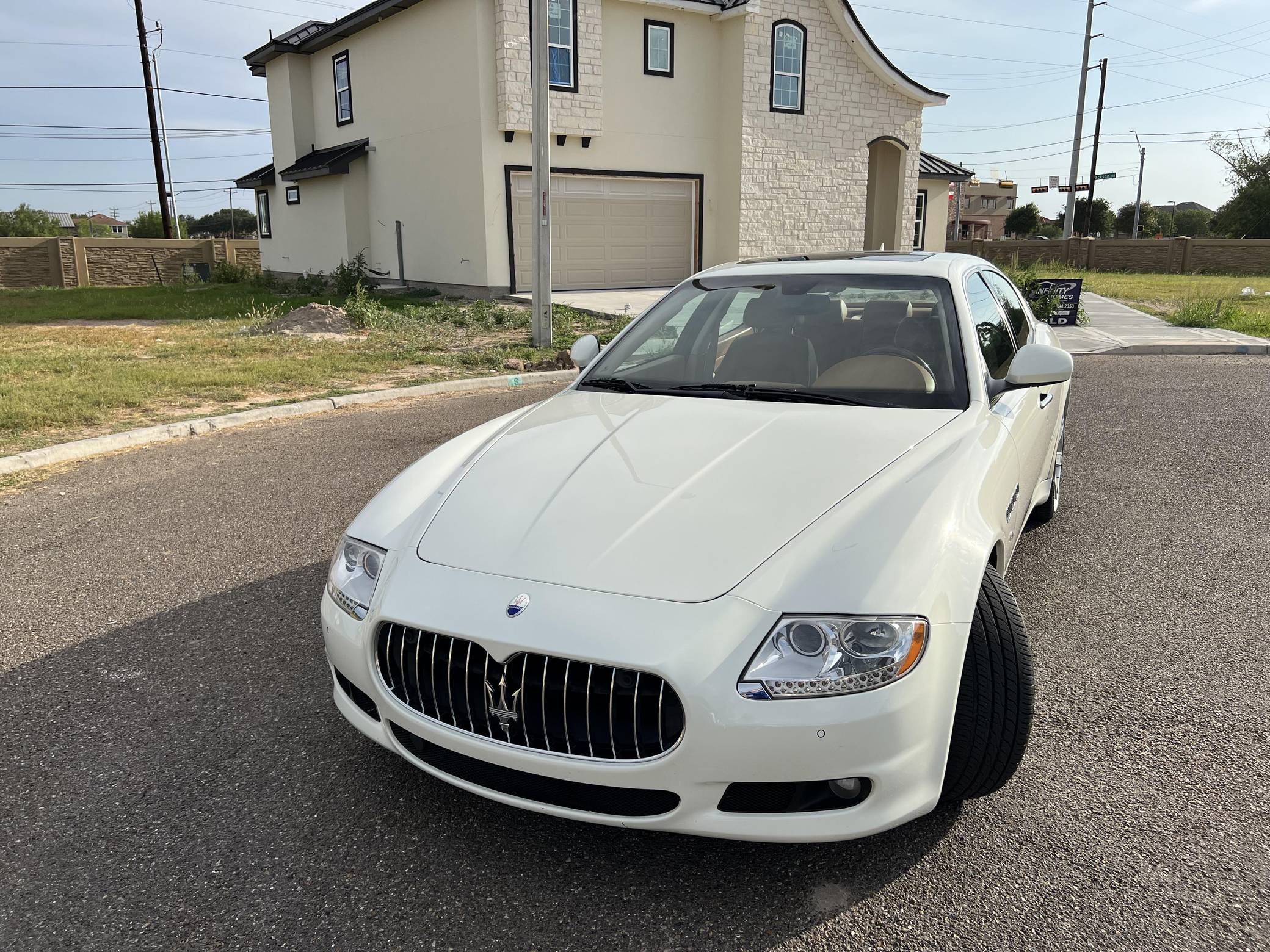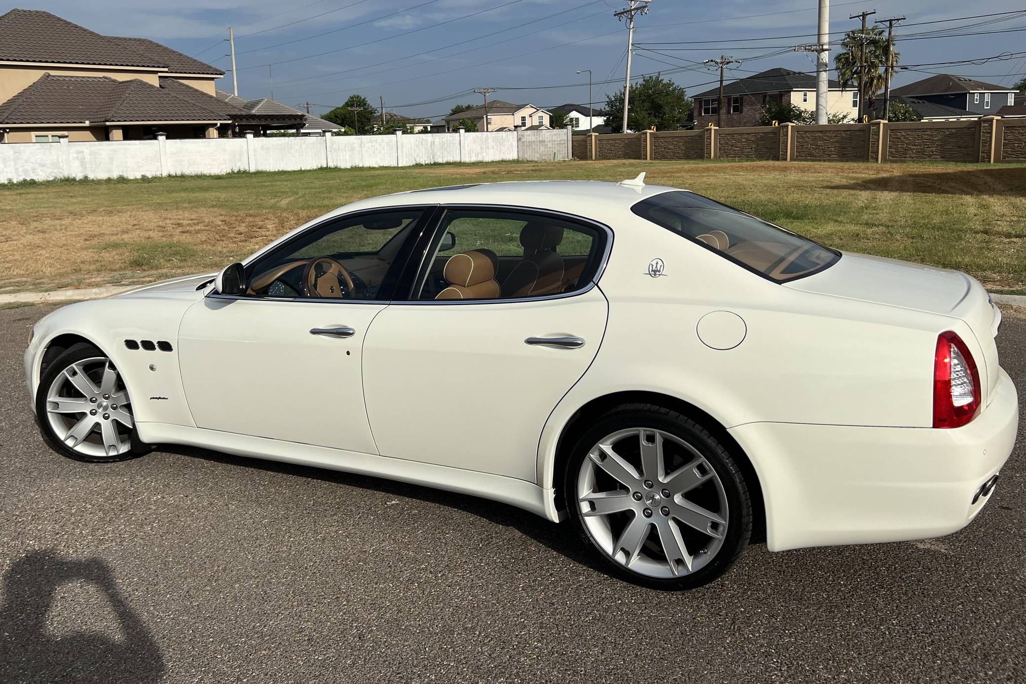 2010 Maserati Quattroporte S, finished in Bianco Eldorado with a Cuoio interior. The odometer on this Quattroporte currently displays approximately 36,300 miles. Factory equipment includes 20-inch alloy wheels, a Skyhook suspension system, a sunroof, power-adjustable front and rear seats, a memory function for the driver, a Bose sound system, a navigation system, plus front and rear parking sensors. The only modification reported by the seller is paint protection film on the rear wheel arches. Maserati launched the fifth-generation Quattroporte for the 2004 model year as part of its efforts to rejuvenate its line-up. Designed by Pininfarina, the model was developed as a true luxury sedan that was longer than a BMW 7 Series, wider than a Mercedes-Benz S-Class, powered by an exotic V8, and loaded to the gills with luxury and technology features. 2009 brought a series of visual updates, interior improvements, and a bigger, more powerful V8 for the S model. Power comes from a 4. 7-liter V8, rated at 425 horsepower and 361 lb-ft of torque. Output is sent to the rear wheels via a 6-speed ZF automatic transmission.