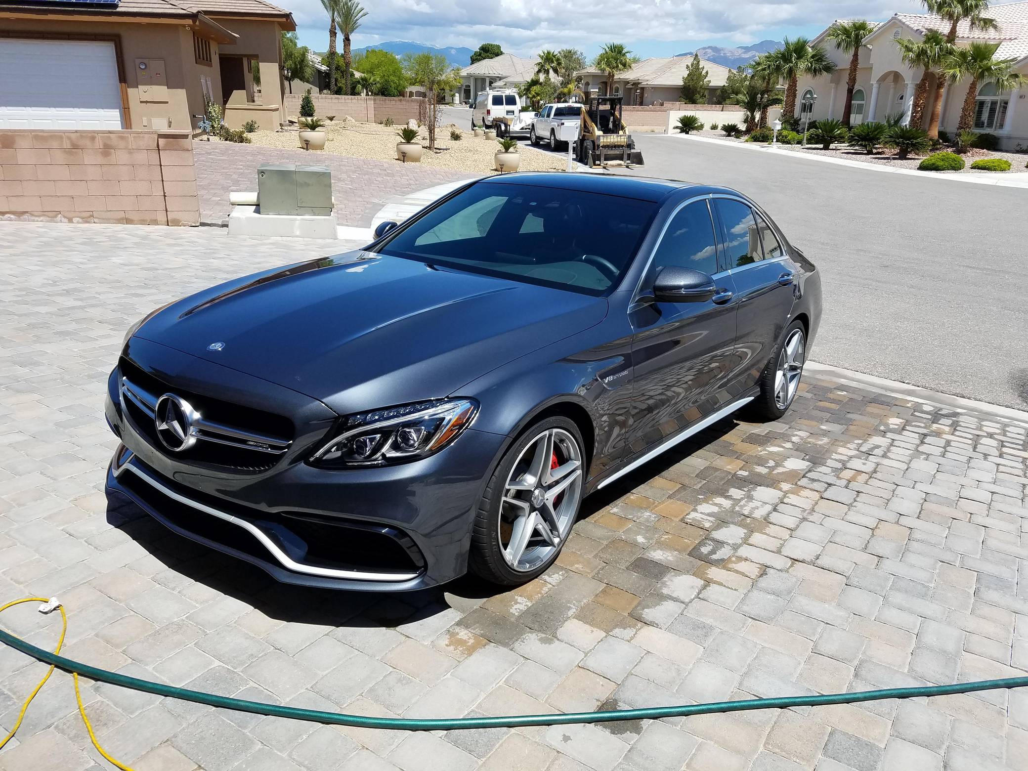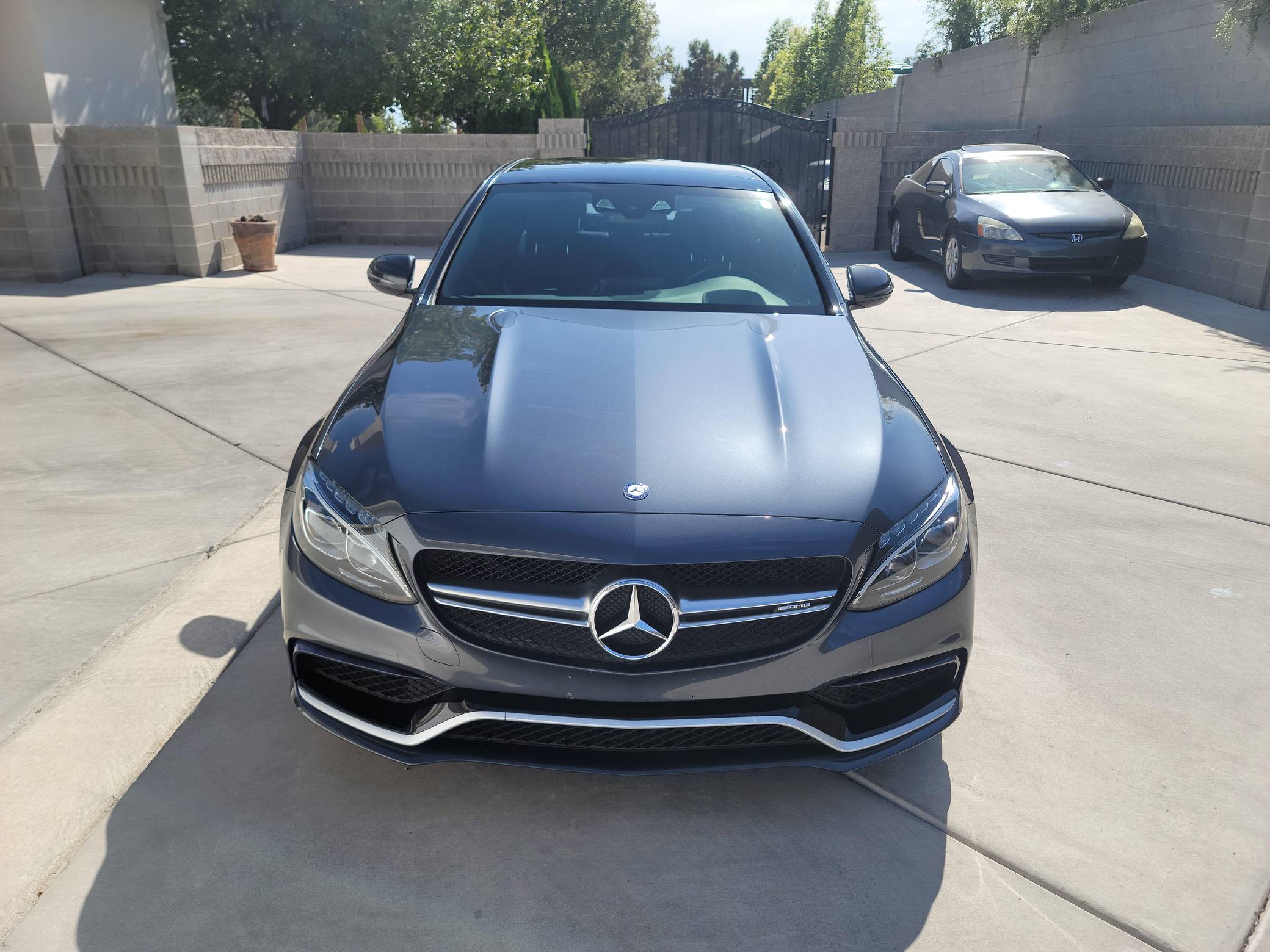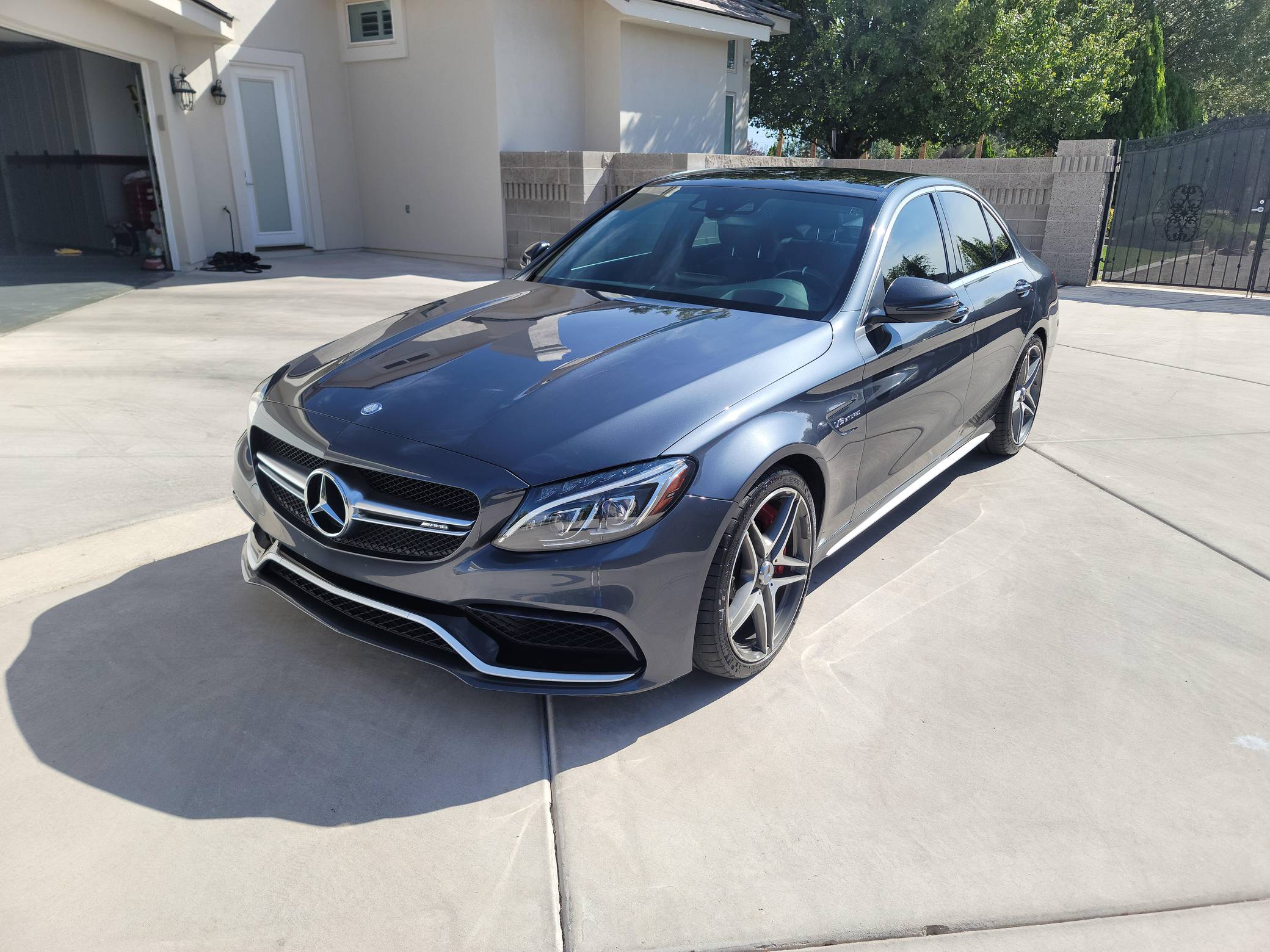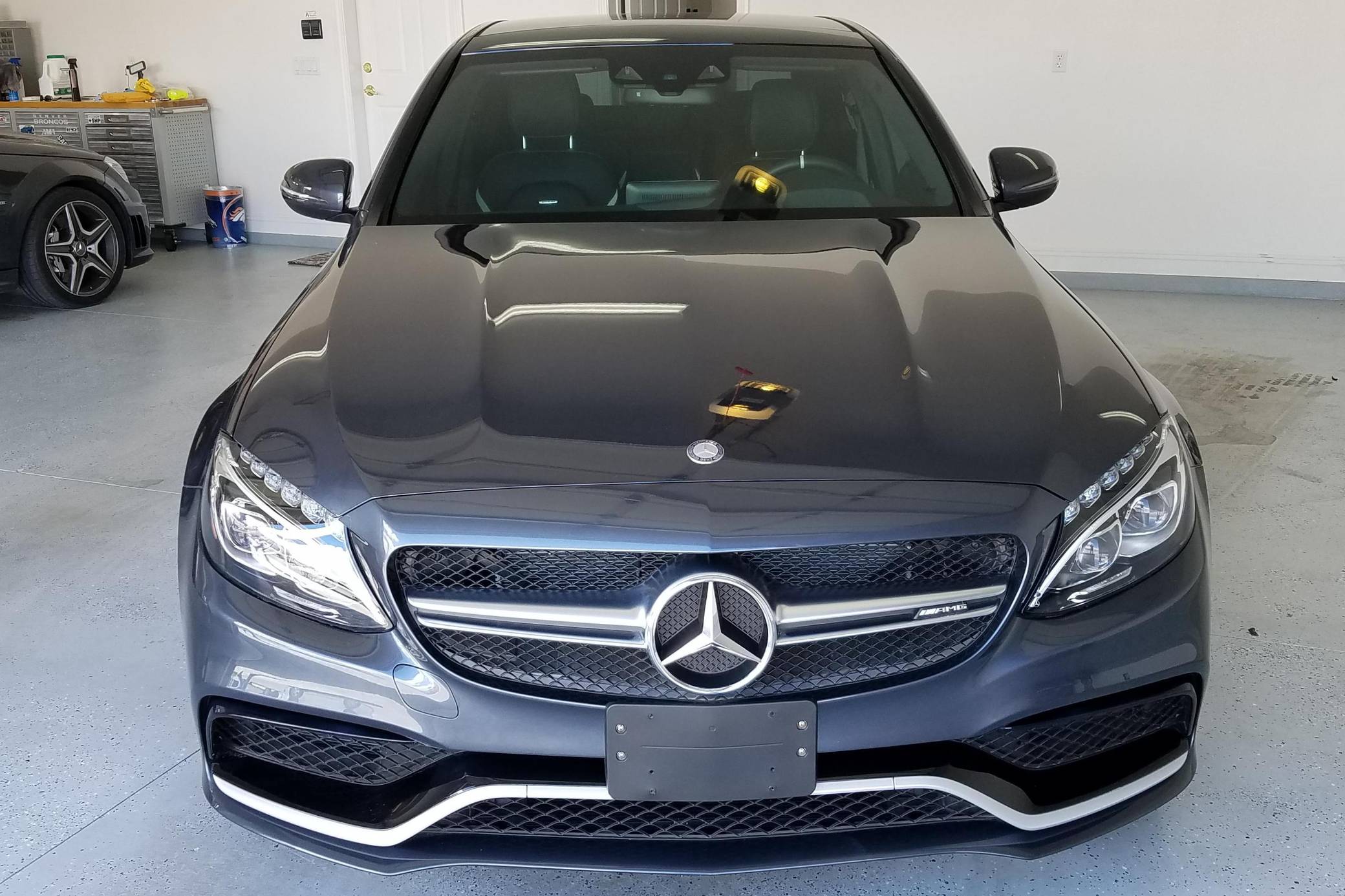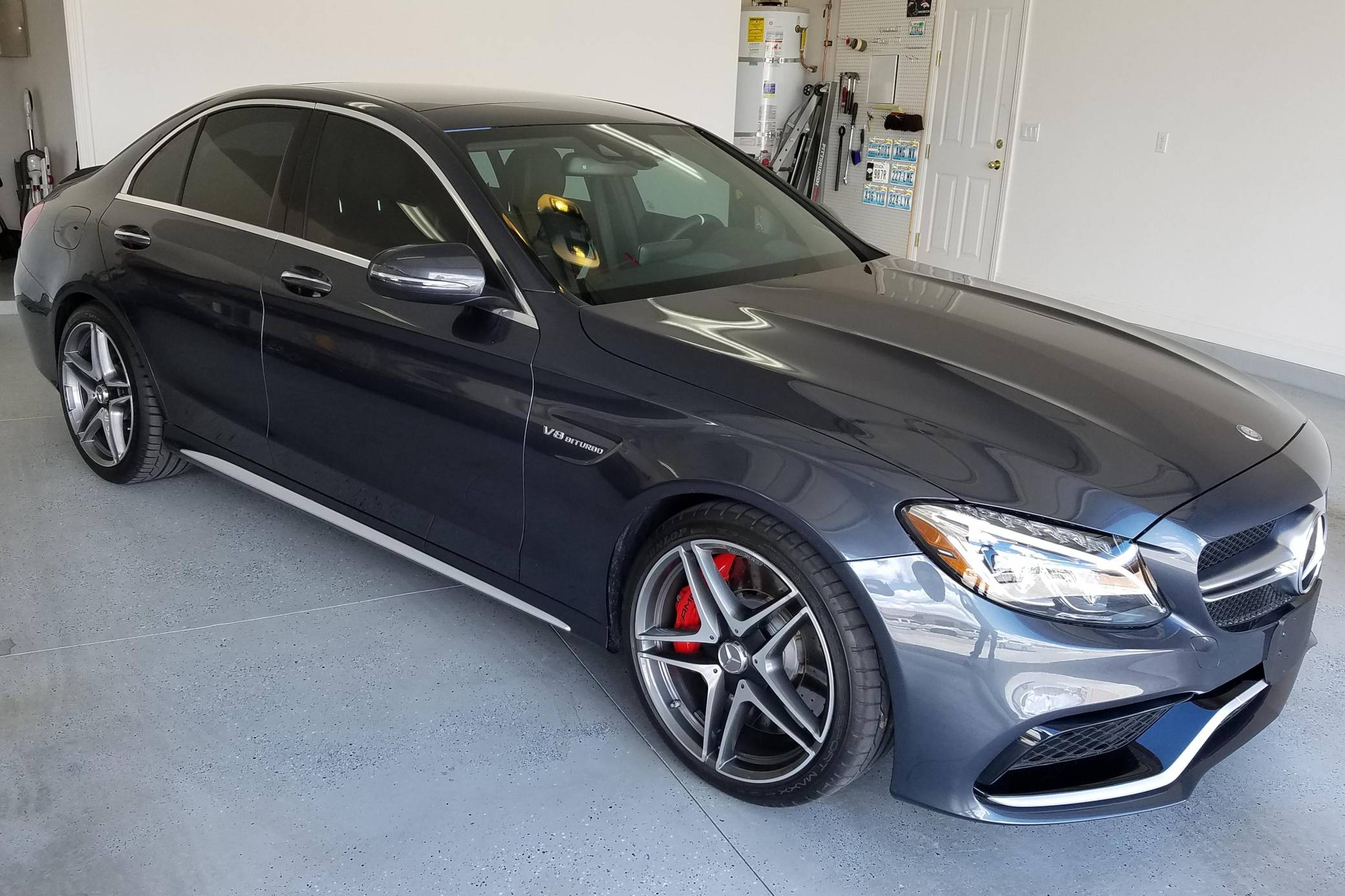 THIS… is a 2016 Mercedes-AMG C63 S Sedan, finished in Tenorite Gray with a black interior. According to the build sheet provided in the gallery, factory equipment includes 19-inch staggered AMG wheels, an electronic limited-slip differential, AMG adaptive suspension, LED headlights, a sunroof, Nappa leather upholstery, power-adjustable heated front seats, a Burmester Surround Sound system, and more as listed below. Modifications reported by the seller are limited to tinted windows. Mercedes-AMG introduced the W205-based C63 for the 2015 model year, shortly after it morphed into a sub-brand within Mercedes-Benz. Offered as a sedan and as a coupe, the C63 surfed the downsizing wave sweeping across the industry by trading displacement for forced induction, yet it was quicker and sharper to drive than its predecessor. Enthusiasts who ordered the range-topping S model unlocked more power and additional equipment. Production ended in 2021. Power comes from an “M177” 4. 0-liter twin-turbocharged V8, rated at 503 horsepower and 516 lb-ft of torque. Output is sent to the rear wheels via a 7-speed automatic transmission.