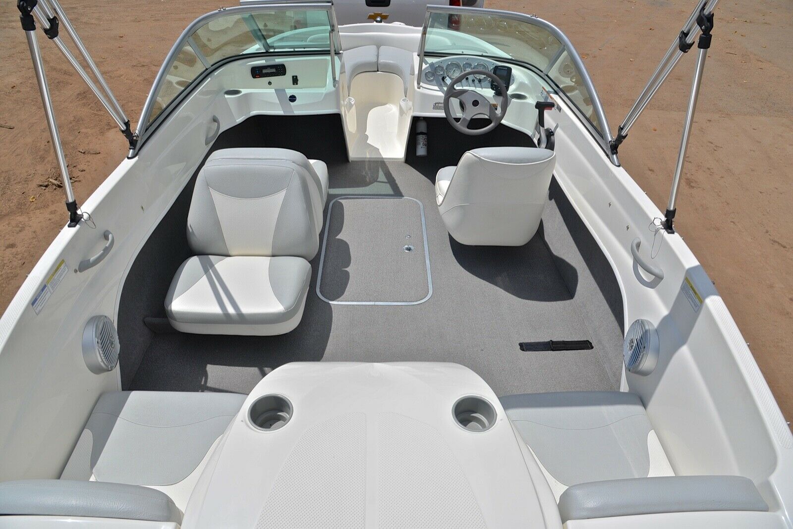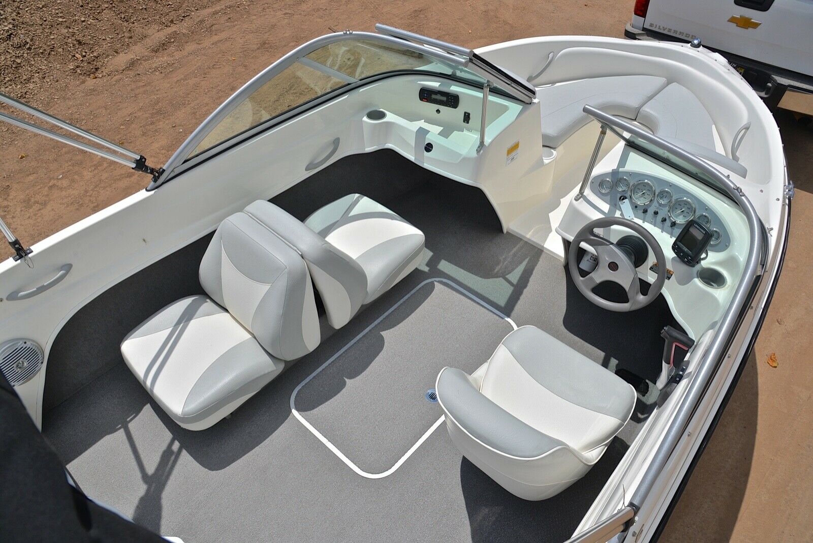 You are viewing a 2011 Bayliner 175 edition bowrider. This boat is very clean with minimal signs of use. The boat was kept under covered storage. Overall appears to be in excellent condition without any signs of fading or oxidation. Gelcoat maintains very high gloss. There are no scratches, gouges, chips, or cracks. The boat was upgraded to a full-colored hull. The upholstery shows to be in excellent condition without any rips, stains, or any seams coming apart. The colors are vibrant and the vinyl is soft. The carpet is clean without any stains or tears. The rub rail is very clean. The decals are in excellent condition. The keel is in excellent condition without signs of beaching. There is an integrated swim platform with stainless boarding ladder. The dashboard features upgraded stainless gauges and switches all in functional condition. There is a marine stereo with cockpit speakers. Dash has a fish finder. There are an oversized Bimini top and premium bow and cockpit covers. The custom single axle trailer is in excellent condition with minimal signs of use. The trailer has a folding tongue for those of you looking to store indoors. The trailer has oversized wheels with NEW matching Radial tires. The carpet and bunks are in excellent condition. Bearings were inspected. Lights work. Boat and trailer tow great on the road.