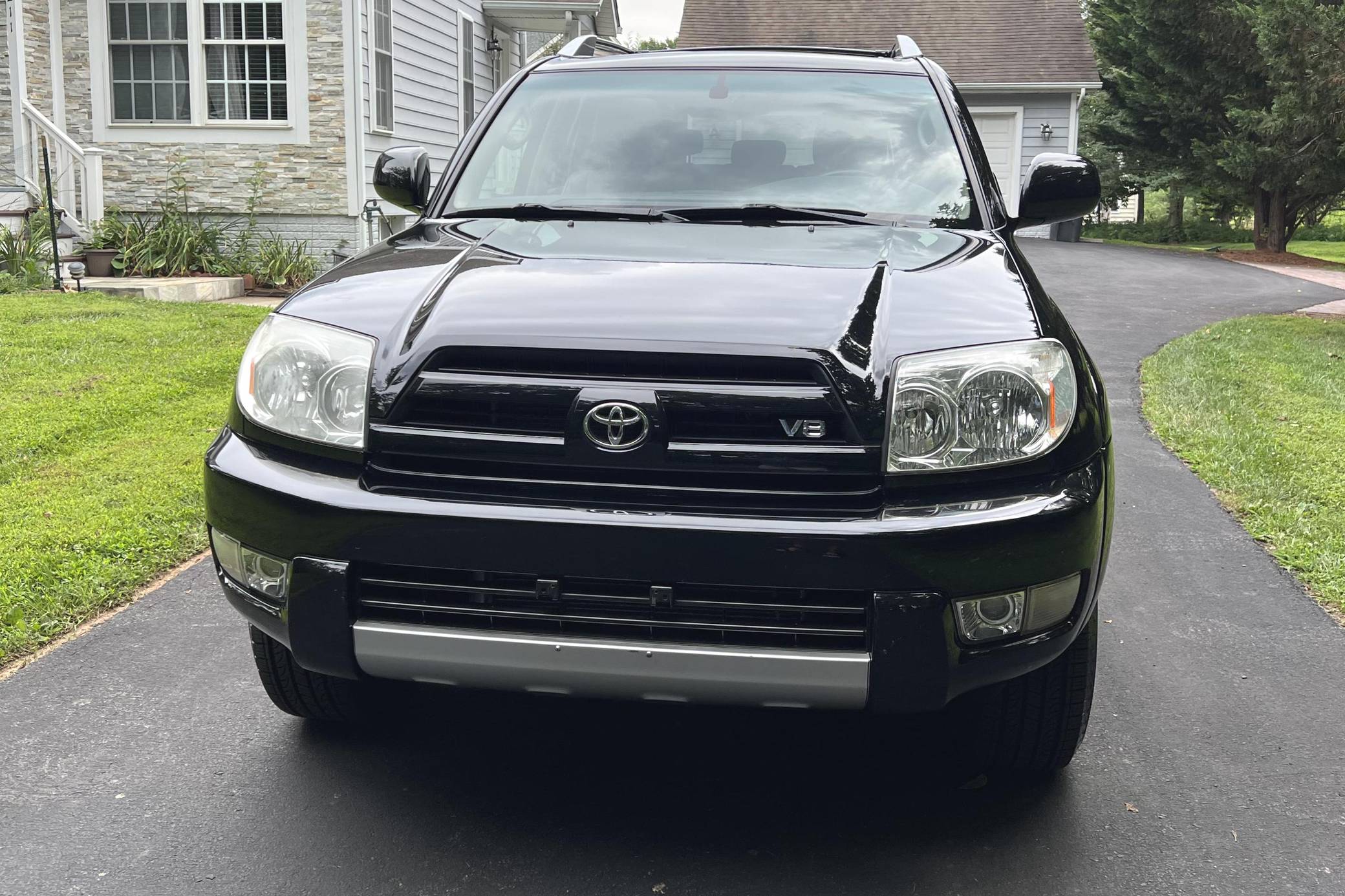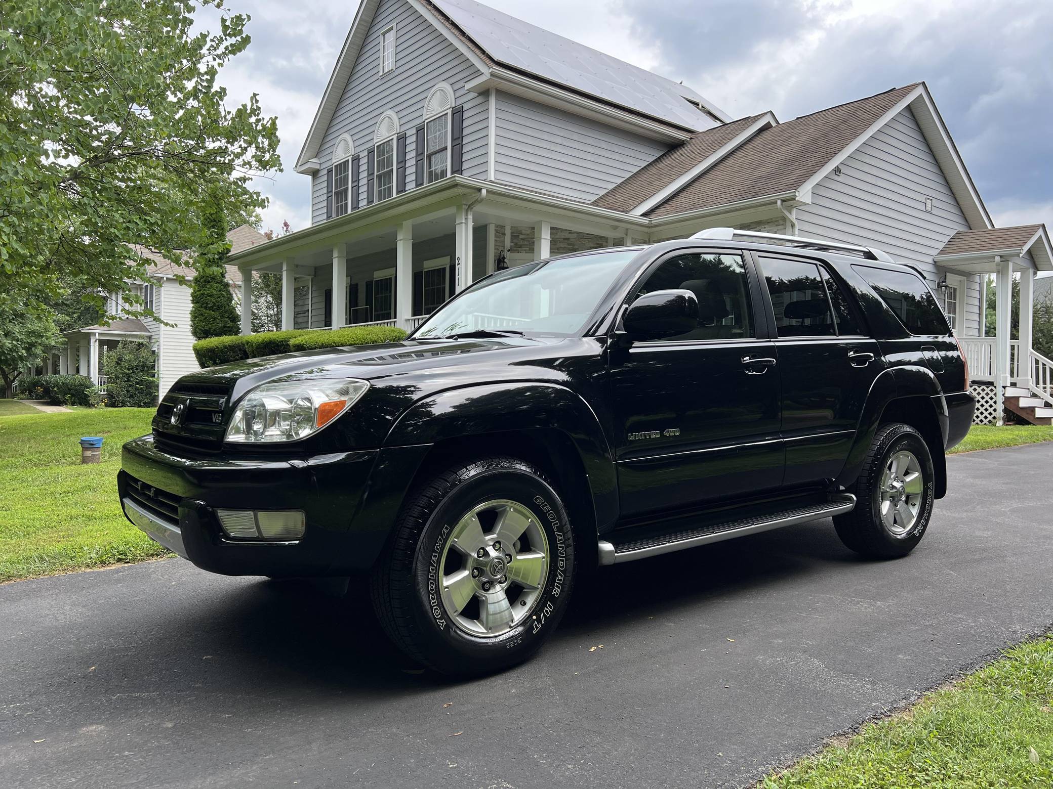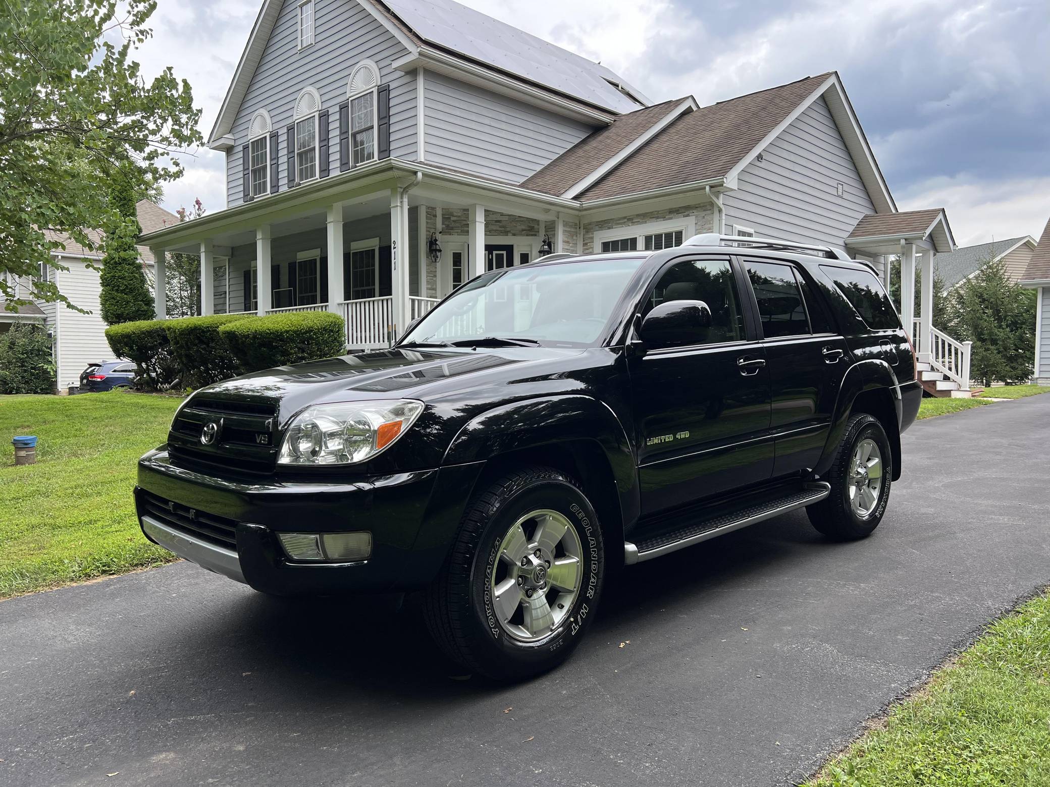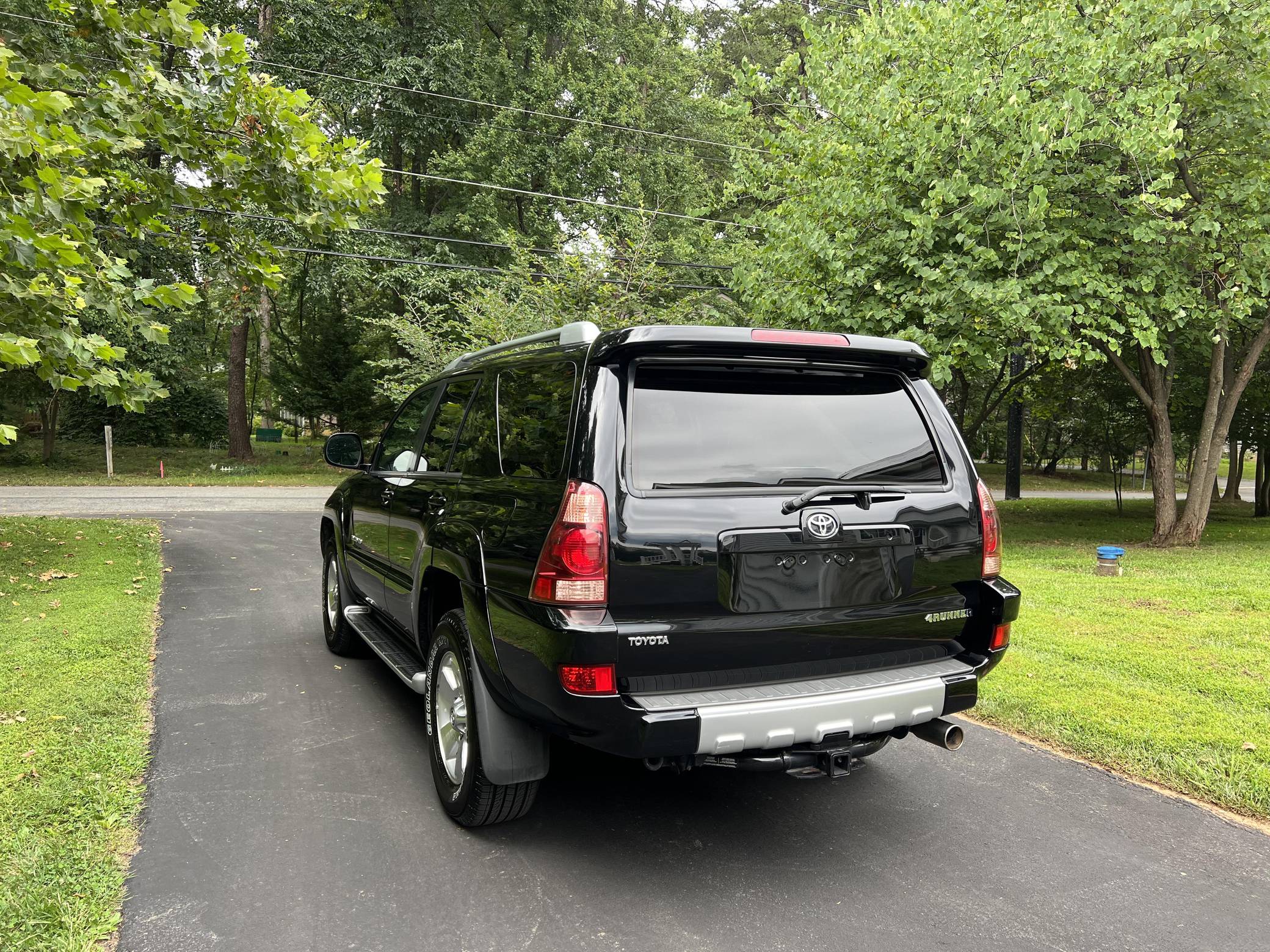 2004 Toyota 4Runner Limited 4x4, finished in black with a taupe interior. The odometer on this 4Runner currently displays approximately 61,500. A build sheet is provided in the photo gallery, and a partial list of notable equipment includes the Preferred Accessory Package, 17-inch wheels, a locking center differential, Downhill Assist Control, Hill Start Assist Control, front fog lights, running boards, roof rails, a power-operated sunroof, leather upholstery, and power-adjustable and heated front seats. The seller reports no modifications. According to service records in the gallery, the timing belt was replaced in January 2017 at 49,968 miles. The fourth-generation "N210" 4Runner arrived for the 2003 model year. It was larger, more powerful, and generally more refined than the model it replaced, and is the only 4Runner generation to be offered with a V8 engine. Toyota significantly bucked the industry's trend towards car-like crossovers and let the 4Runner keep its rugged body-on-frame construction, an architecture later shared with the FJ Cruiser. Production ended in 2009. Power comes from a "2UZ-FE" 4. 7-liter V8, rated at 235 horsepower and 320 lb-ft of torque. Output is sent to all four wheels via a 5-speed automatic transmission and a full-time four-wheel drive system and 2-speed transfer case.