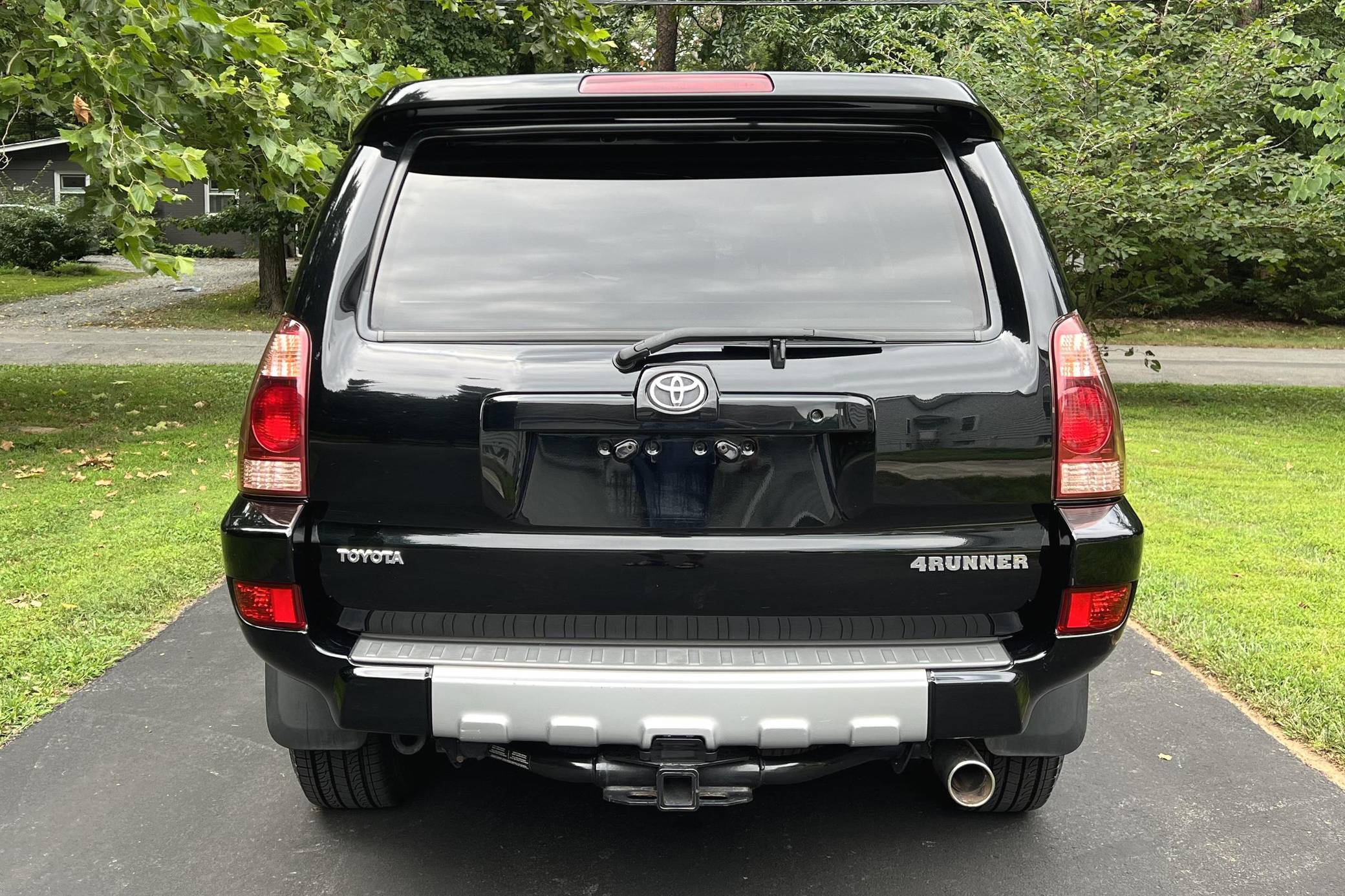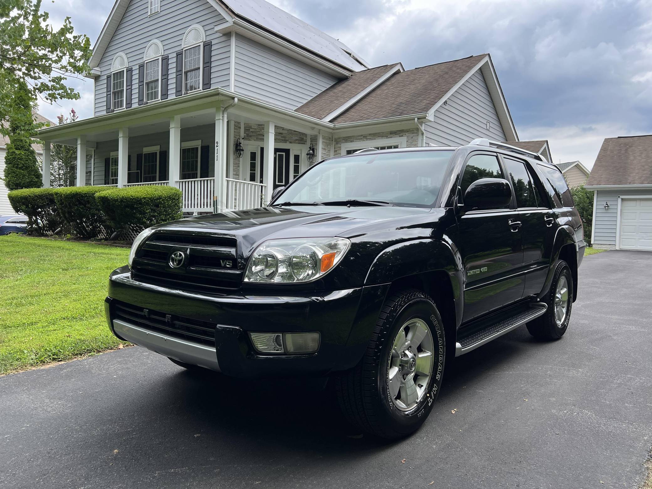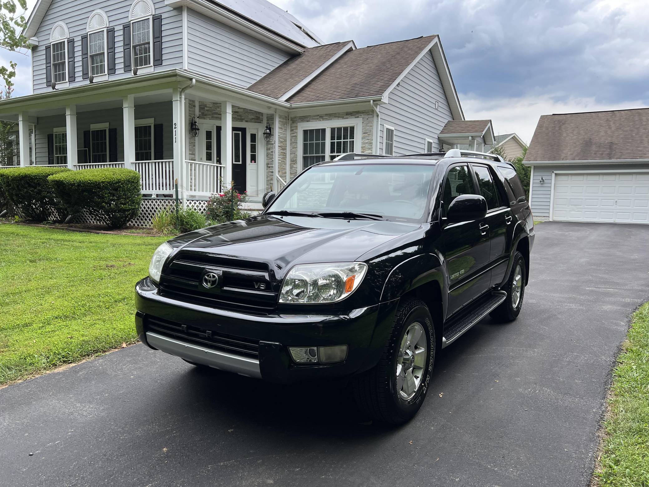 2004 Toyota 4Runner Limited 4x4, finished in black with a taupe interior. The odometer on this 4Runner currently displays approximately 61,500. A build sheet is provided in the photo gallery, and a partial list of notable equipment includes the Preferred Accessory Package, 17-inch wheels, a locking center differential, Downhill Assist Control, Hill Start Assist Control, front fog lights, running boards, roof rails, a power-operated sunroof, leather upholstery, and power-adjustable and heated front seats. The seller reports no modifications. According to service records in the gallery, the timing belt was replaced in January 2017 at 49,968 miles. The fourth-generation "N210" 4Runner arrived for the 2003 model year. It was larger, more powerful, and generally more refined than the model it replaced, and is the only 4Runner generation to be offered with a V8 engine. Toyota significantly bucked the industry's trend towards car-like crossovers and let the 4Runner keep its rugged body-on-frame construction, an architecture later shared with the FJ Cruiser. Production ended in 2009. Power comes from a "2UZ-FE" 4. 7-liter V8, rated at 235 horsepower and 320 lb-ft of torque. Output is sent to all four wheels via a 5-speed automatic transmission and a full-time four-wheel drive system and 2-speed transfer case.
