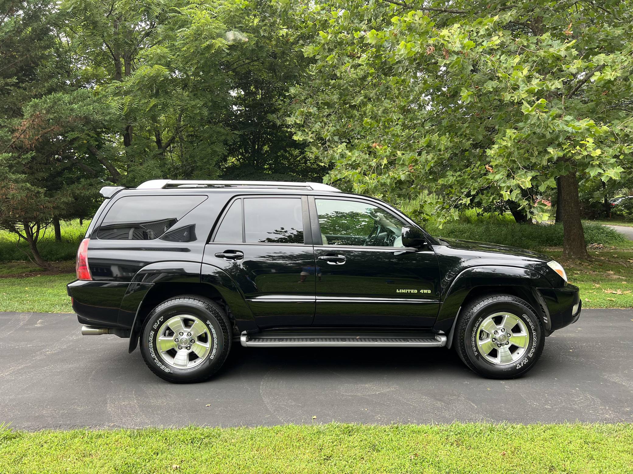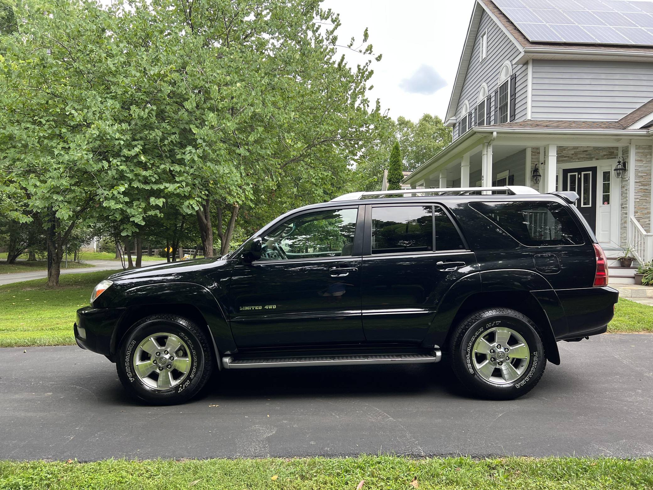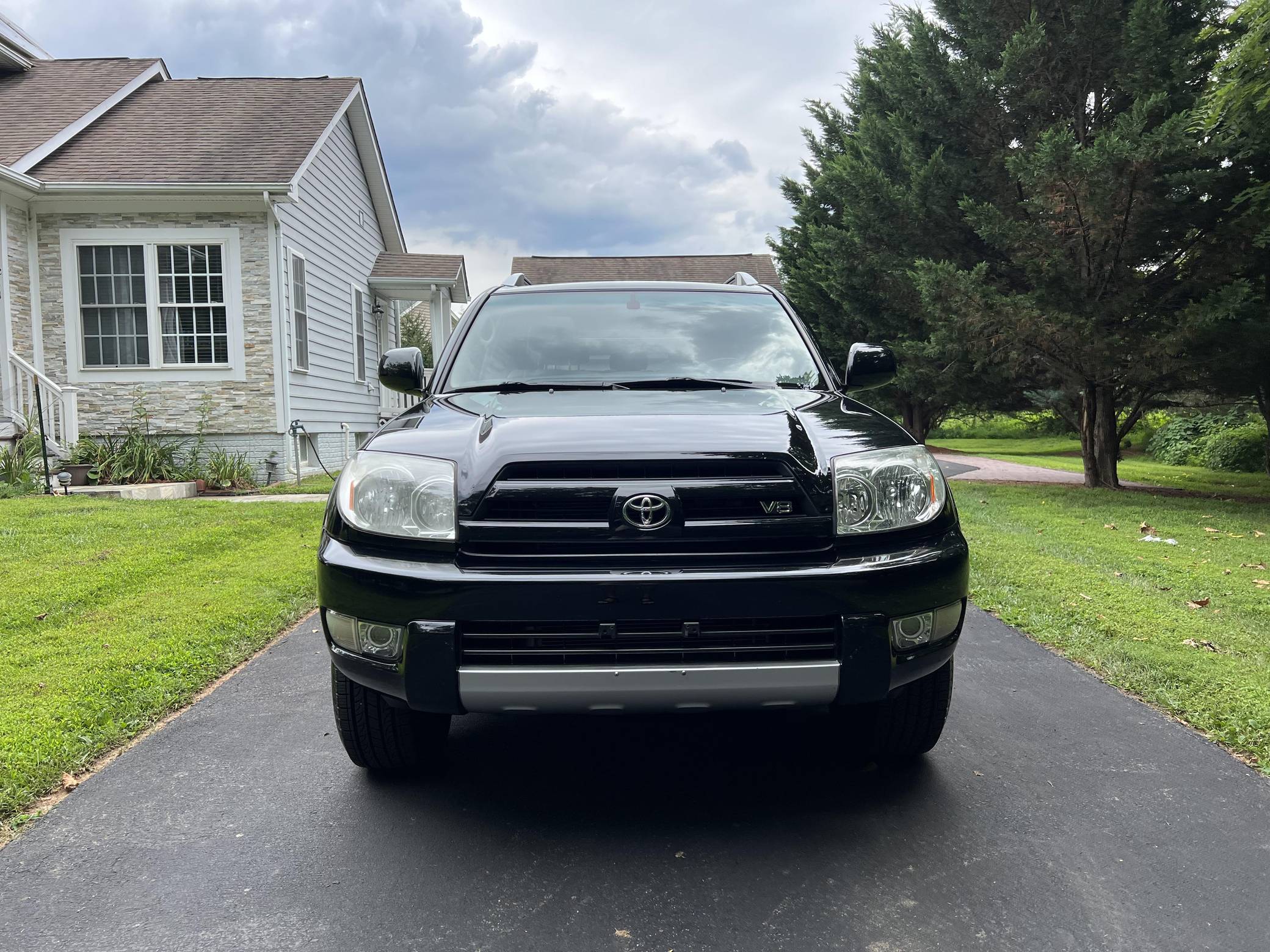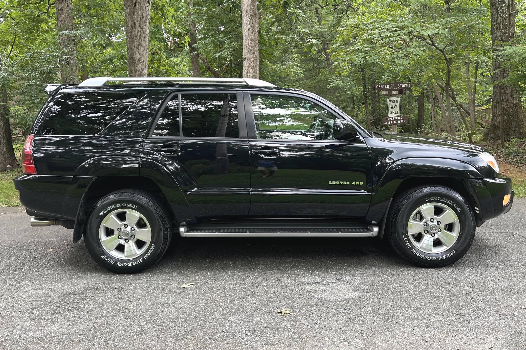 2004 Toyota 4Runner Limited 4x4, finished in black with a taupe interior. The odometer on this 4Runner currently displays approximately 61,500. A build sheet is provided in the photo gallery, and a partial list of notable equipment includes the Preferred Accessory Package, 17-inch wheels, a locking center differential, Downhill Assist Control, Hill Start Assist Control, front fog lights, running boards, roof rails, a power-operated sunroof, leather upholstery, and power-adjustable and heated front seats. The seller reports no modifications. According to service records in the gallery, the timing belt was replaced in January 2017 at 49,968 miles. The fourth-generation "N210" 4Runner arrived for the 2003 model year. It was larger, more powerful, and generally more refined than the model it replaced, and is the only 4Runner generation to be offered with a V8 engine. Toyota significantly bucked the industry's trend towards car-like crossovers and let the 4Runner keep its rugged body-on-frame construction, an architecture later shared with the FJ Cruiser. Production ended in 2009. Power comes from a "2UZ-FE" 4. 7-liter V8, rated at 235 horsepower and 320 lb-ft of torque. Output is sent to all four wheels via a 5-speed automatic transmission and a full-time four-wheel drive system and 2-speed transfer case.