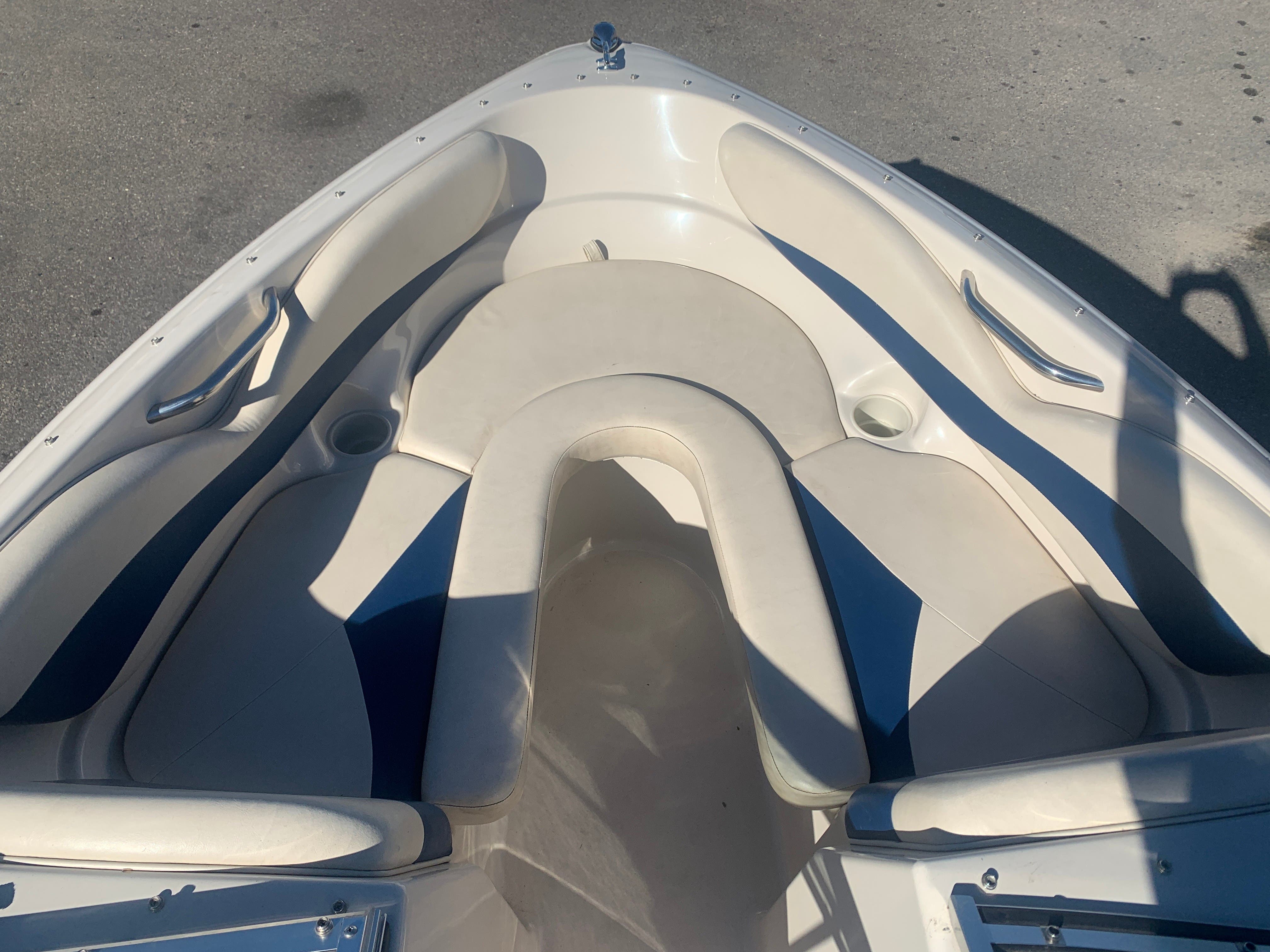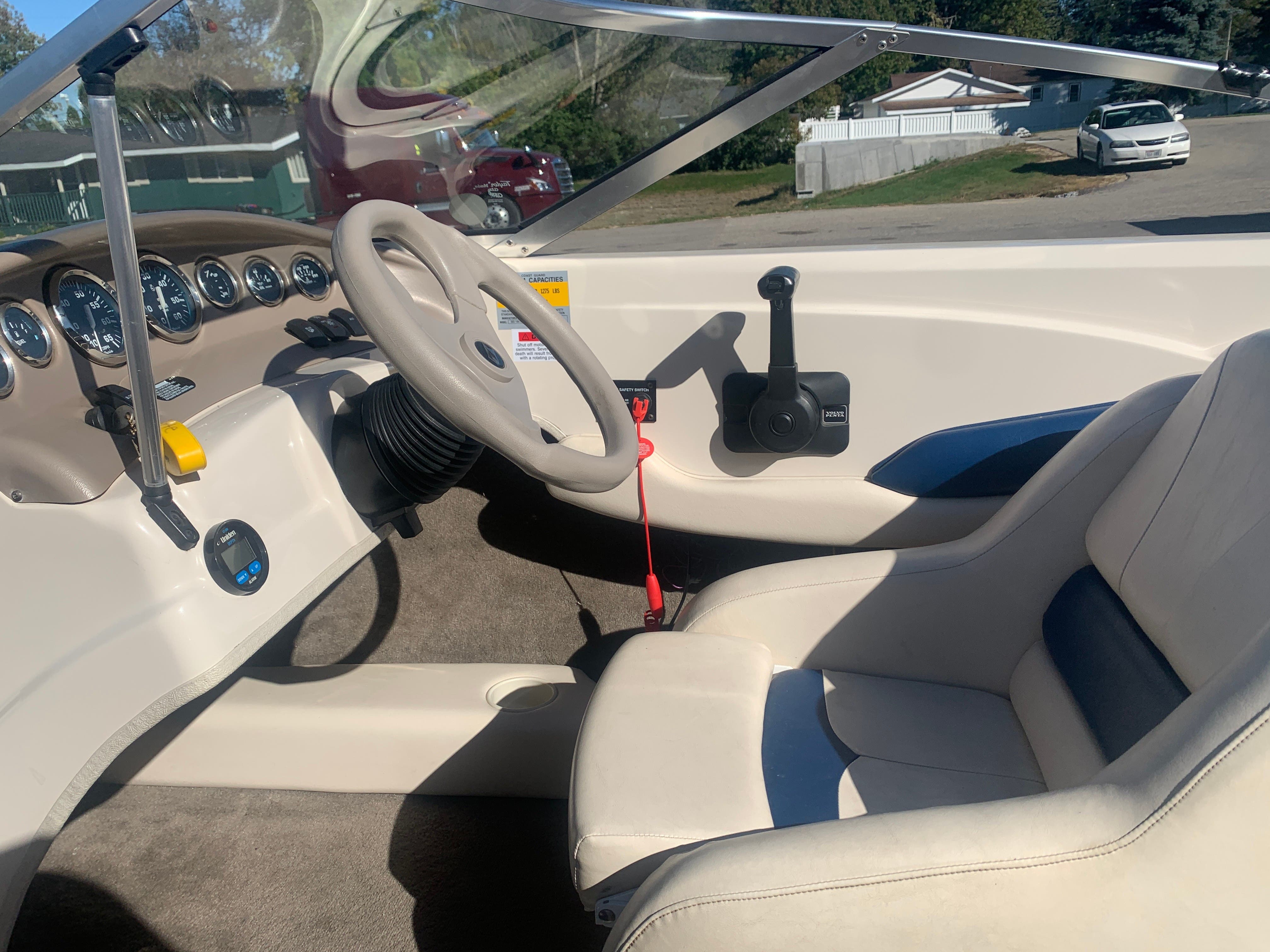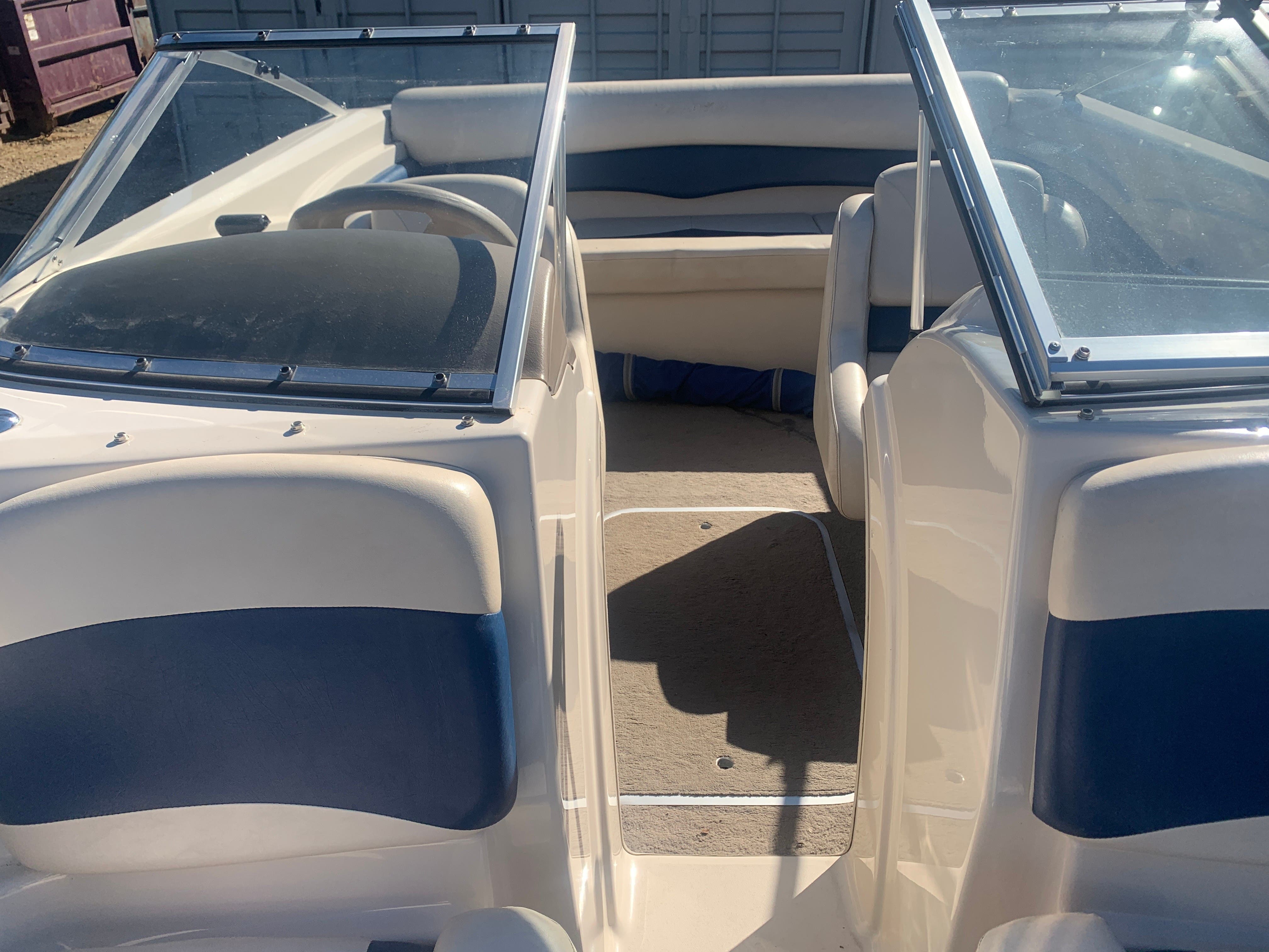 The Larson SEI 180 is a boat with enough performance to satisfy the thrill-seekers and water-toy addicts, plus enough room to carry a family and their gear in seaworthy safety and comfort. It is also simple enough and strong enough to endure years of service and is compact and light enough to be stored on its own trailer. Probably the outstanding feature of the SEI 180 is its generous freeboard. When you sit well down in the SEI the surrounding sides of the boat impart a feeling of safety and confidence, and “this boat feels bigger than it is.” This 180 presents in very good condition and water skiers will be especially pleased by the SEI’s brisk acceleration, thanks to the 190 horses of the 4.3L V6 engine which is helped along by Larson’s famous Delta-Conic hull shape. Bimini top, AM/FM/Cd Alpine stereo system w/ 2 speakers, Integrated swim platform w/ stern access ladder, Sport seating w/ helm pedestal bucket seats & aft rear lounge, Rear sun lounge, Power steering, Cockpit carpet, Hydrofoil, In-floor storage locker, Under-seat bow & aft storage, Single axle trailer.