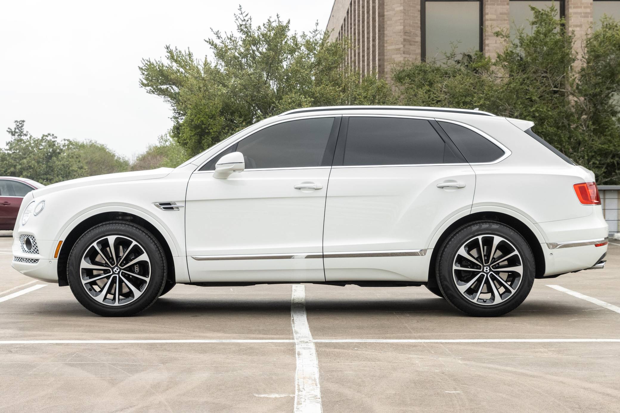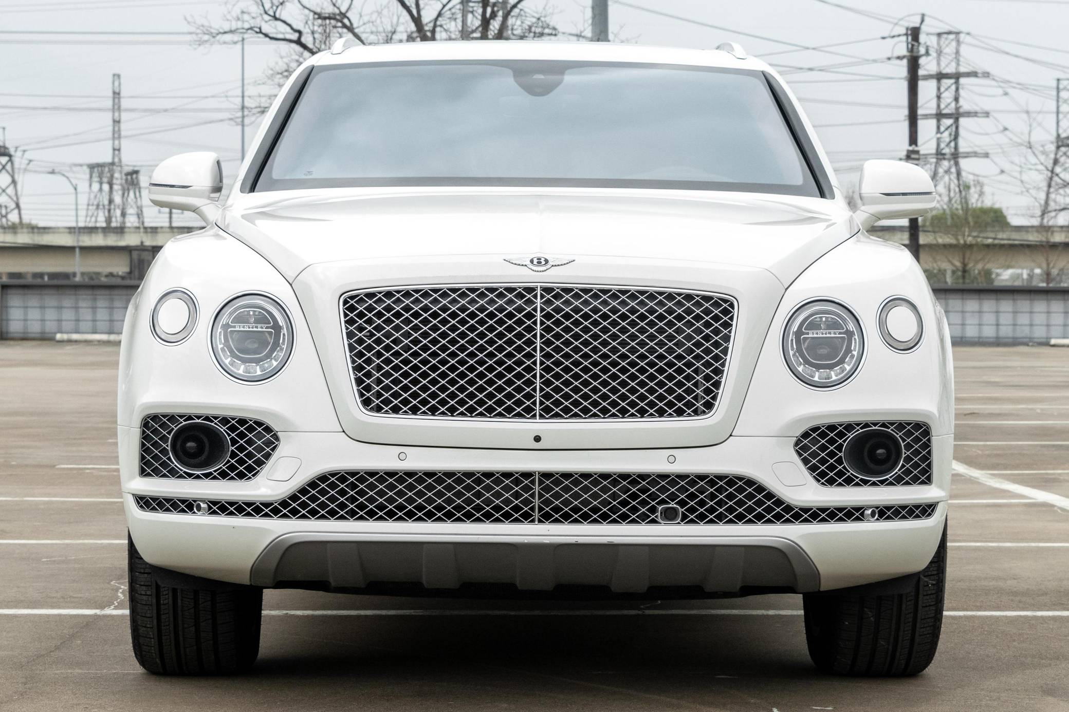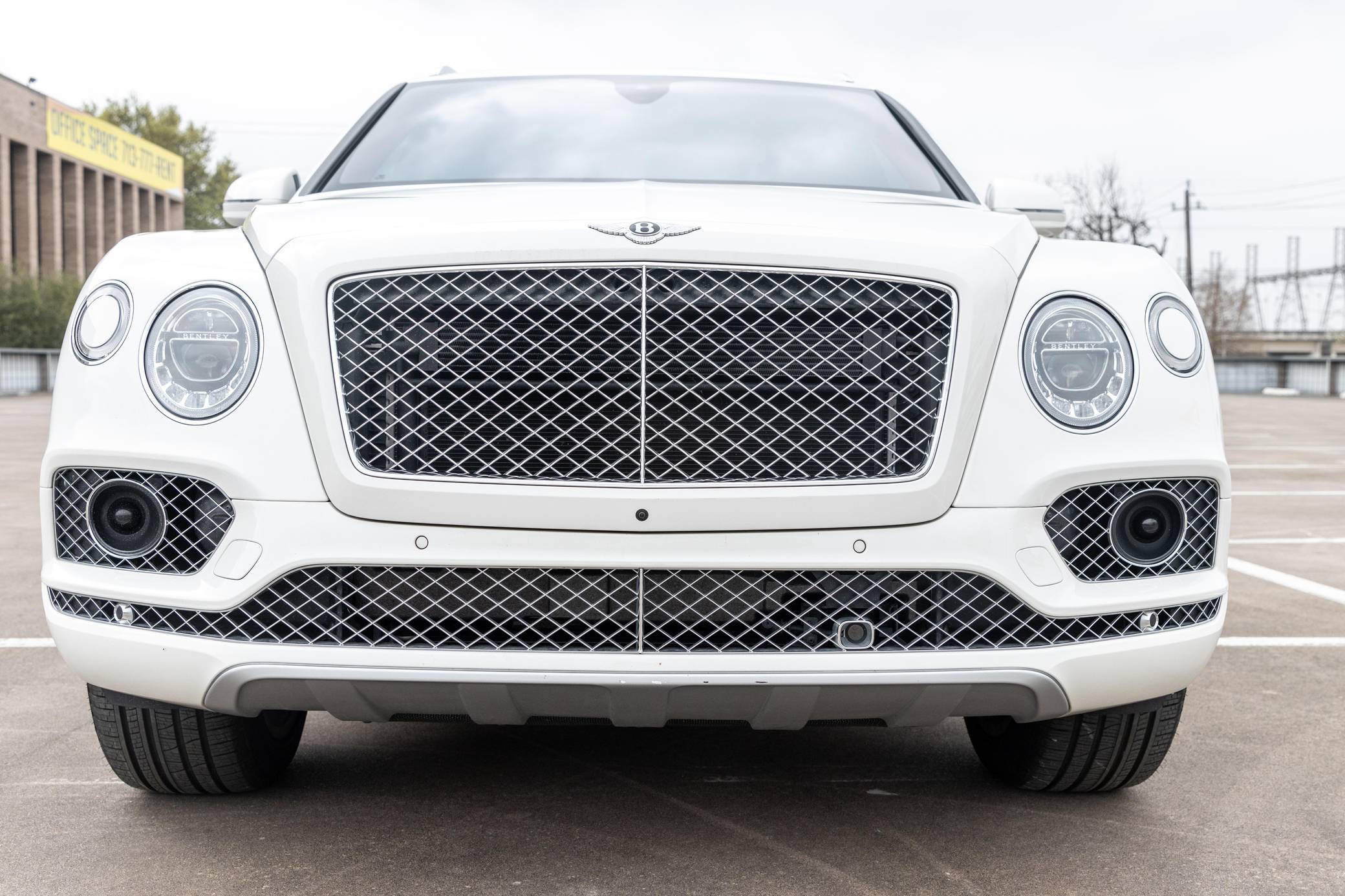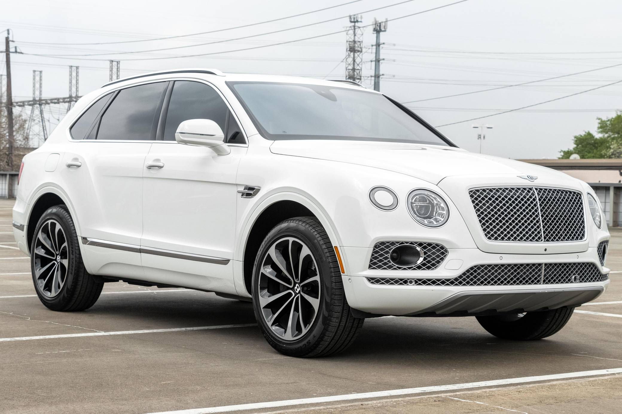 2017 Bentley Bentayga, finished in Glacier White with a red interior. The odometer on this Bentayga currently displays approximately 14,100 miles. A partial list of notable equipment includes the Touring specification, the Four Seat Comfort Specification, 21-inch wheels, 4-corner auto-leveling suspension, a heated steering wheel, a rear-seat entertainment system, and more as detailed below. Modifications are limited to tinted windows. An evolution of the 2012 Bentley "EXP 9 F" concept car, the production Bentayga debuted at the Frankfurt Motor Show in September 2015 as Bentley's first ultra-luxury SUV. It was built on the "PL73" version of Volkswagen Group's "MLB" platform architecture that also underpins the Audi Q7. Other than the massive engine difference, the Bentayga also has its own unique suspension and brakes. With the exterior and interior designed in-house at Crewe, Bentley claims that about 80% of the car is completely unique to Bentley. Power comes from a 6. 0-liter twin-turbocharged W12 engine, which produces 600 horsepower and 664 lb-ft of torque. It delivers power to all four wheels via an 8-speed ZF automatic transmission.
