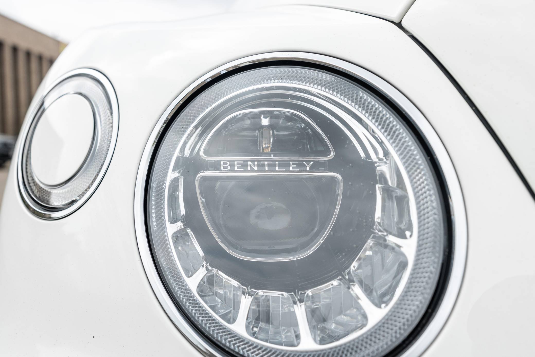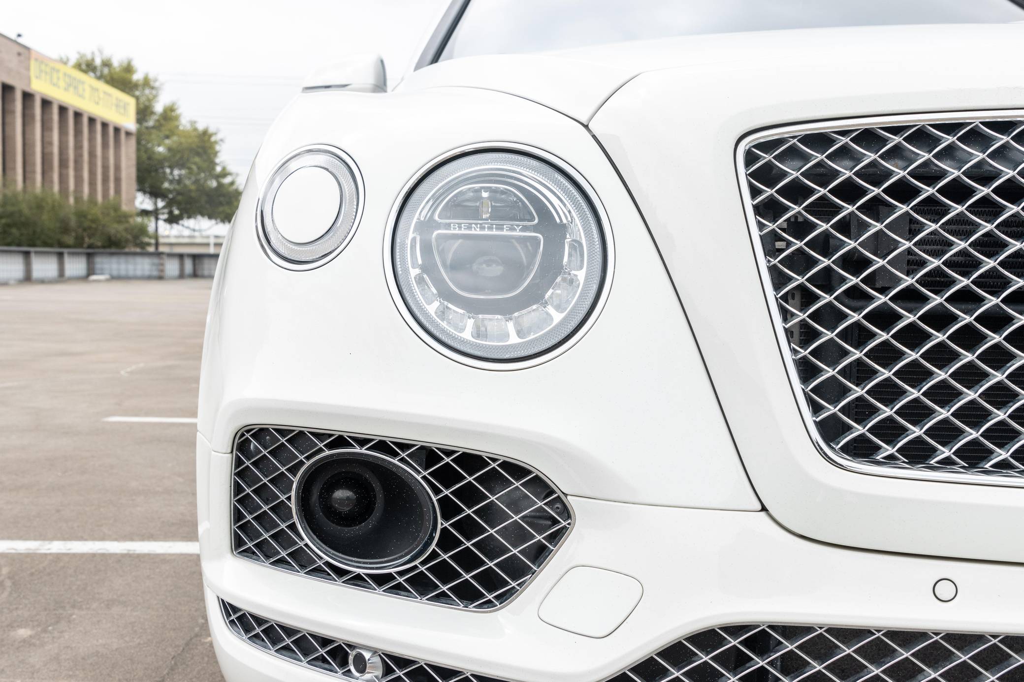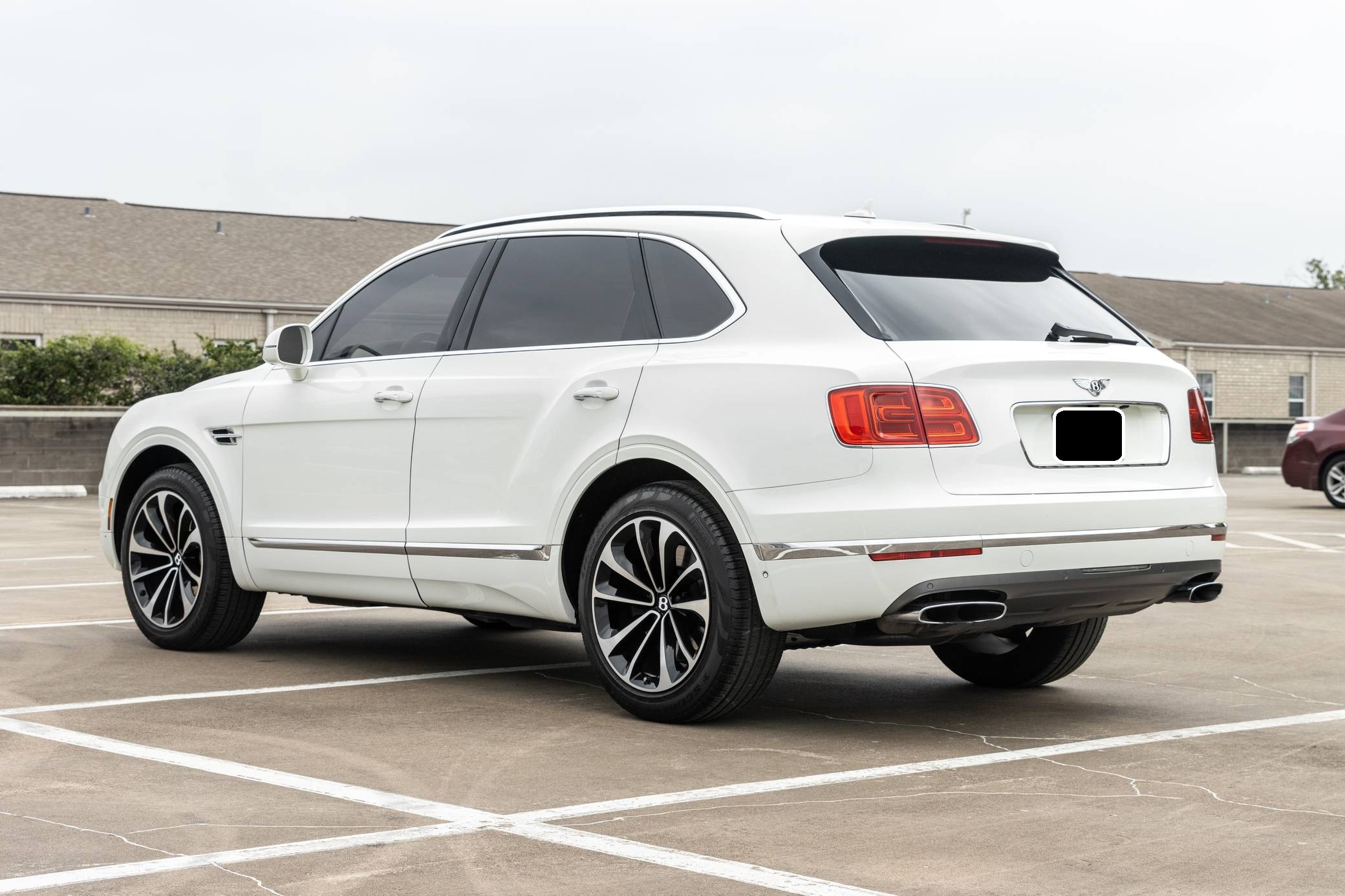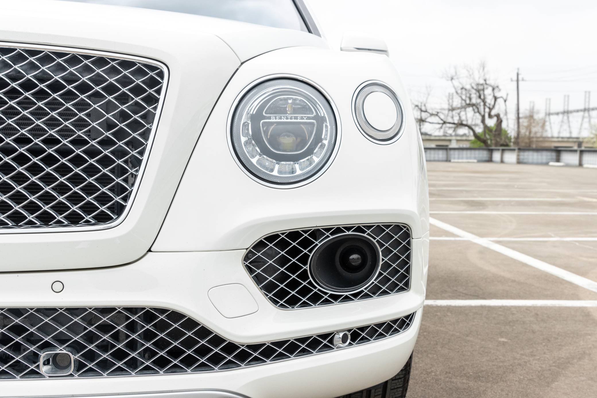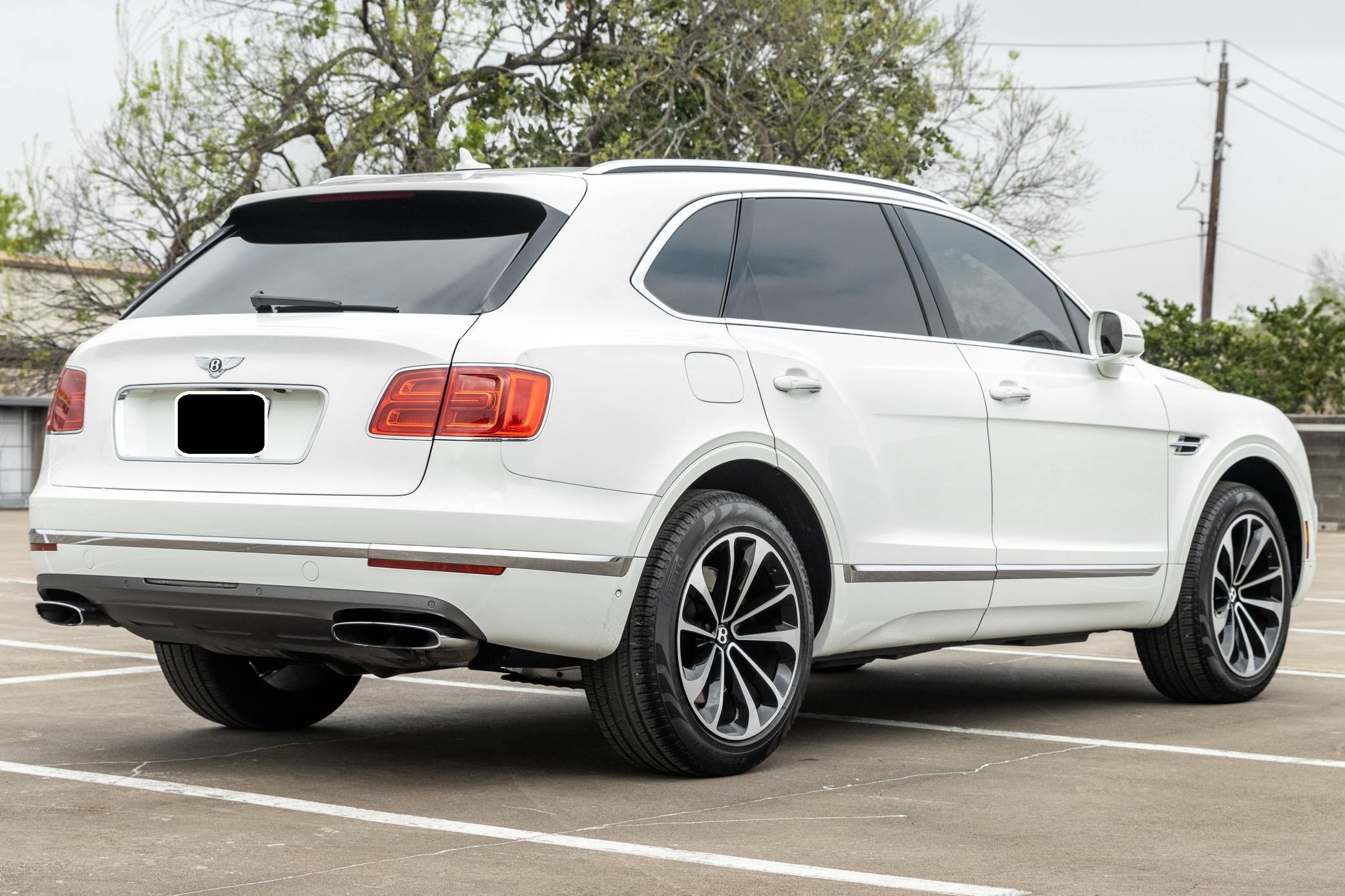 2017 Bentley Bentayga, finished in Glacier White with a red interior. The odometer on this Bentayga currently displays approximately 14,100 miles. A partial list of notable equipment includes the Touring specification, the Four Seat Comfort Specification, 21-inch wheels, 4-corner auto-leveling suspension, a heated steering wheel, a rear-seat entertainment system, and more as detailed below. Modifications are limited to tinted windows. An evolution of the 2012 Bentley "EXP 9 F" concept car, the production Bentayga debuted at the Frankfurt Motor Show in September 2015 as Bentley's first ultra-luxury SUV. It was built on the "PL73" version of Volkswagen Group's "MLB" platform architecture that also underpins the Audi Q7. Other than the massive engine difference, the Bentayga also has its own unique suspension and brakes. With the exterior and interior designed in-house at Crewe, Bentley claims that about 80% of the car is completely unique to Bentley. Power comes from a 6. 0-liter twin-turbocharged W12 engine, which produces 600 horsepower and 664 lb-ft of torque. It delivers power to all four wheels via an 8-speed ZF automatic transmission.