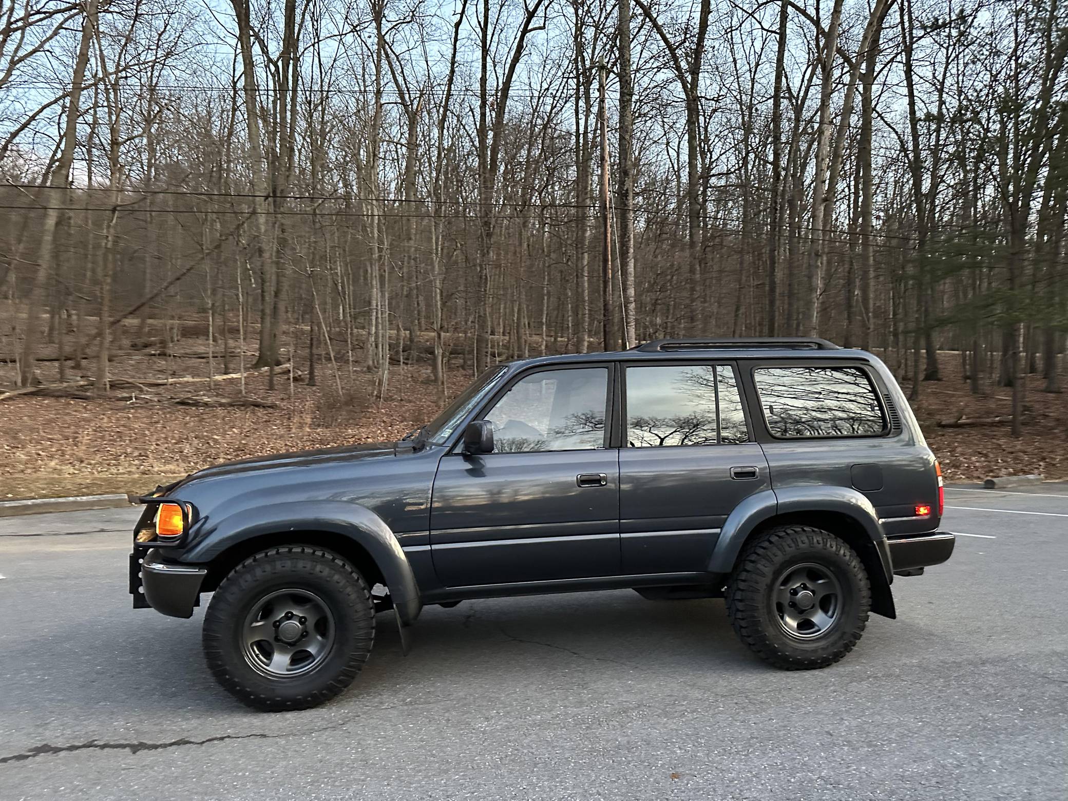 THIS. . . is a 1994 Toyota Land Cruiser, finished in Blue Slate Metallic with a Dark Charcoal interior. Equipment includes 16-inch wheels, a locking center differential, a roof rack, sunroof, cloth upholstery, third-row seats, power windows, locks, and mirrors, and more as detailed below. Modifications reported by the seller include a brush guard, painted OEM wheels, oversized Goodyear tires, and a Boss Audio head unit with aftermarket speakers. Released for 1991, the 80-Series is the first Land Cruiser to firmly plant its flag in the luxury segment. It was bigger than its predecessor, it gained a more aerodynamic design, and it offered better materials inside. It nonetheless kept what adventurers loved about the Land Cruiser: solid axles, a 2-speed transfer case, and a generous amount of ground clearance. Power comes from a 4. 5-liter straight-6, rated at 212 horsepower and 275 lb-ft of torque. Output is directed to all four wheels through a 4-speed automatic transmission.