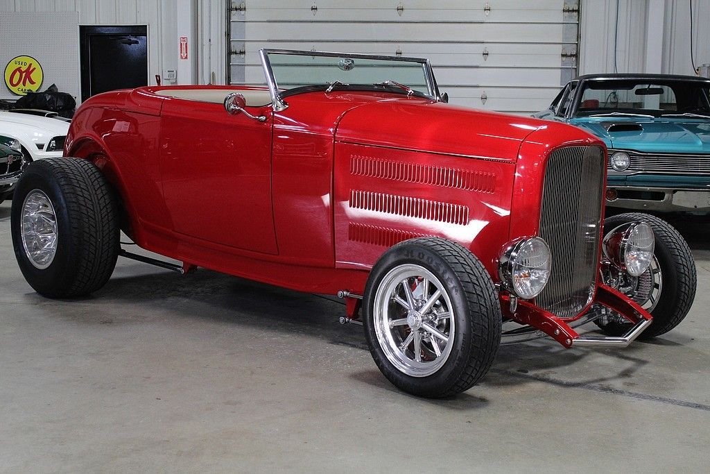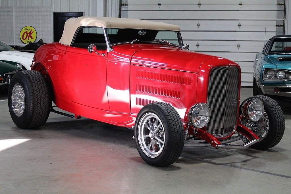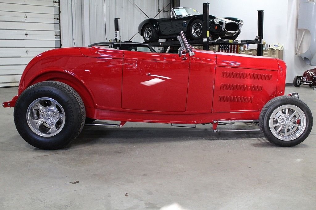 We all know that the iconic 1932 through 1934 Fords are almost always notorious with Hot Rods as we know it. They did not always start off as the modern Hot Rod versions we see today. In fact they became popular right after WWII because so many were built and they were becoming cheap used cars for the for the Heroes of the war to come home to and build something fast and exciting. Most newly built rods are fiberglass, use modern drivetrains and have expensive leather interiors in them. In-fact there are several businesses that make a living based on just building replica bodies. One of the most iconic body builders and multiple Hot-Rod trophy winners is Downs Performance. There quality is excellent and they truly love the hobby of building Hot-Rods. This beautiful example is sporting a modern drivetrain with fuel injection that starts and drives perfectly. It also features power doors, locks and rear trunk all accessible by remote. The convertible top is very high quality that operates perfectly and does not leak. The air conditioning will keep you nice in cool on those hot days of cruising. It also has a excellent sound system. This roadster is a high quality build that is priced at a fraction of the cost when new.