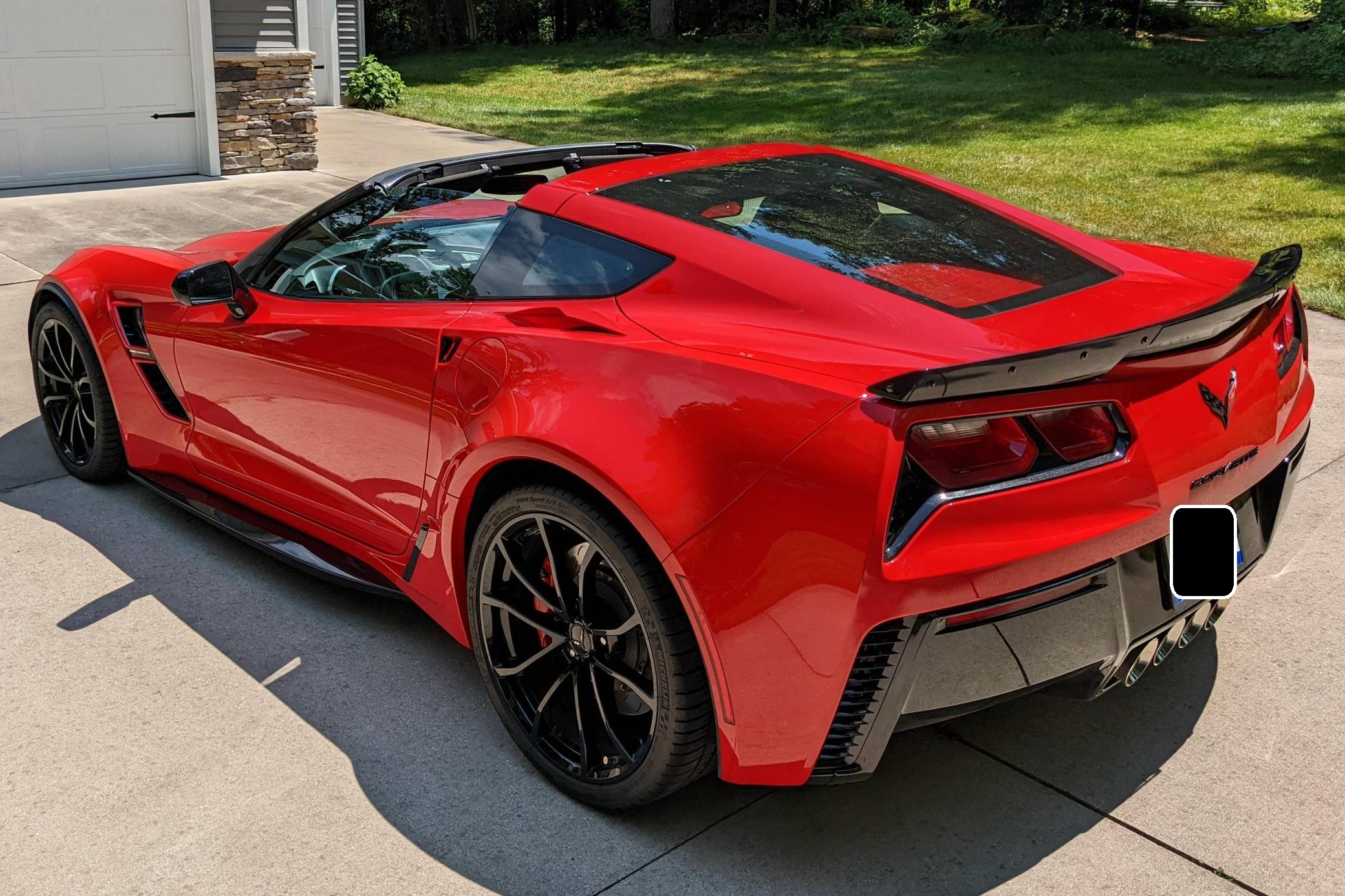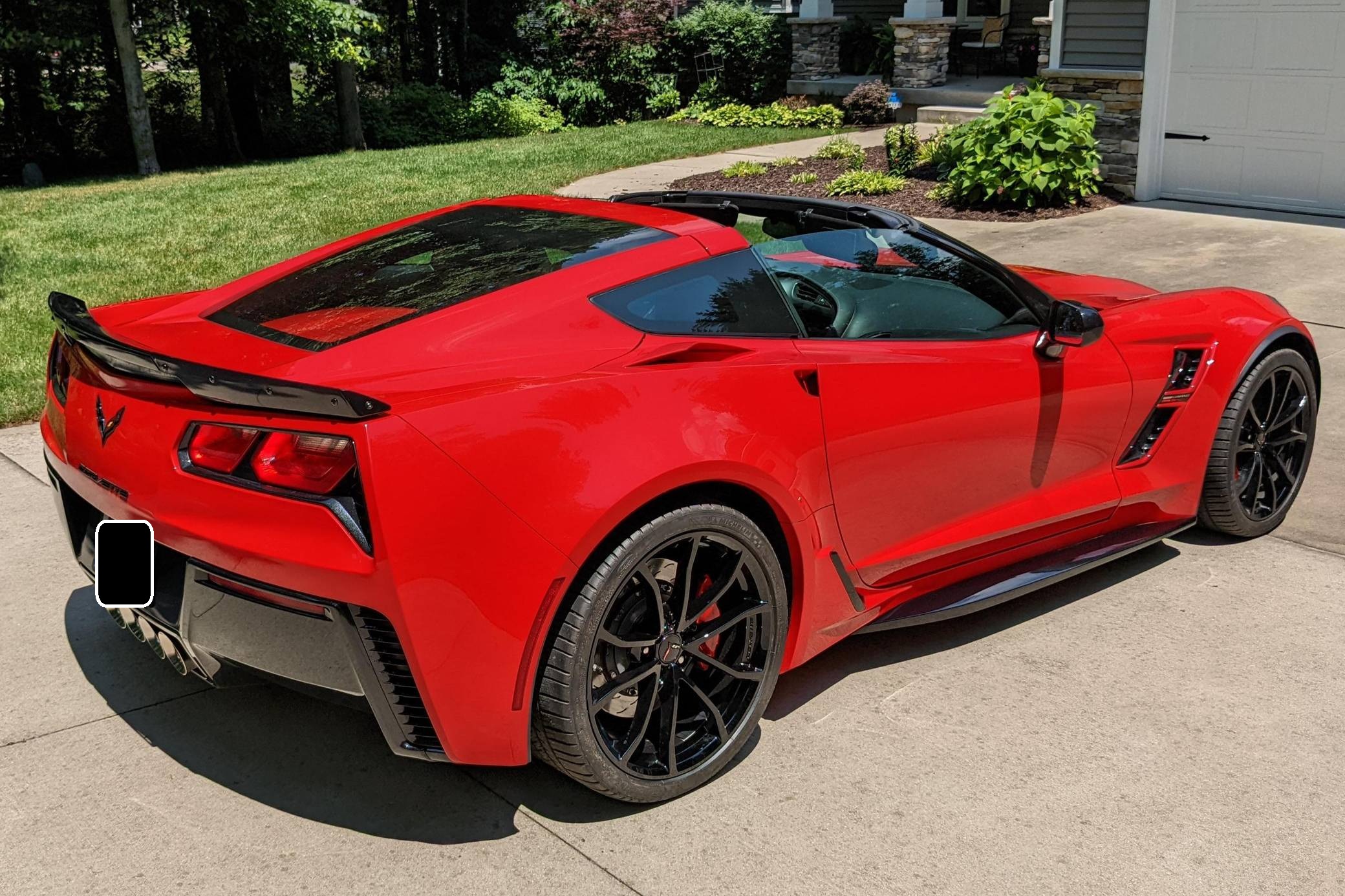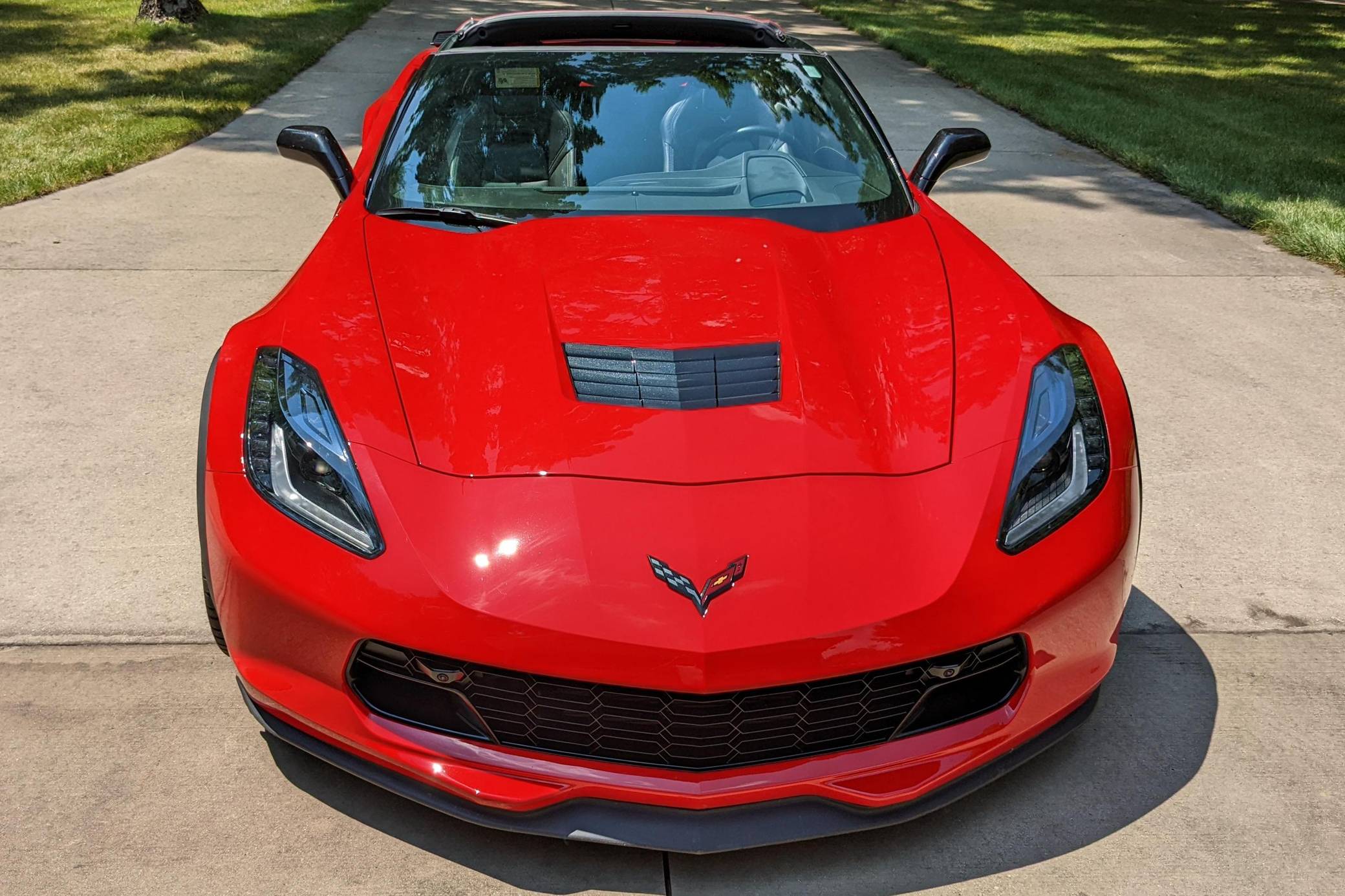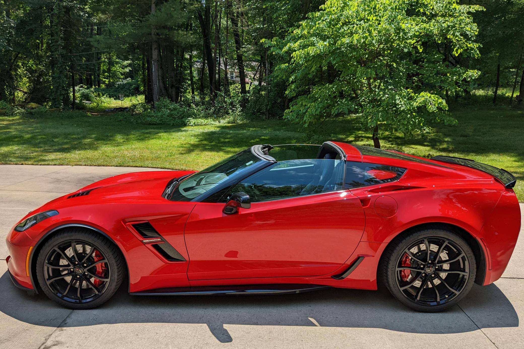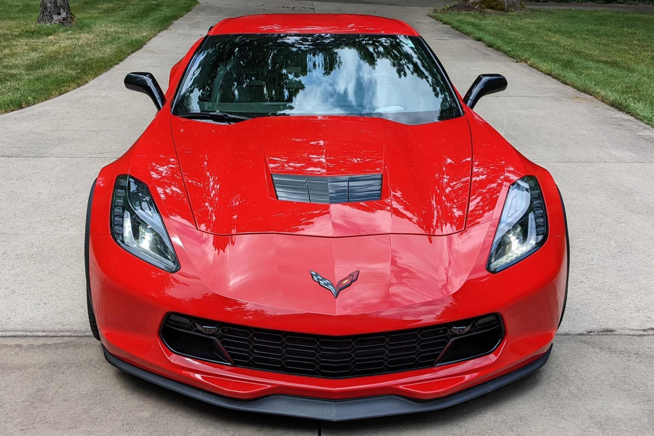 2018 Chevrolet Corvette Grand Sport Coupe, finished in Torch Red with a Jet Black interior. The odometer currently indicates approximately 12,000 miles. Equipped with the 2LT Package, 19-inch front and 20-inch rear wheels, Magnetic Ride Control suspension, a performance exhaust system, a removable roof panel, leather upholstery, a touchscreen infotainment system with Apple CarPlay and Android Auto capabilities, a performance data and video recorder, and more as detailed below. Modifications reported by the seller are limited to paint protection film. Chevrolet launched the seventh-generation "C7" Corvette for the 2014 model year. It offered a more user-friendly interior, a sharper-looking exterior design, and, significantly, the then-new "LT1" small-block V8. Released for 2017, the Grand Sport was a track-bred model positioned near the middle of the range. It offered enthusiasts Z06-like wide body panels, a naturally-aspirated V8 shared with the Stingray, and performance upgrades like an electronic limited-slip differential. Power for this Corvette comes from a 6. 2-liter "LT1" V8, rated at 460 horsepower and 465 lb-ft of torque. Output is sent to the rear wheels via an 8-speed automatic transmission.