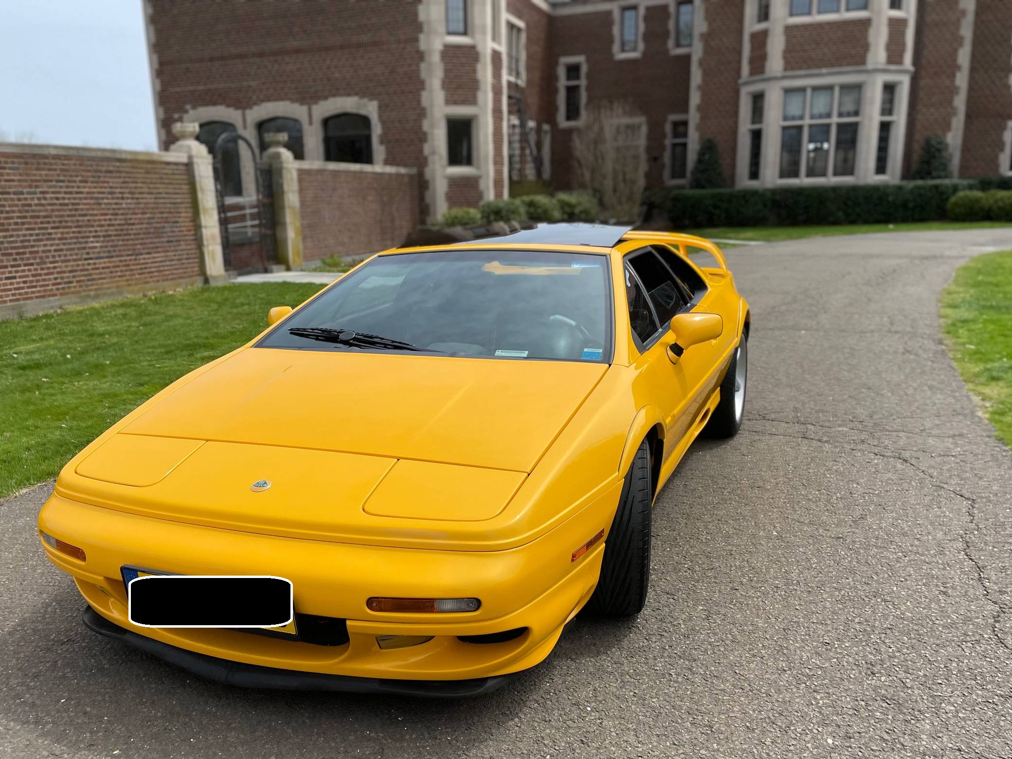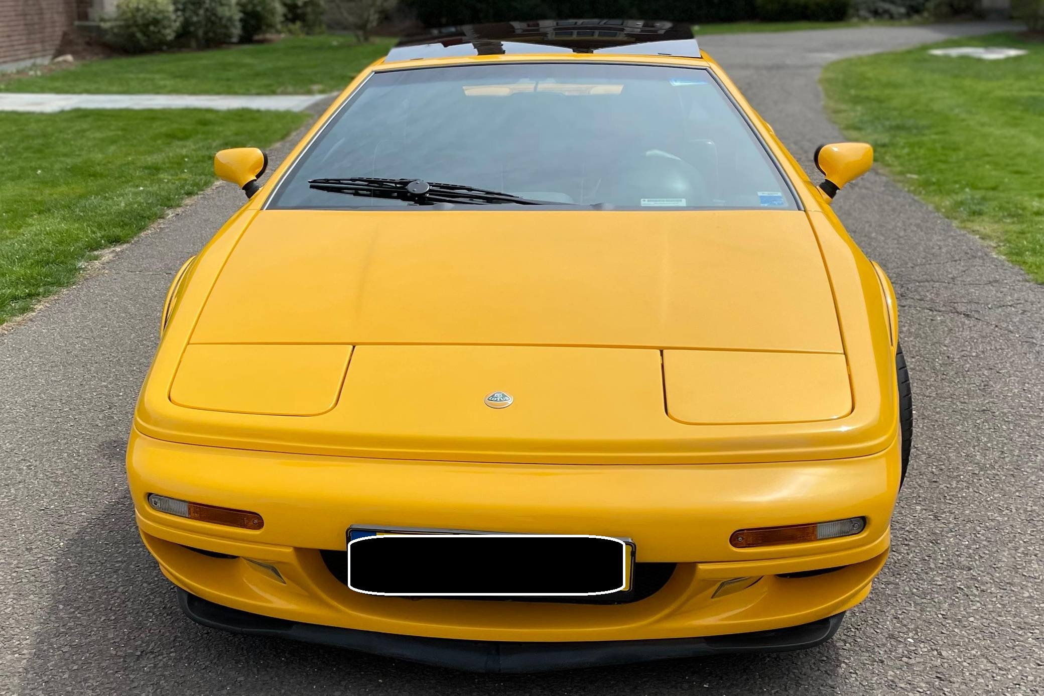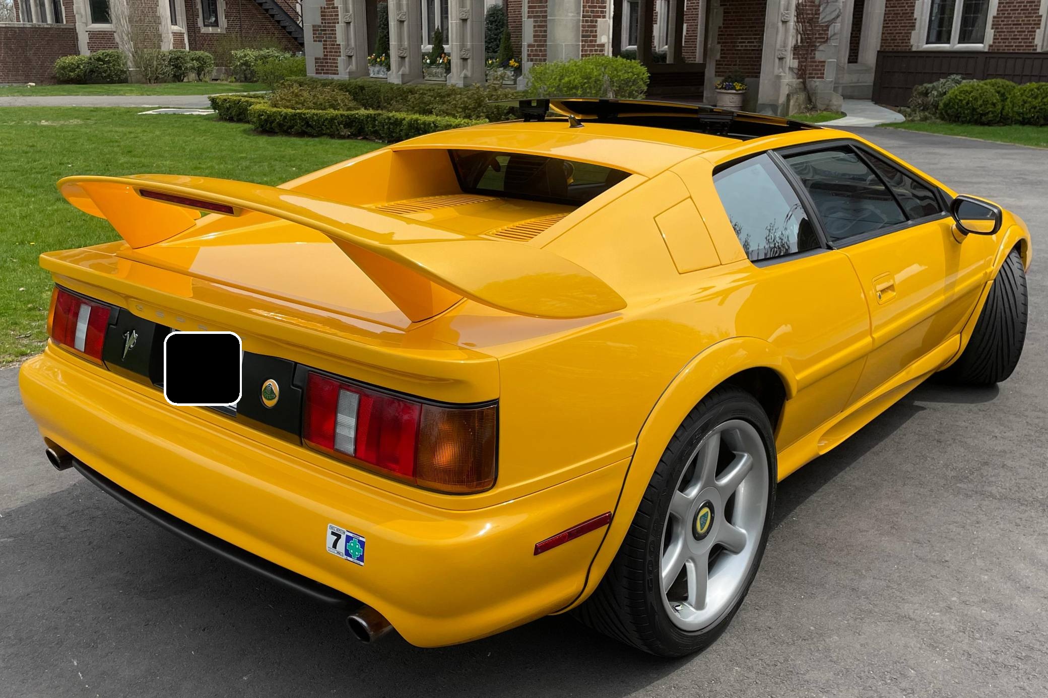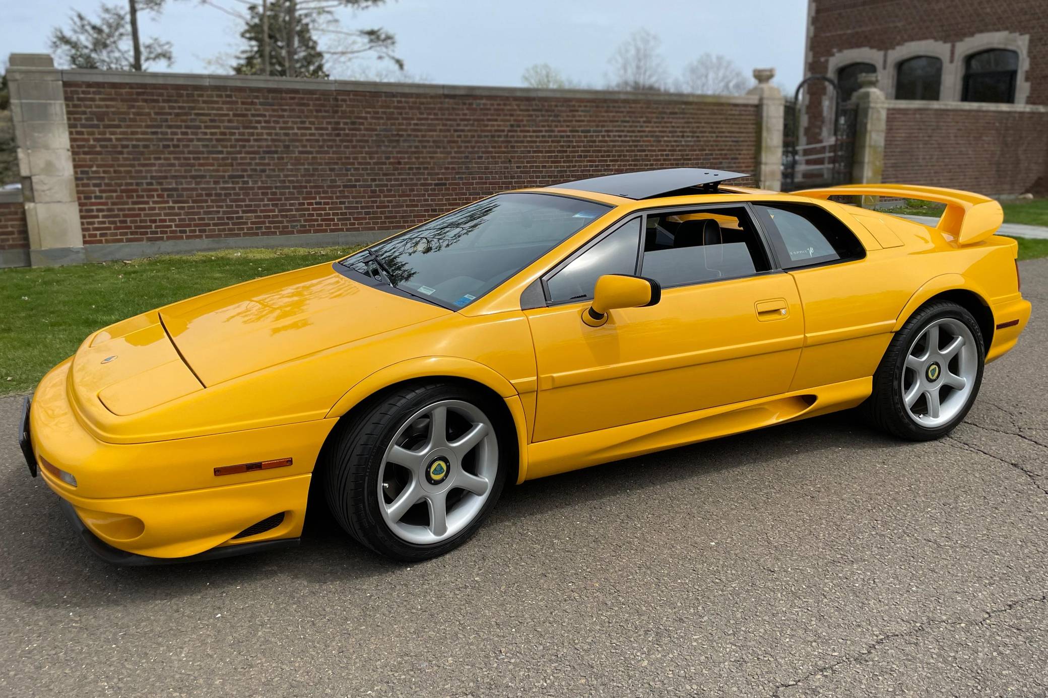 1999 Lotus Esprit V8, finished in Lotus Yellow with a black interior. Factory equipment includes 17-inch front and 18-inch rear wheels, Brembo front brake calipers, a removable roof panel, fog lights, a rear spoiler, leather upholstery, sport seats, and more listed below. The only reported modification is a Raid steering wheel. Lotus released the Esprit in 1976 and made numerous design and mechanical updates to the model over the next 28 years. Peter Stevens gave it a less angular exterior design in 1988, power steering was made standard in 1994, and the 1997 model year brought a twin-turbocharged V8 (the first in the Esprit's history) that was designed in-house. Production ended in 2004, and only a small amount were shipped to North America. Power comes from a 3. 5-liter twin-turbocharged V8, rated at 350 horsepower and 295 lb-ft of torque. Mid-mounted, it spins the rear wheels via a 5-speed manual transaxle.