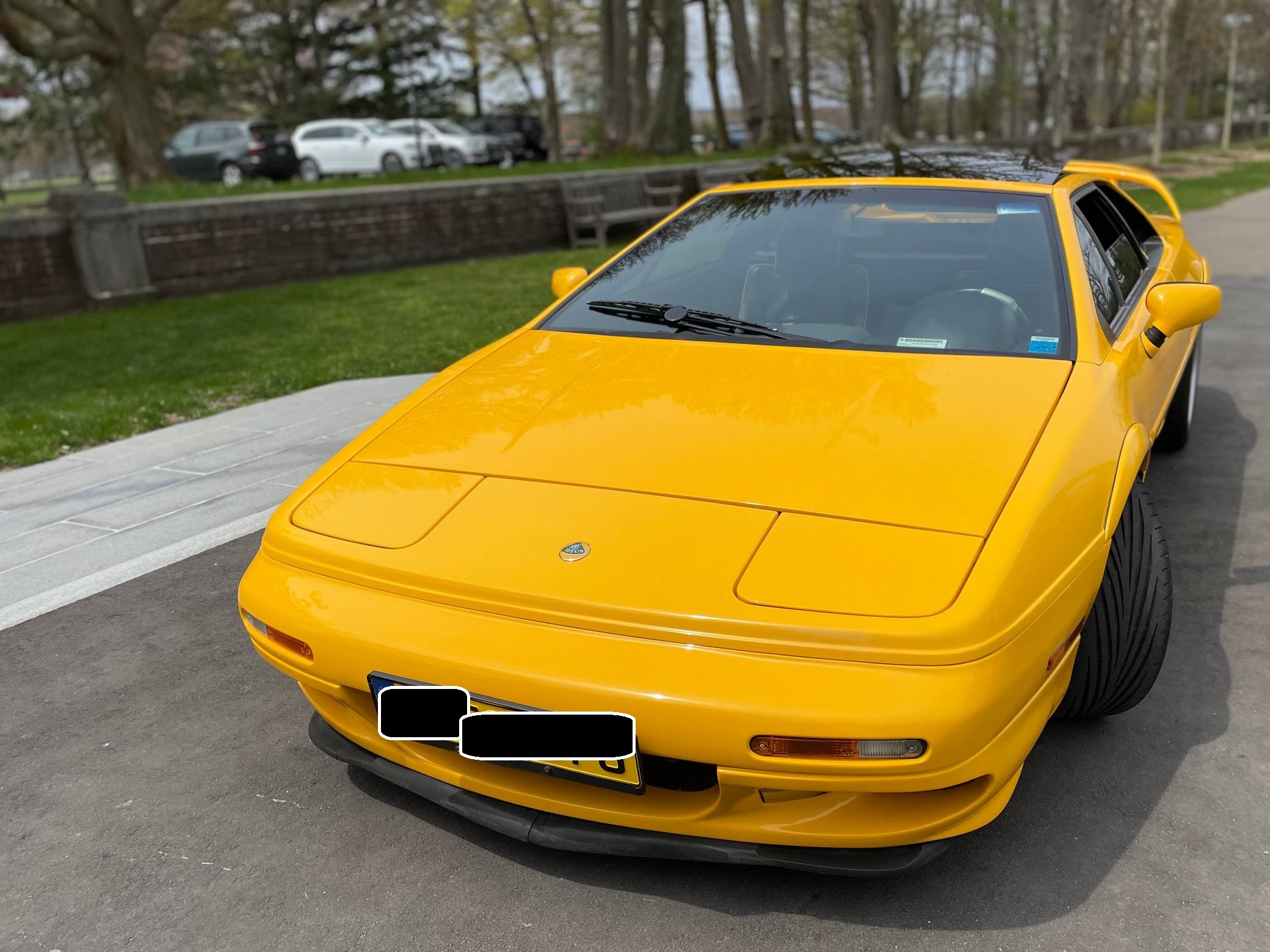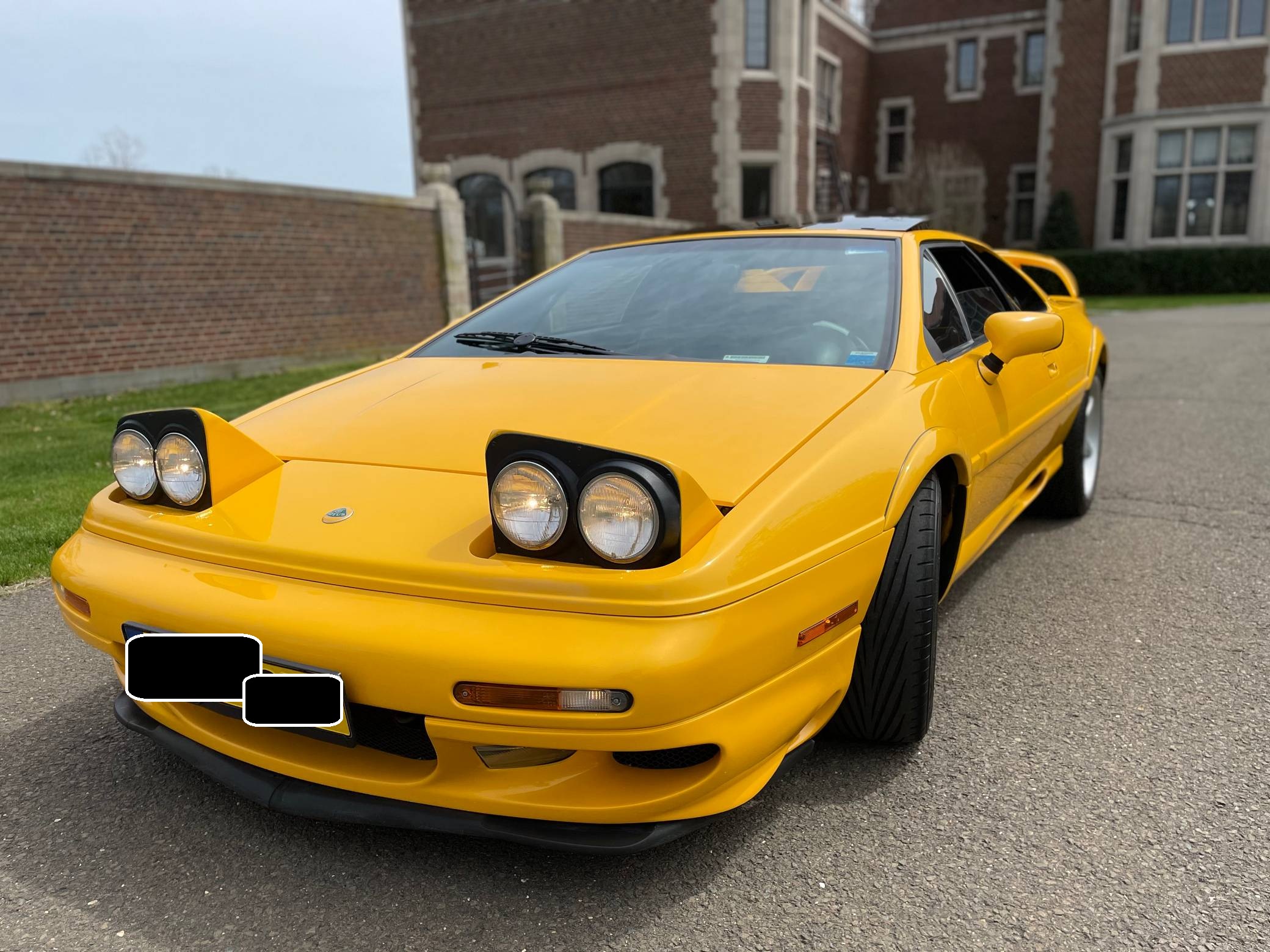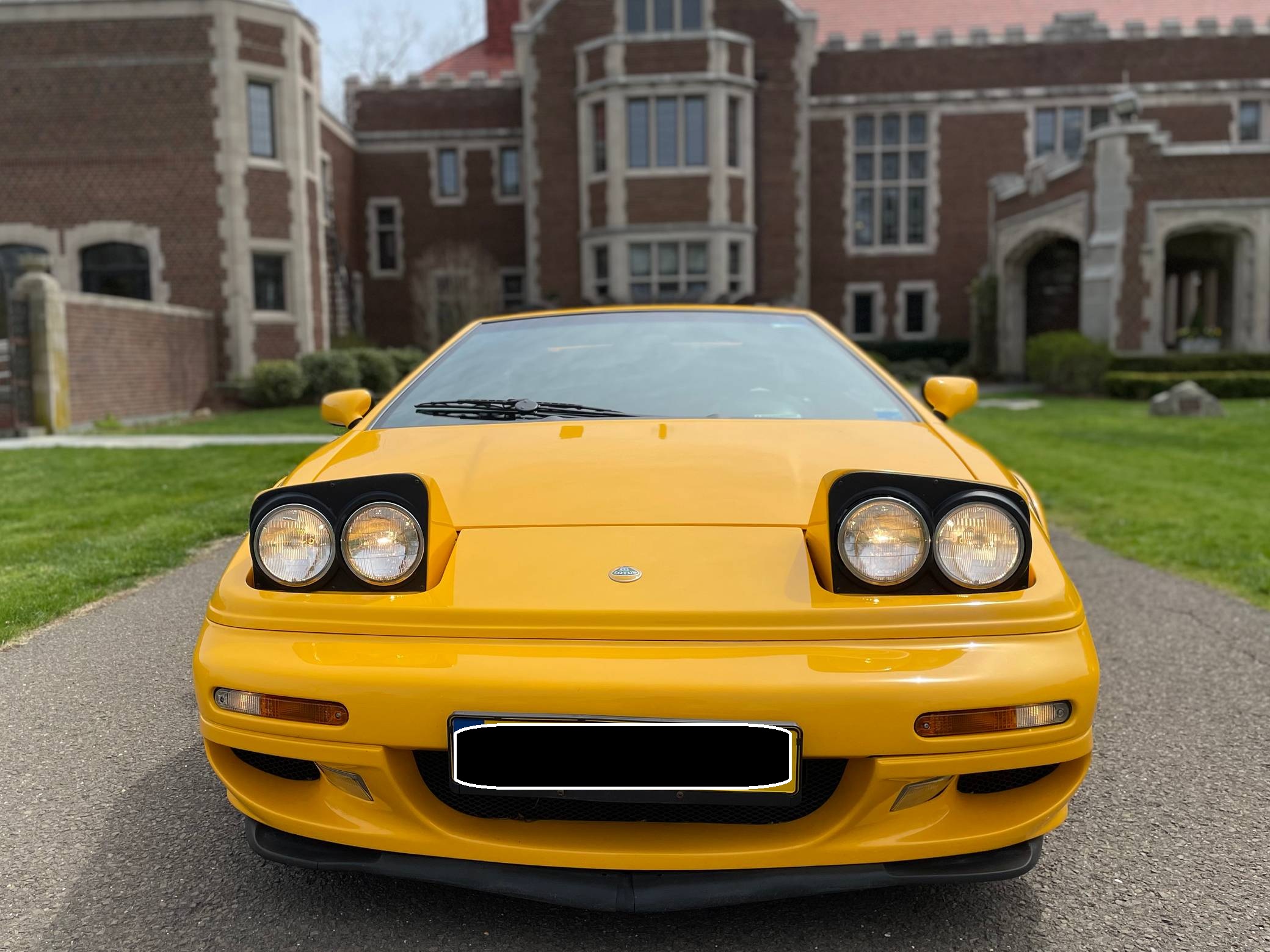 1999 Lotus Esprit V8, finished in Lotus Yellow with a black interior. Factory equipment includes 17-inch front and 18-inch rear wheels, Brembo front brake calipers, a removable roof panel, fog lights, a rear spoiler, leather upholstery, sport seats, and more listed below. The only reported modification is a Raid steering wheel. Lotus released the Esprit in 1976 and made numerous design and mechanical updates to the model over the next 28 years. Peter Stevens gave it a less angular exterior design in 1988, power steering was made standard in 1994, and the 1997 model year brought a twin-turbocharged V8 (the first in the Esprit's history) that was designed in-house. Production ended in 2004, and only a small amount were shipped to North America. Power comes from a 3. 5-liter twin-turbocharged V8, rated at 350 horsepower and 295 lb-ft of torque. Mid-mounted, it spins the rear wheels via a 5-speed manual transaxle.
