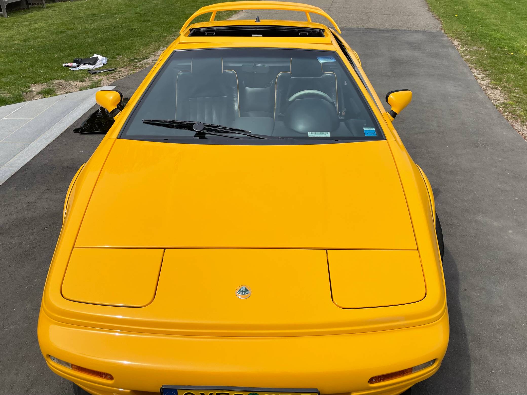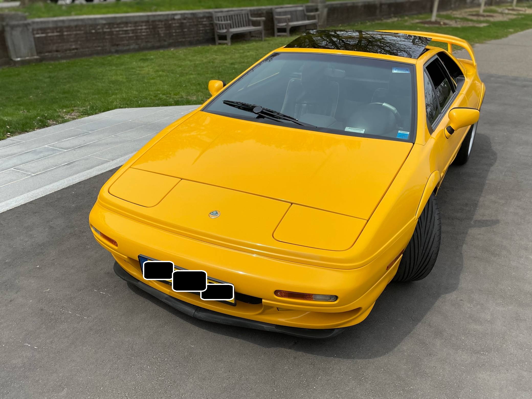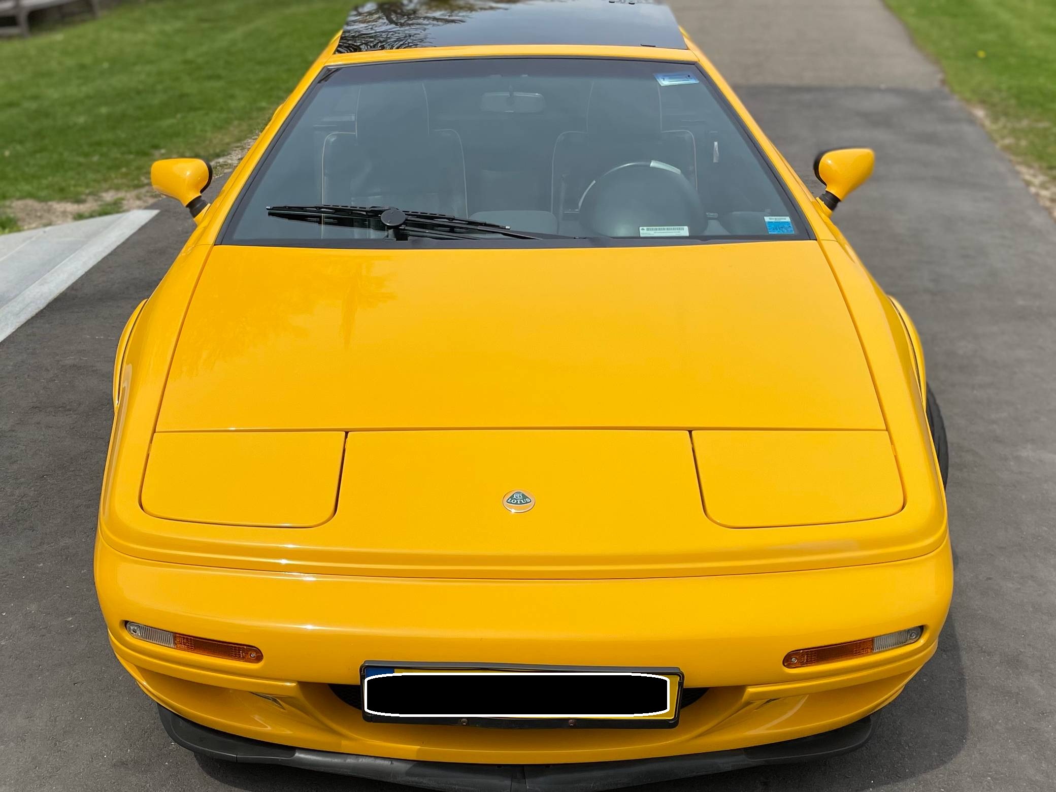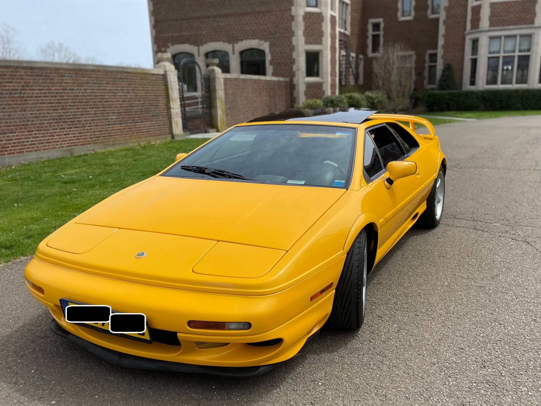 1999 Lotus Esprit V8, finished in Lotus Yellow with a black interior. Factory equipment includes 17-inch front and 18-inch rear wheels, Brembo front brake calipers, a removable roof panel, fog lights, a rear spoiler, leather upholstery, sport seats, and more listed below. The only reported modification is a Raid steering wheel. Lotus released the Esprit in 1976 and made numerous design and mechanical updates to the model over the next 28 years. Peter Stevens gave it a less angular exterior design in 1988, power steering was made standard in 1994, and the 1997 model year brought a twin-turbocharged V8 (the first in the Esprit's history) that was designed in-house. Production ended in 2004, and only a small amount were shipped to North America. Power comes from a 3. 5-liter twin-turbocharged V8, rated at 350 horsepower and 295 lb-ft of torque. Mid-mounted, it spins the rear wheels via a 5-speed manual transaxle.