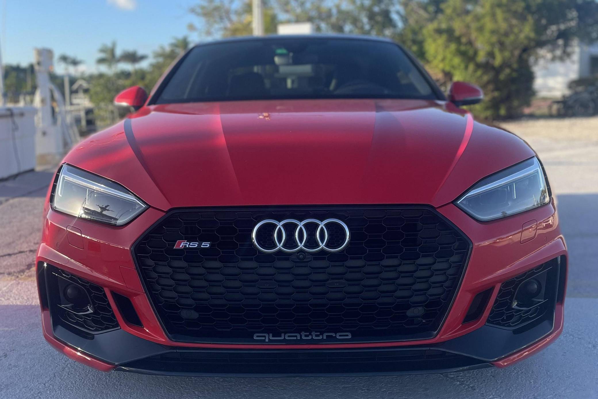 THIS… is a 2018 Audi RS5 Coupe, finished in Misano Red Pearl Effect with a black interior. The odometer on this RS5 currently displays approximately 23,000 miles. Modifications are limited to tinted windows. Audi released the second-generation RS5 for 2018 as the ultimate evolution of the A5. Offered as a coupe and as a fastback called Sportback, it swapped its predecessor's V8 for a twin-turbocharged V6 but it gained torque in the trade. Huge brakes and a model-specific suspension system helped drivers make the most of the drivetrain, while a more muscular-looking exterior design allowed the RS5 to easily stand out from the S5. It remains available as Audi of America's answer to the BMW M4. Power comes from a twin-turbocharged 2. 9-liter V6, rated at 444 horsepower and 443 lb-ft of torque. Output is sent to all four wheels via an 8-speed automatic transmission and Audi's Quattro all-wheel drive system.